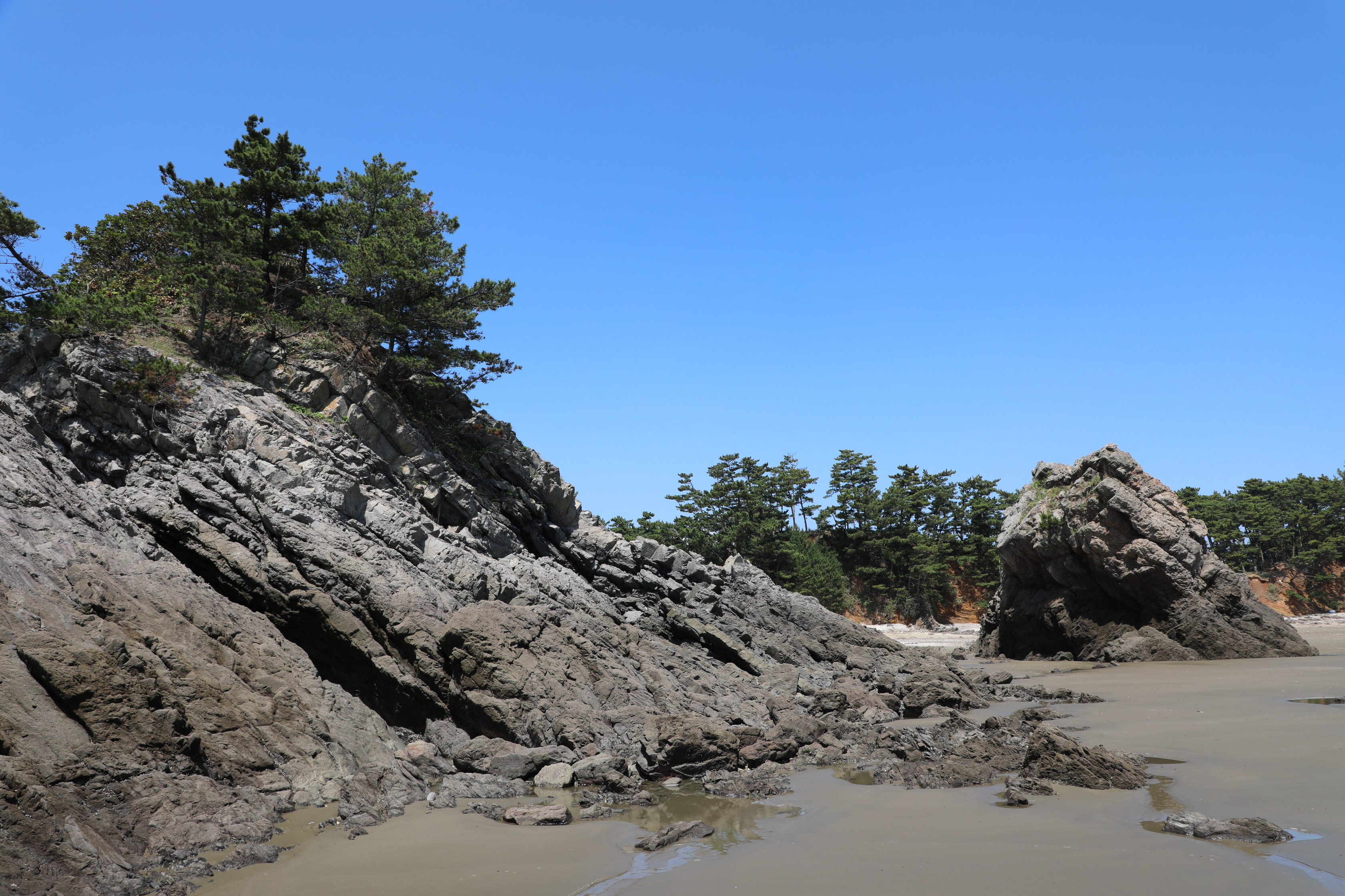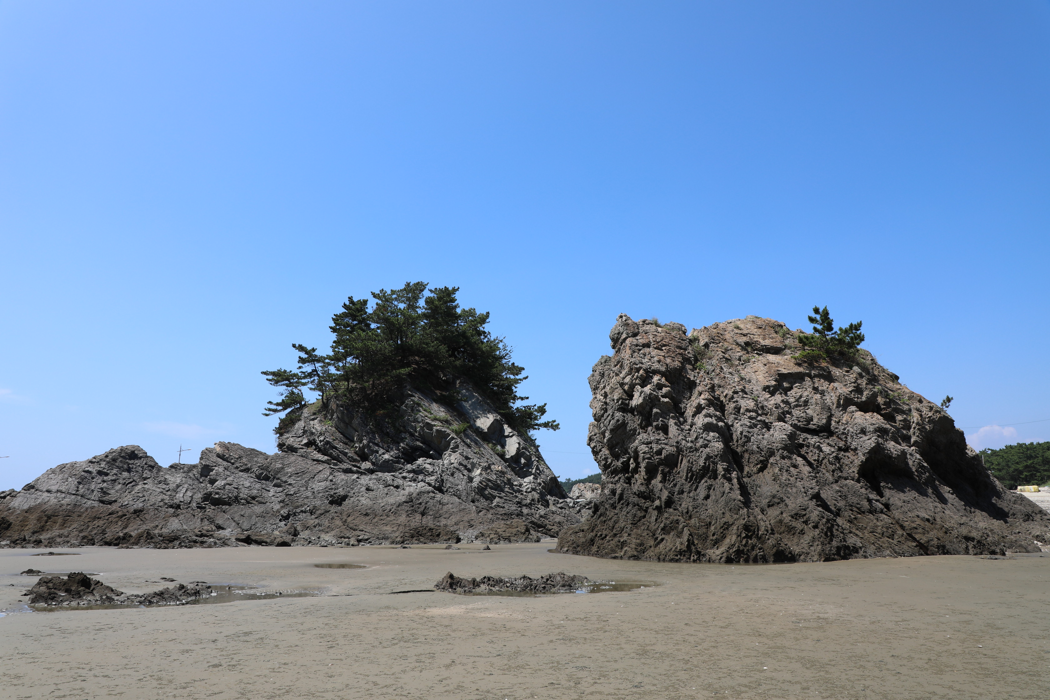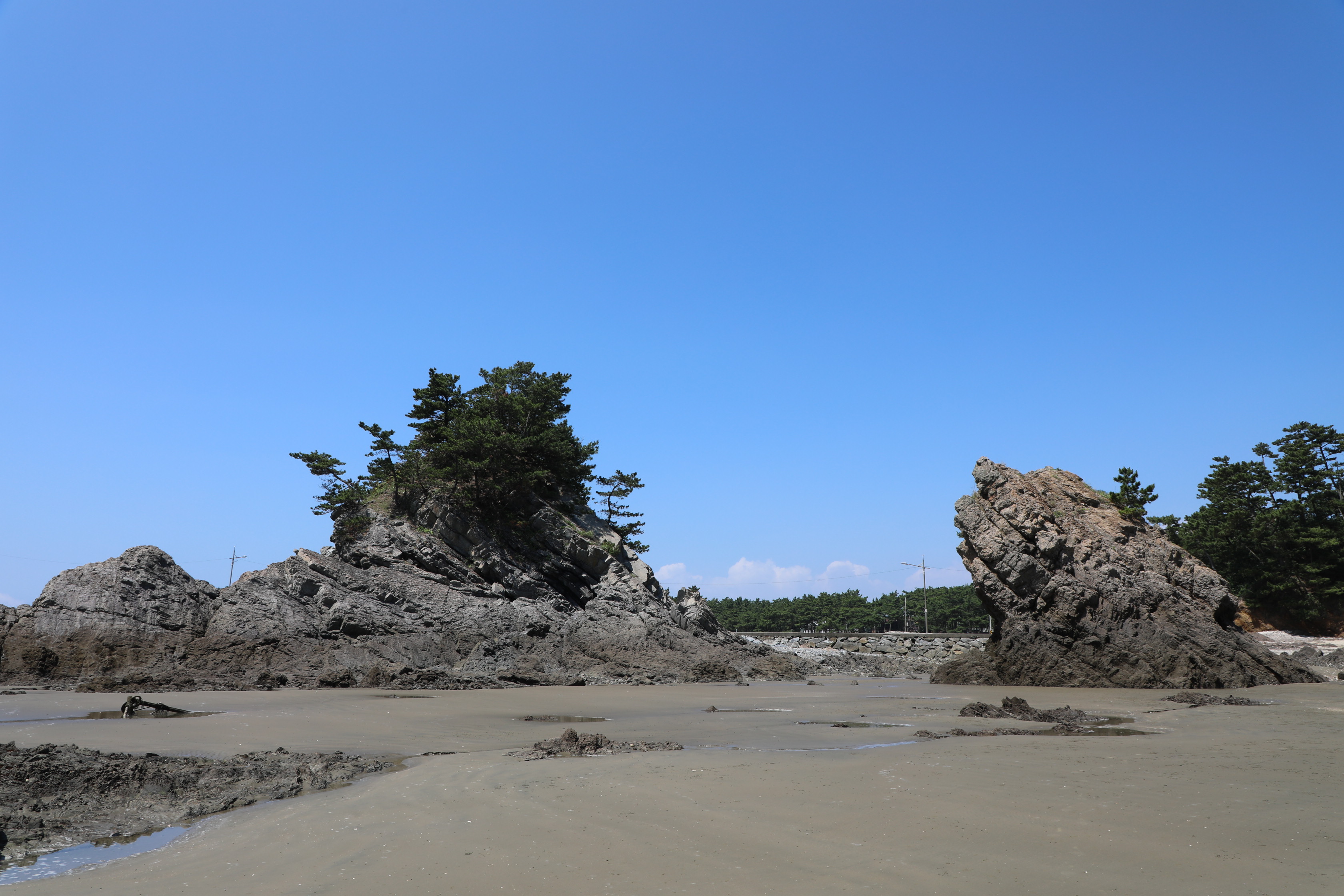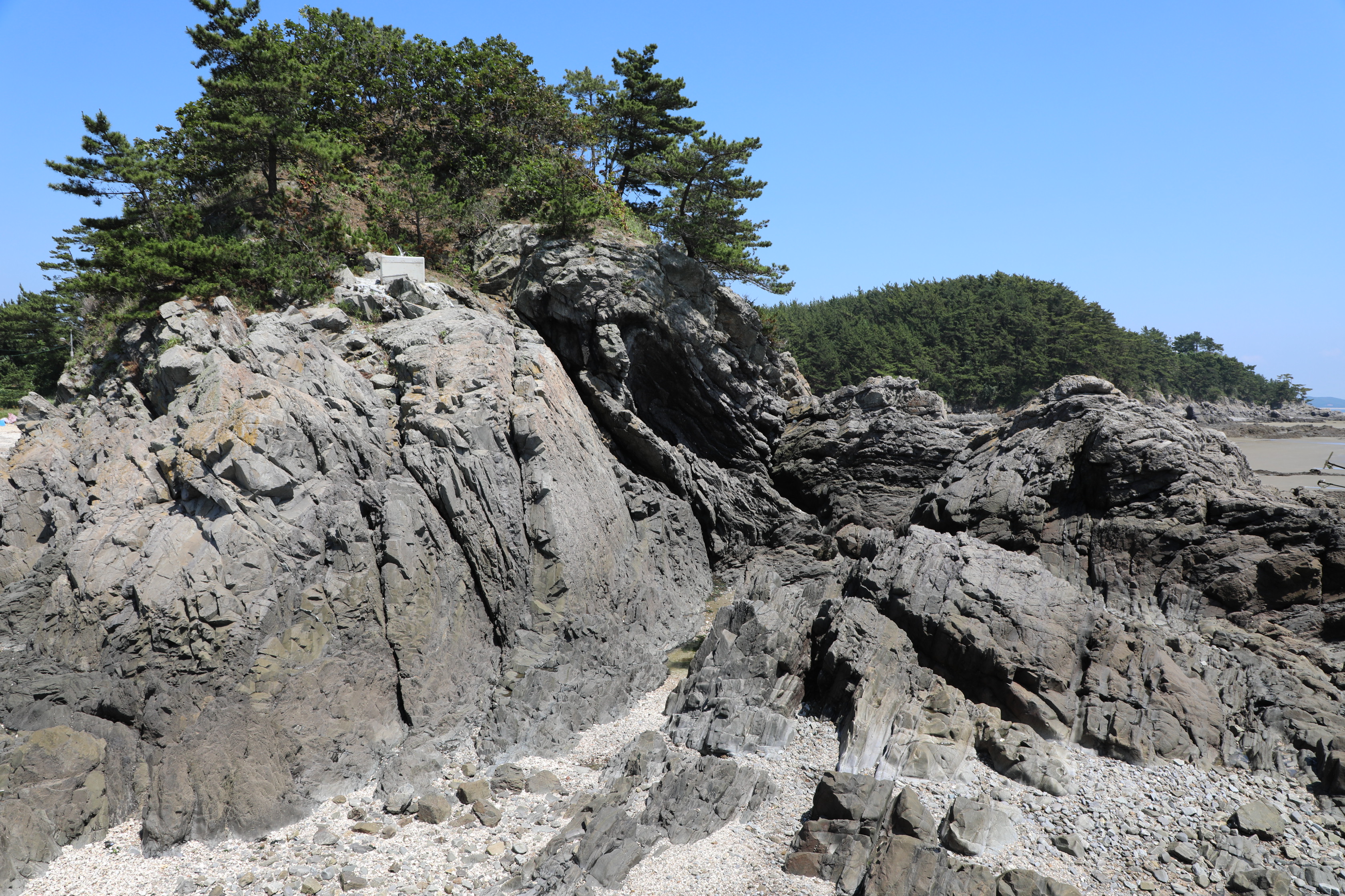 밀물 땐 물기가 많은 곳은 바다에 잠기겠지만 경가사 완만하다는 걸 알 수 있다.