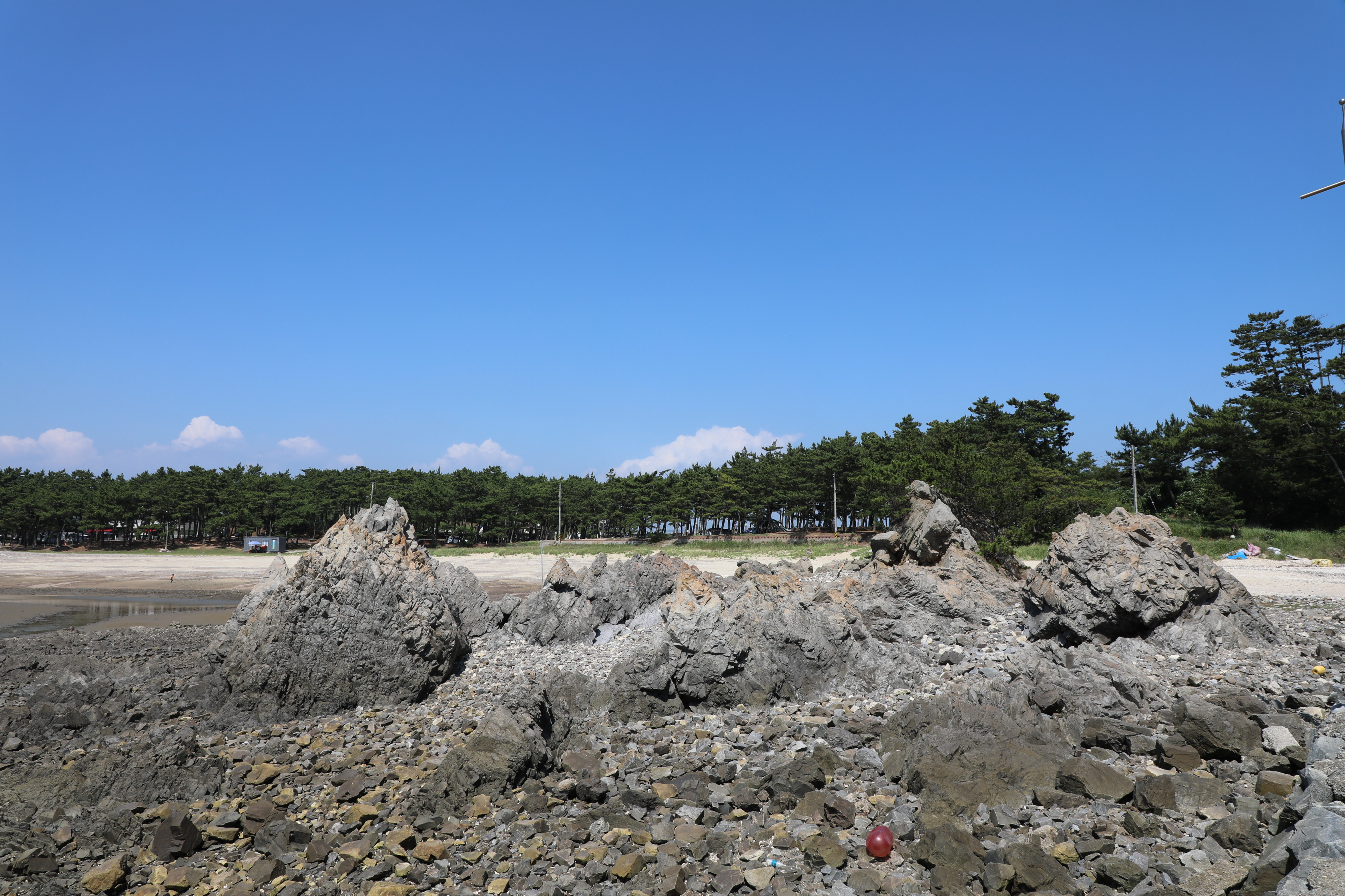 해수욕장 또한 잘잘한 자갈이 많아 맨발로 다니기엔 다소 위험스럽다.