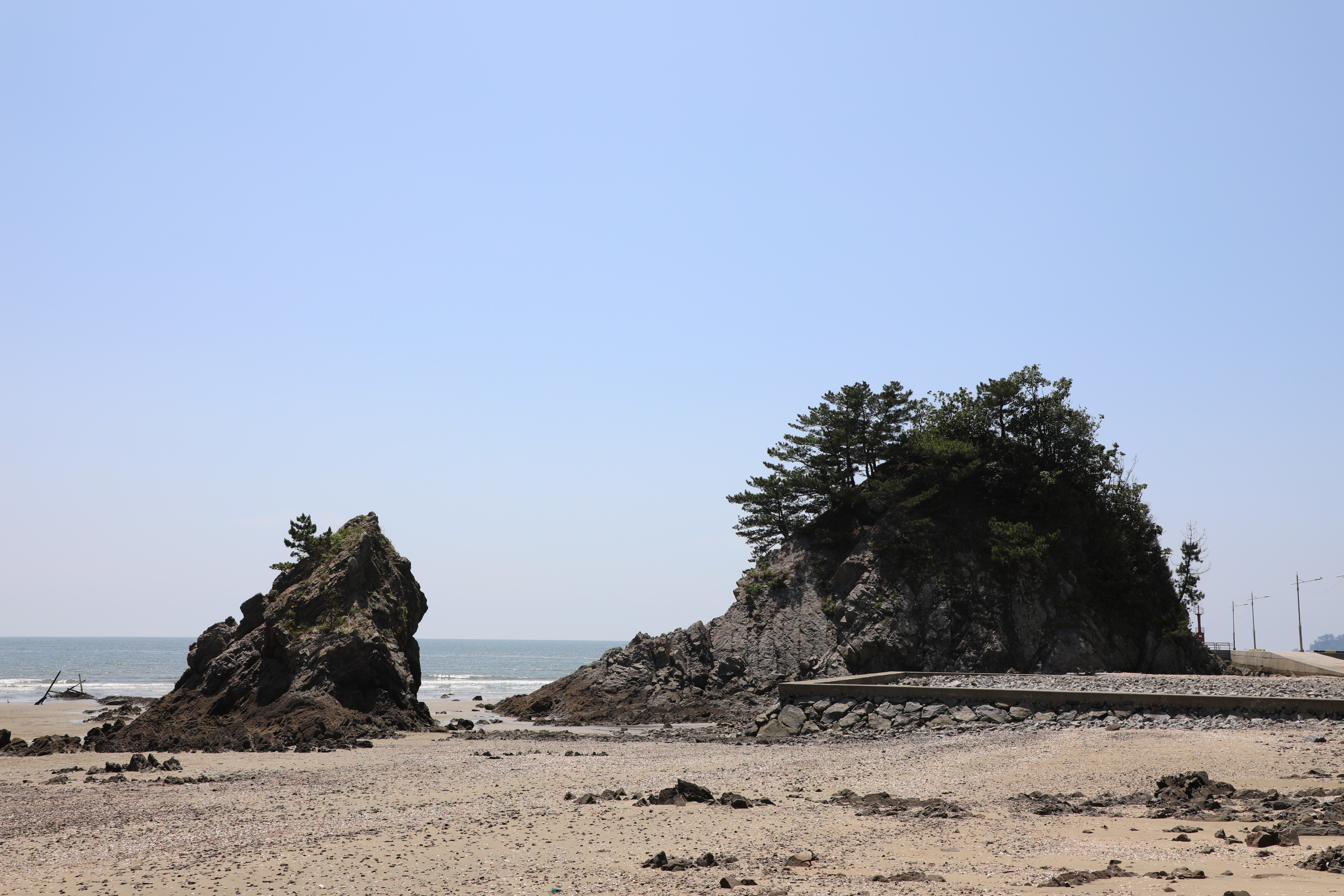 해안은 모래사장이 별로 보이지 않으니 어린이와 동행한다면 피하는 게 좋다.