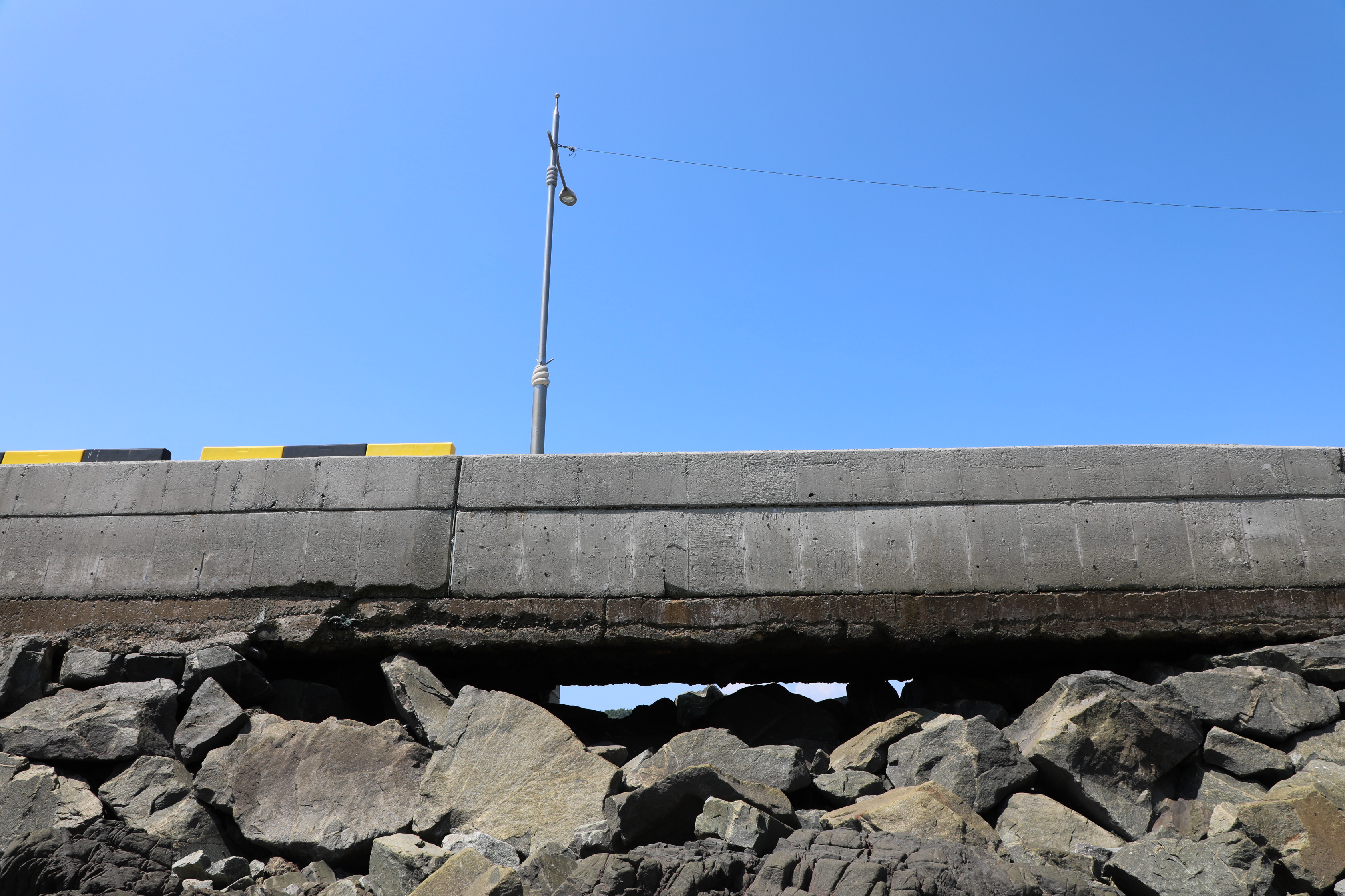 이 도로를 얼마나 부실하게 만들었는지 파도 몇 번 치자 안쪽에 있던 흙이 유실돼 뜬다리가 됐다.