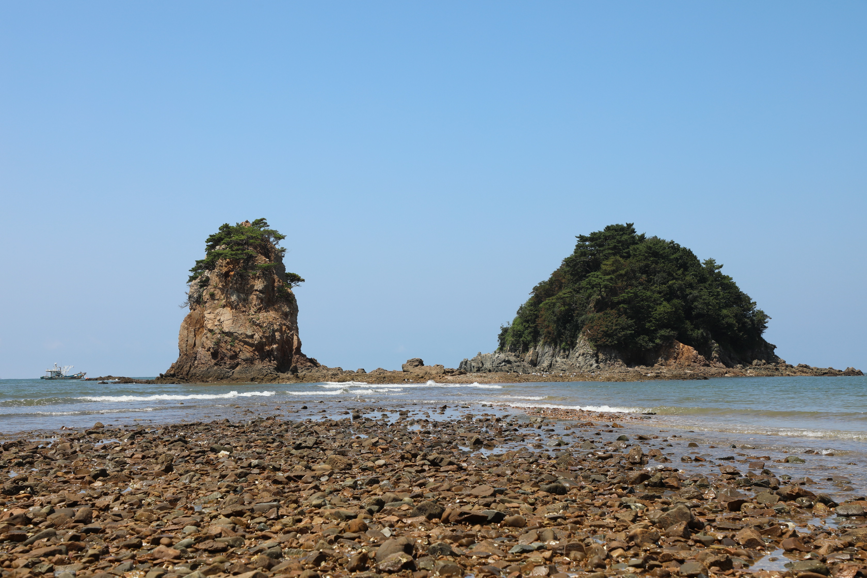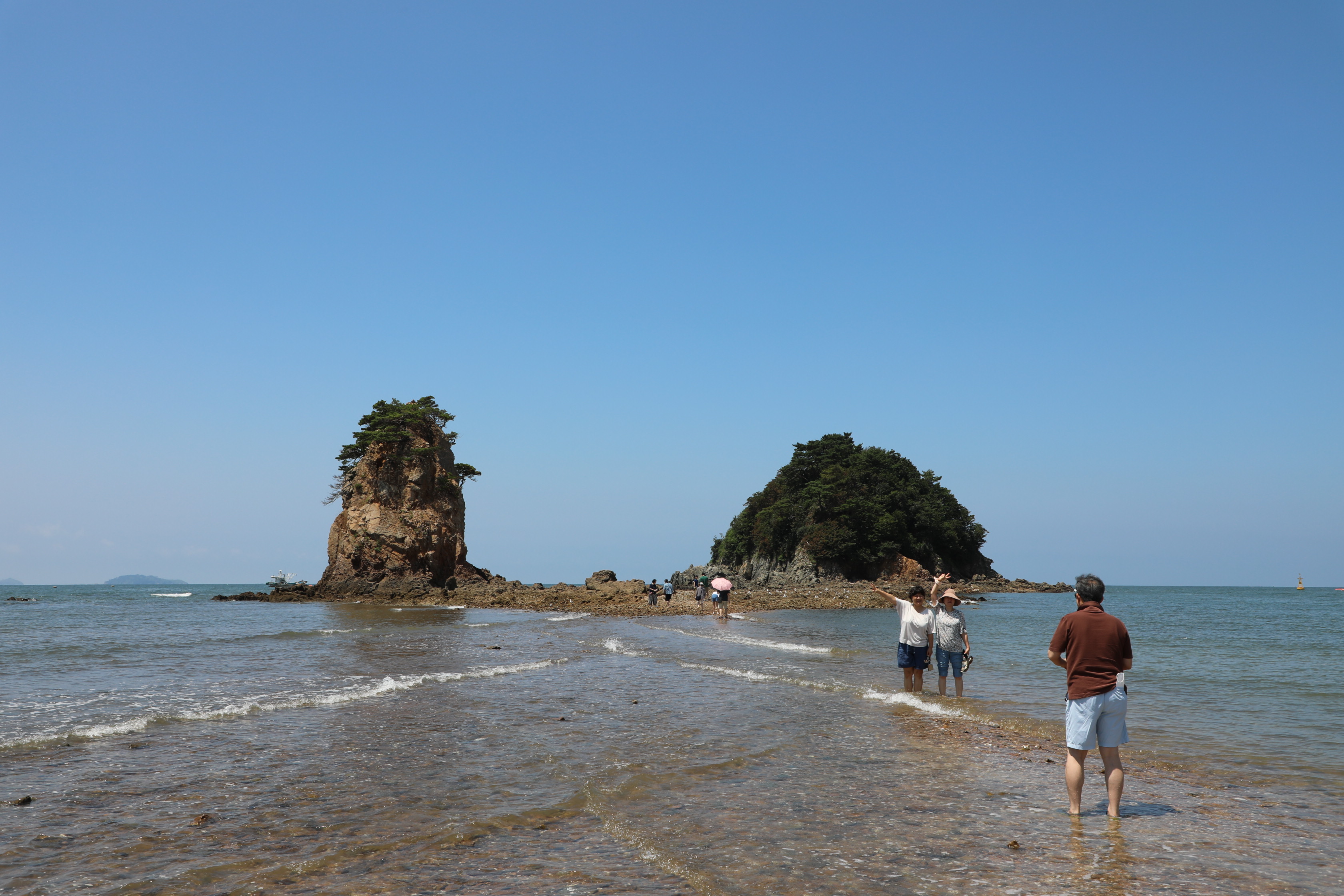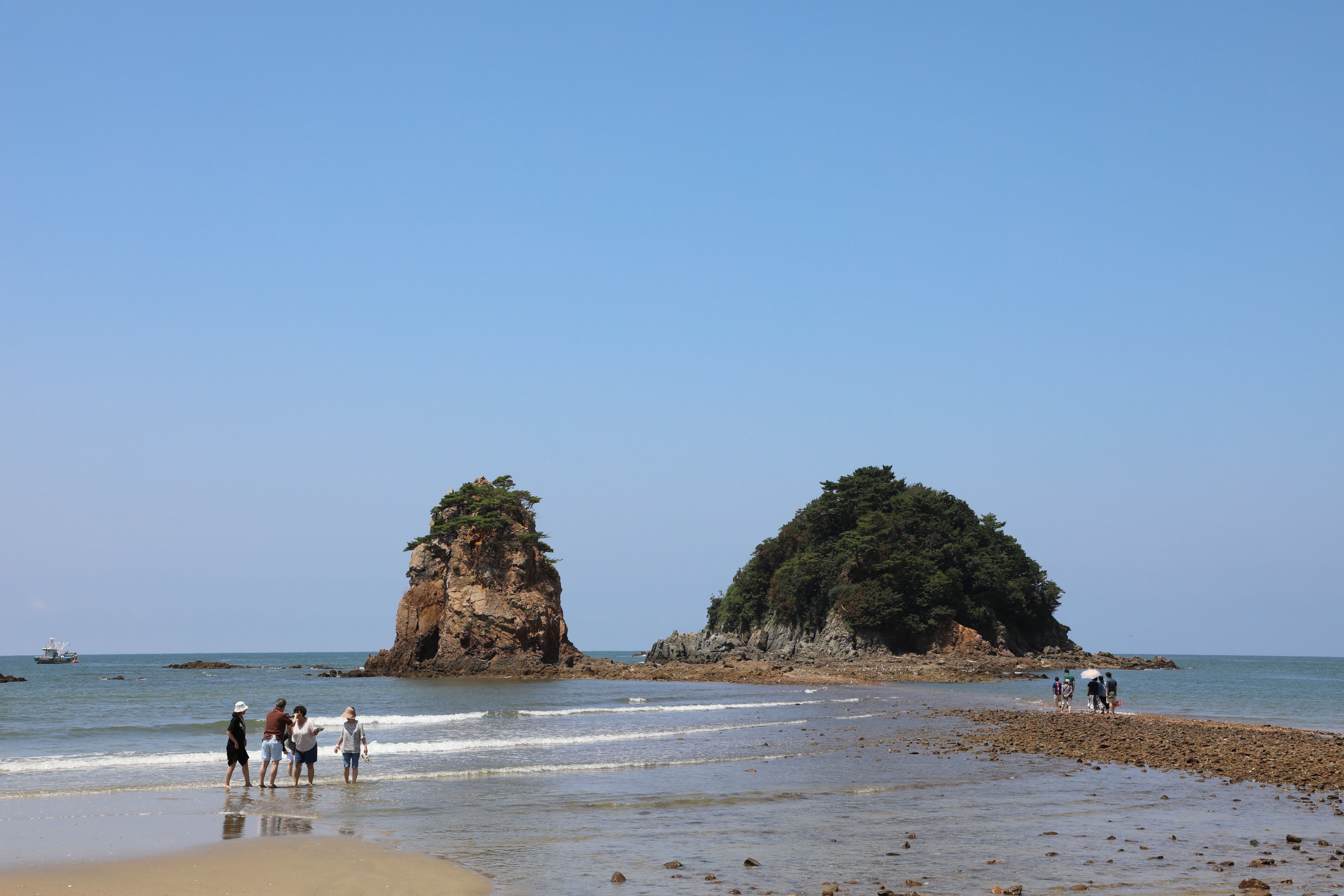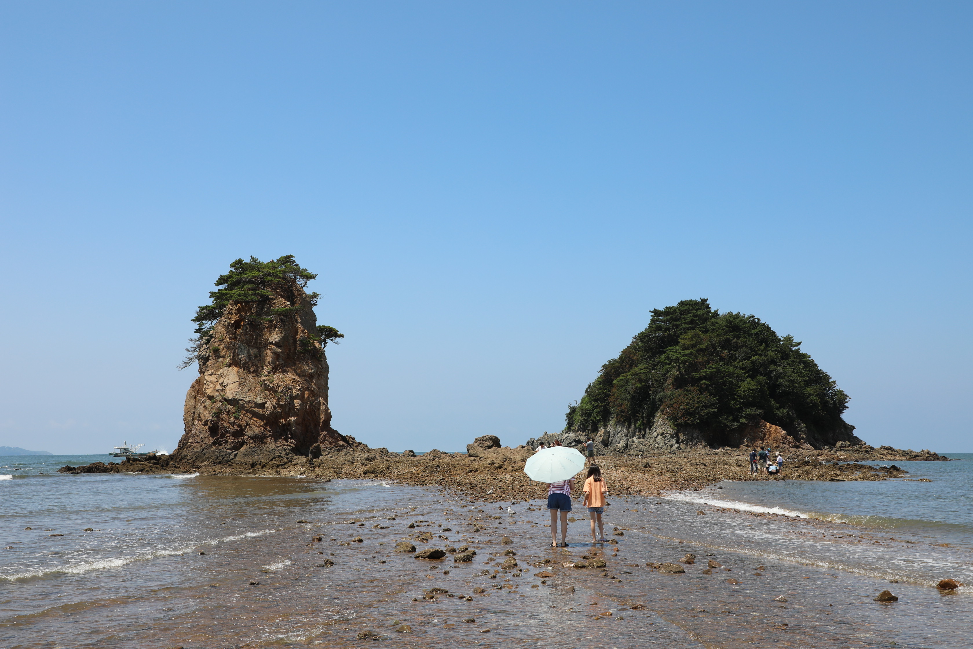 썰물 때면 두 바위가 마치 한 몸인 듯 모래톱으로 연결되는 모습을 볼 수 있다.