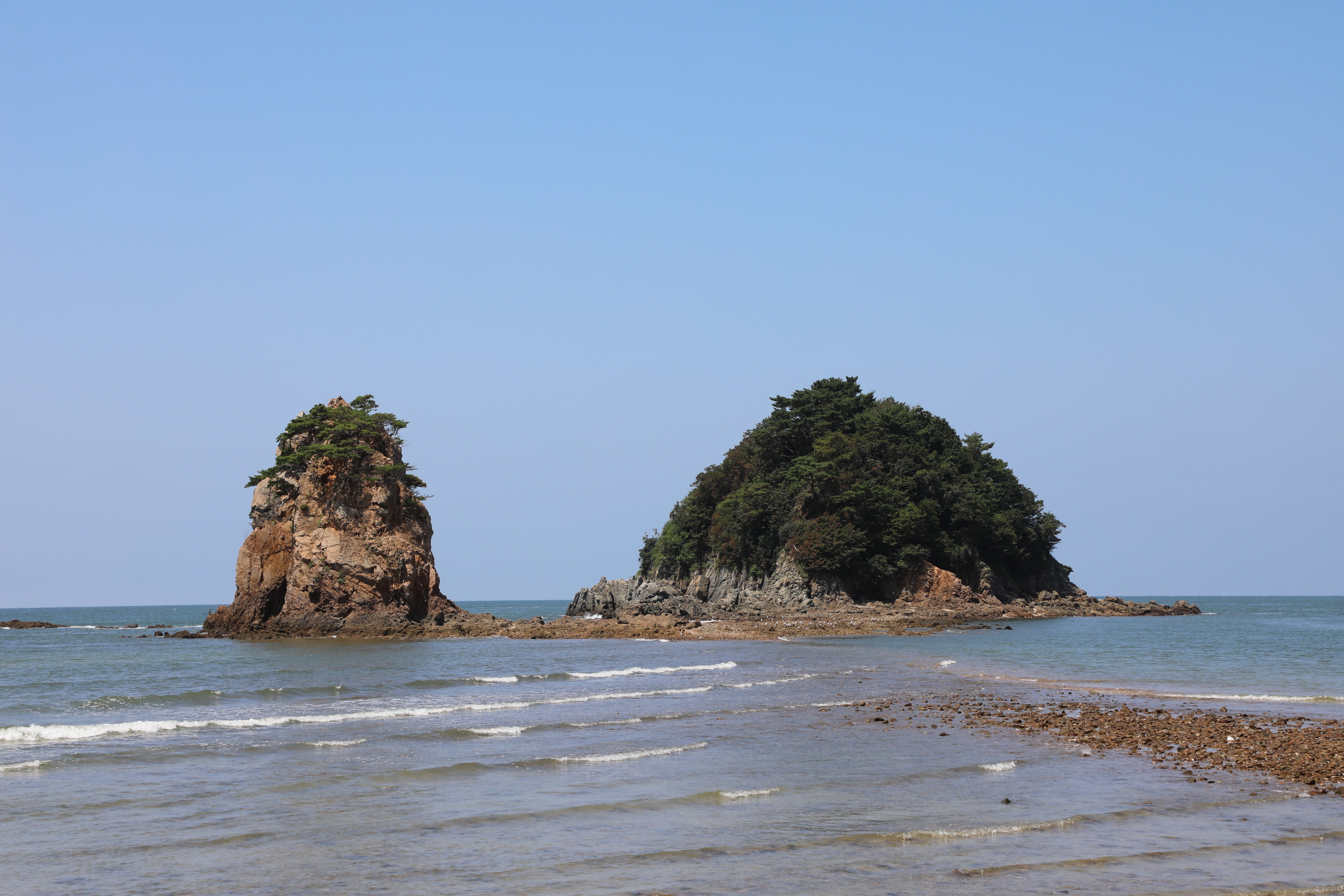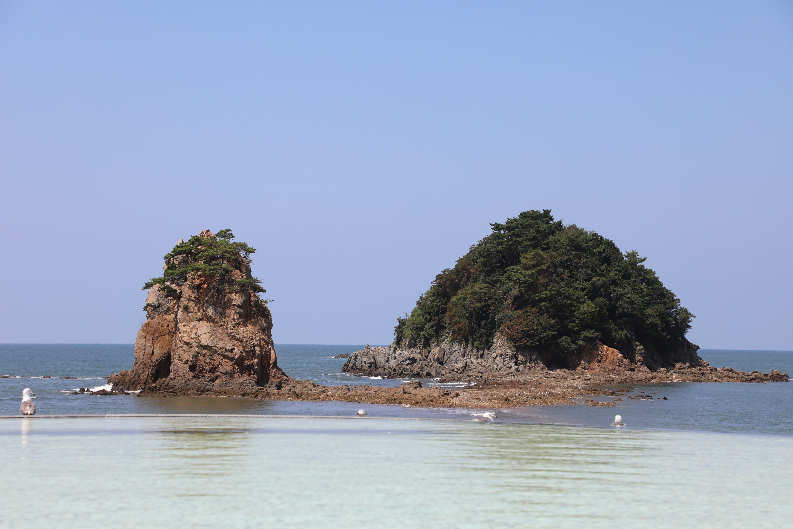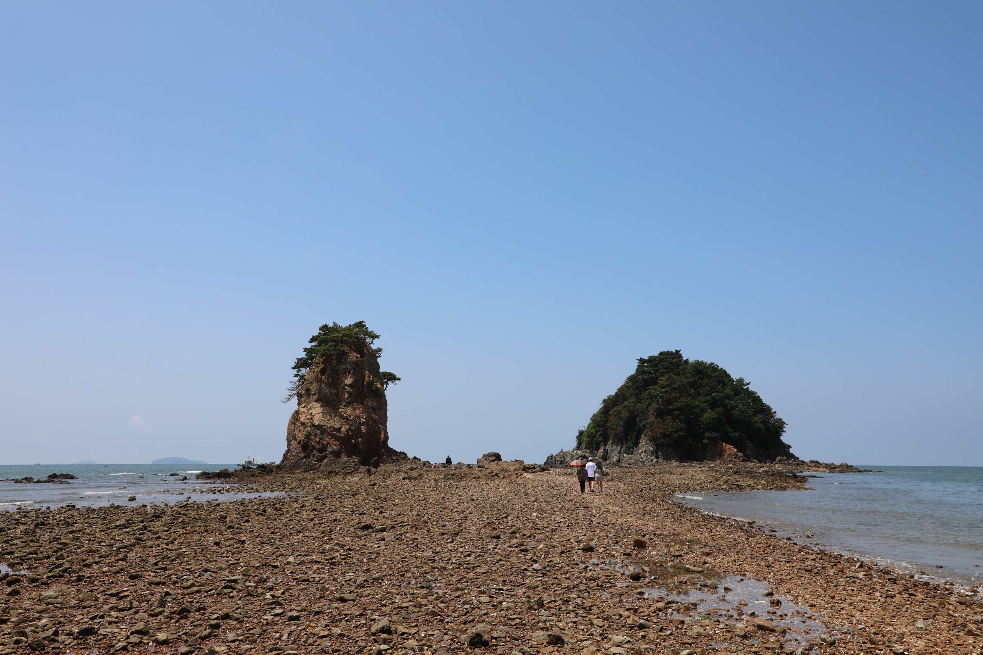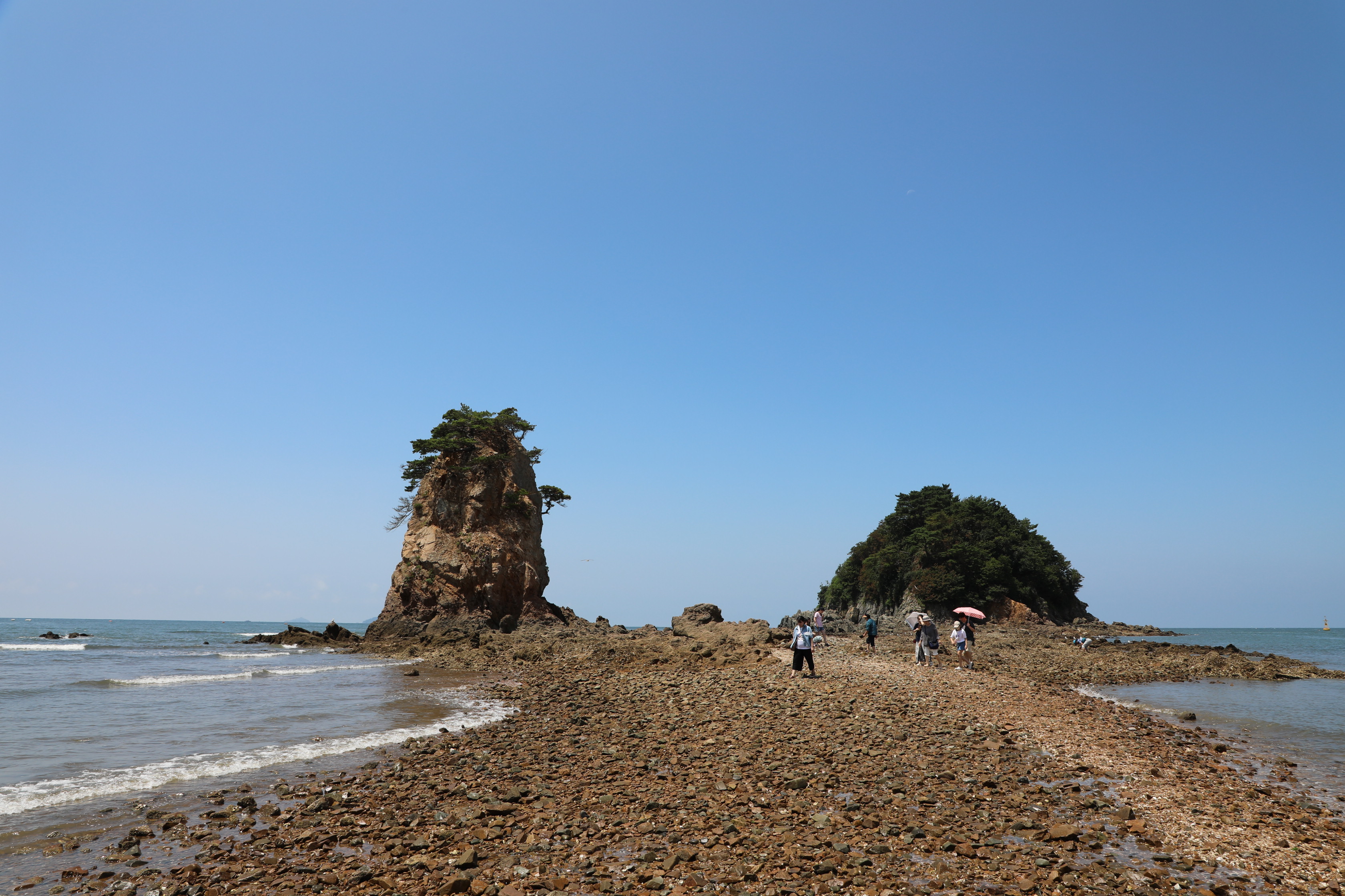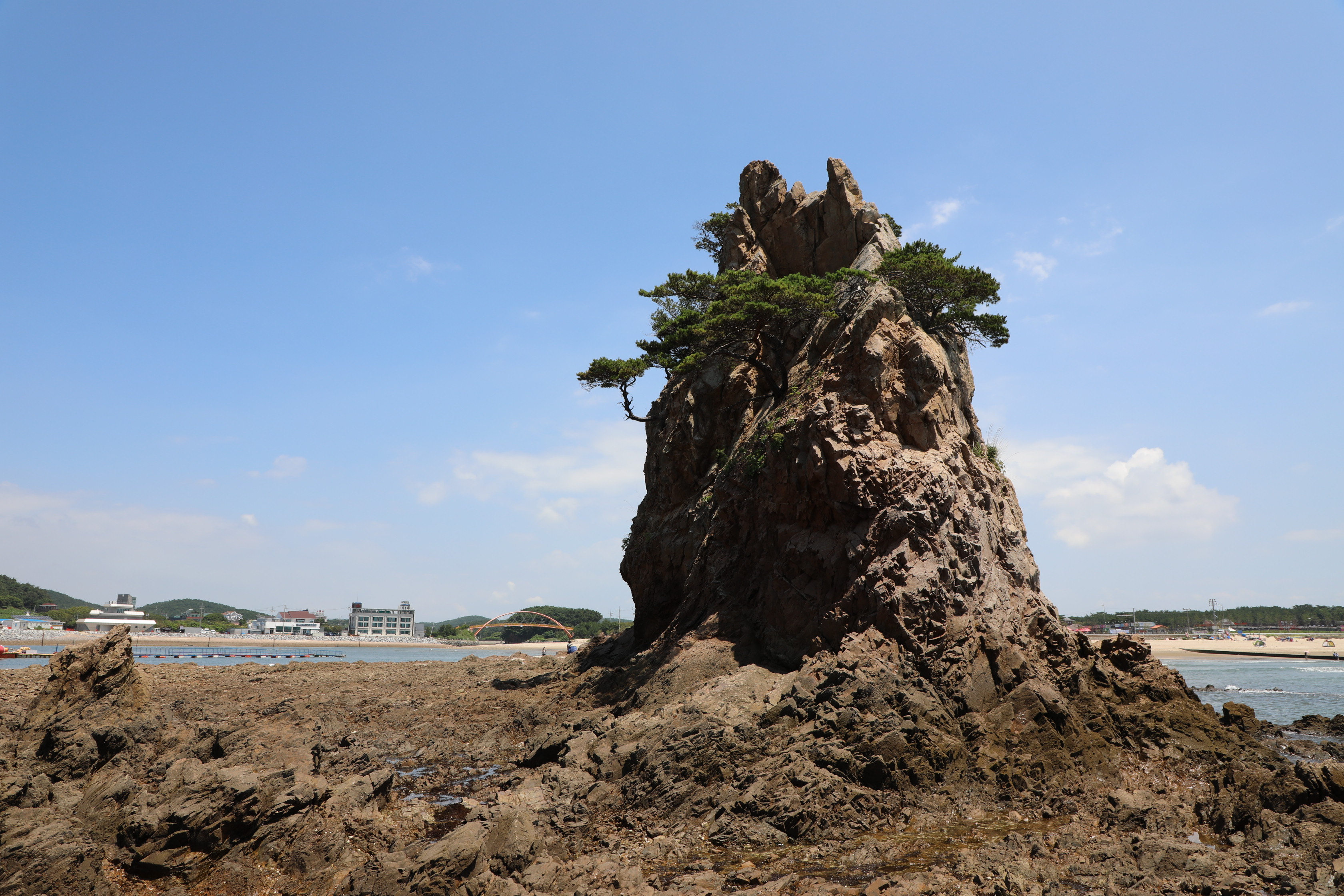 썰물 때면 두 바위가 마치 한 몸인 듯 모래톱으로 연결되는 모습을 볼 수 있다.