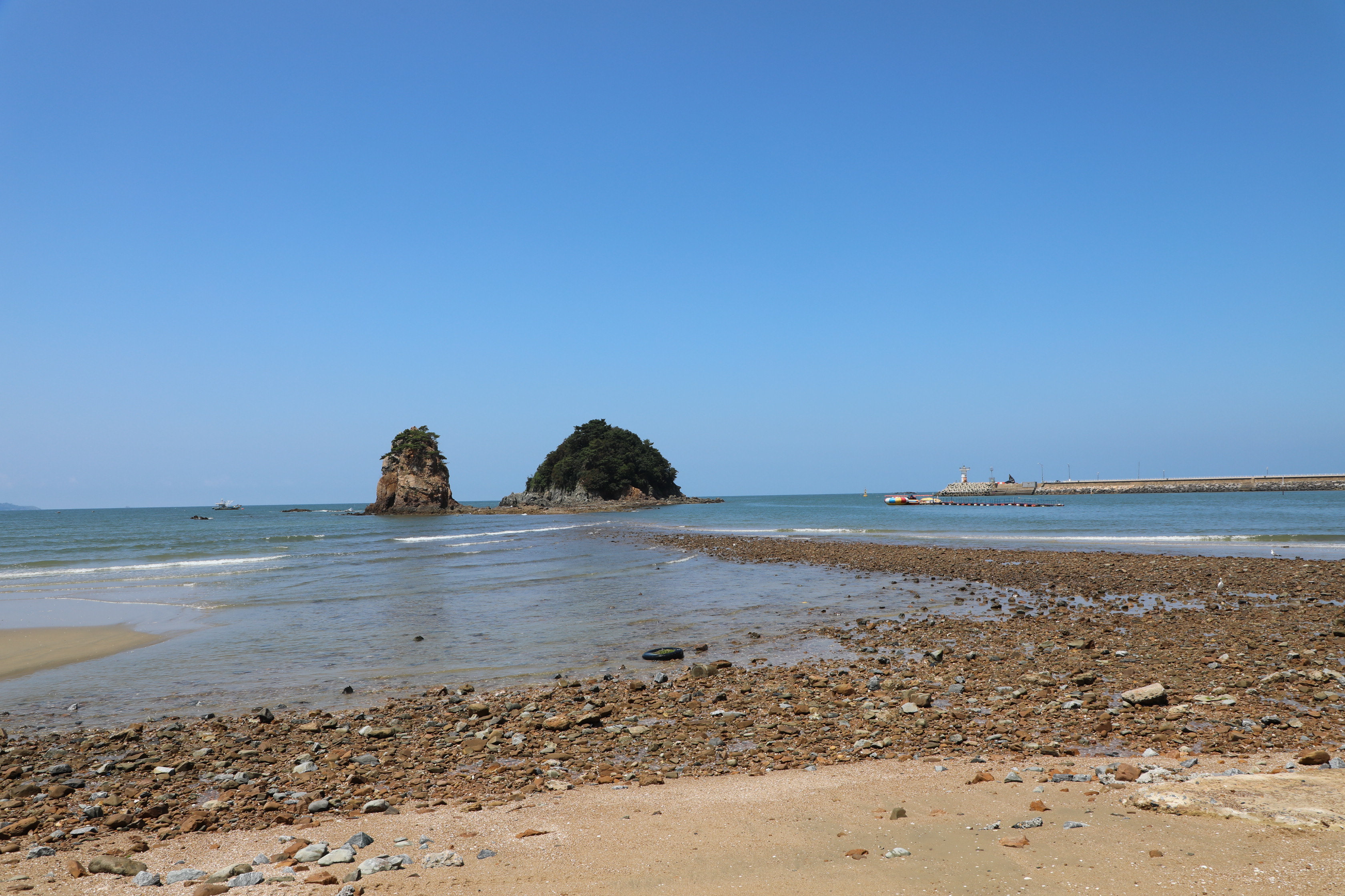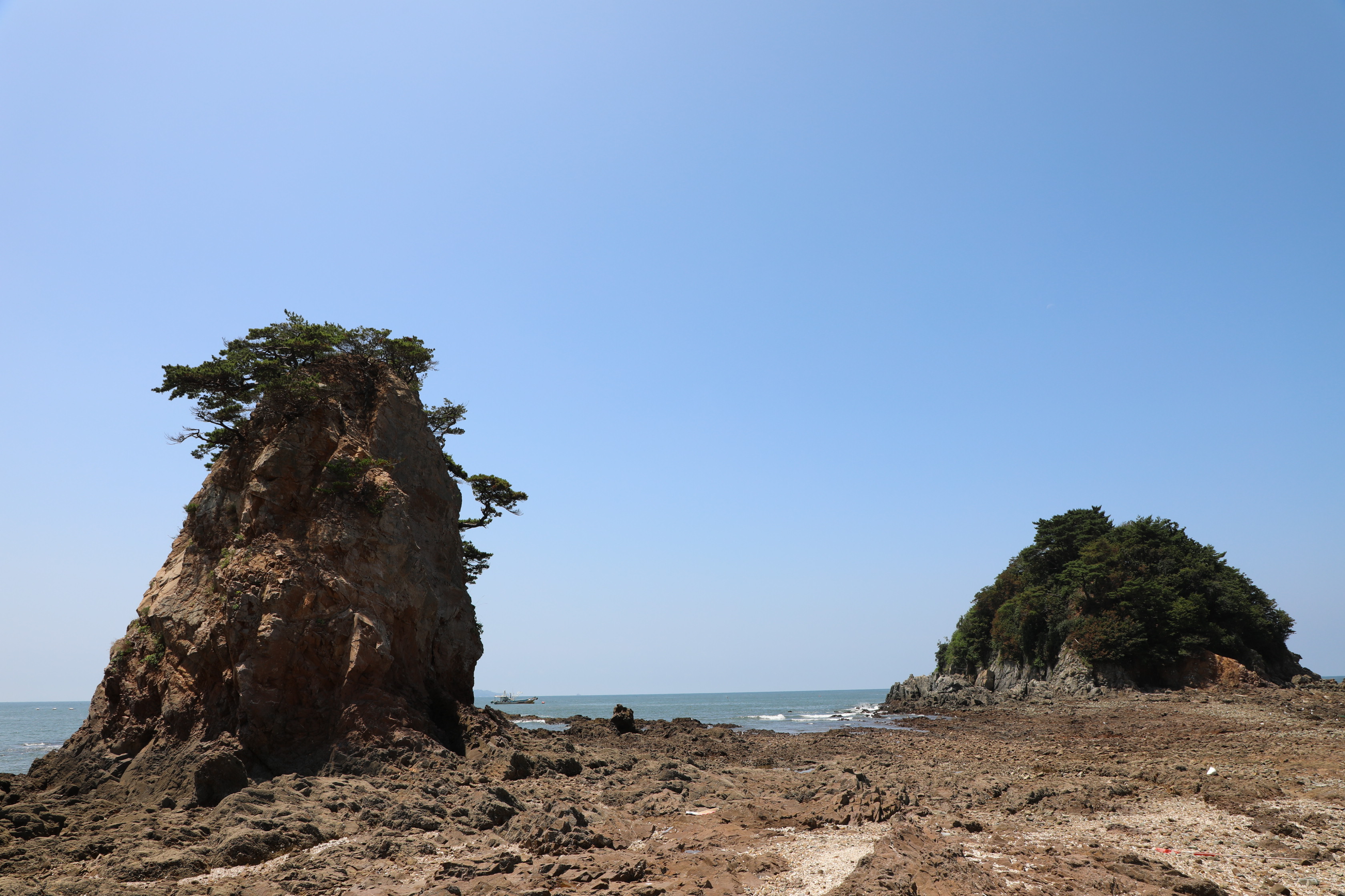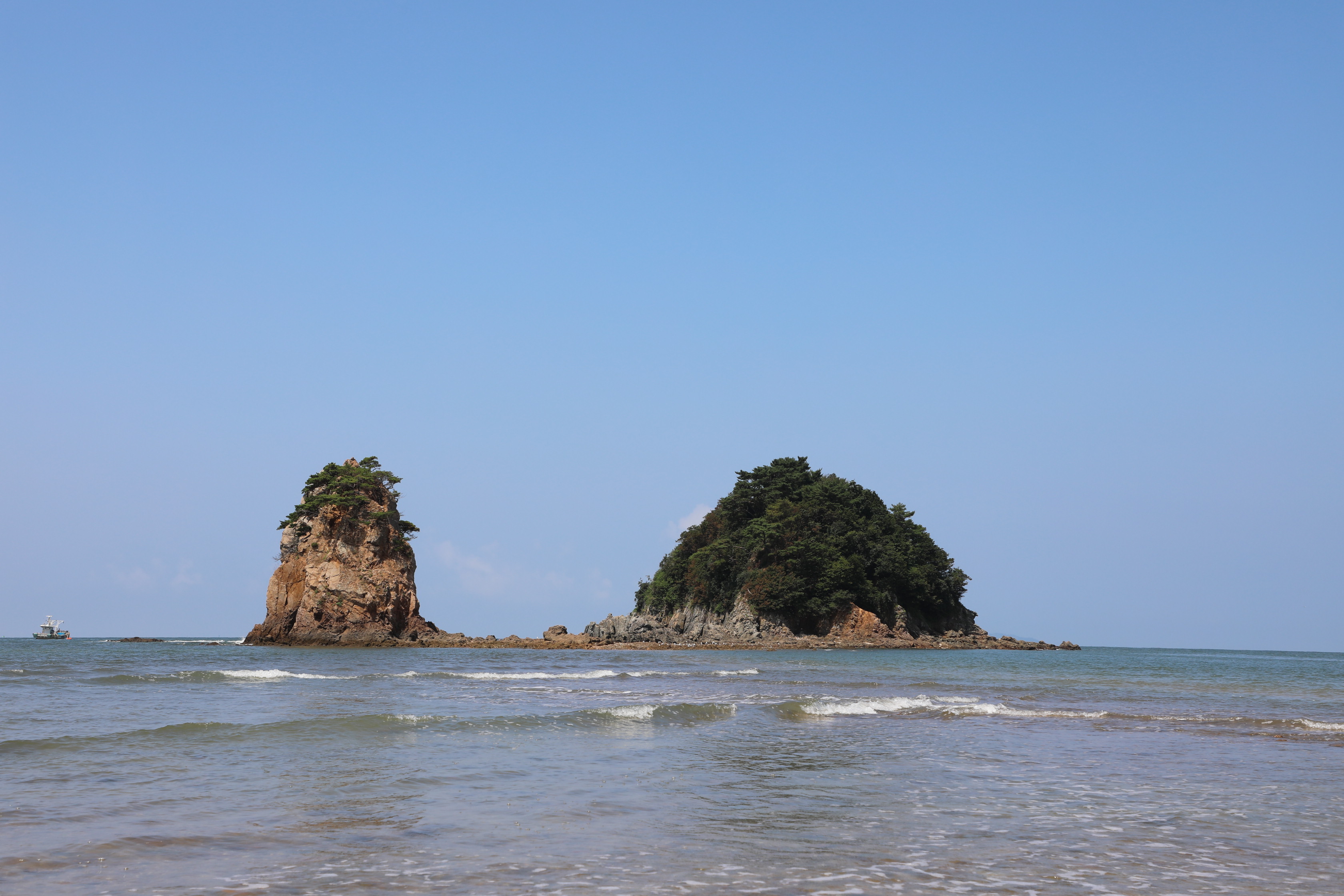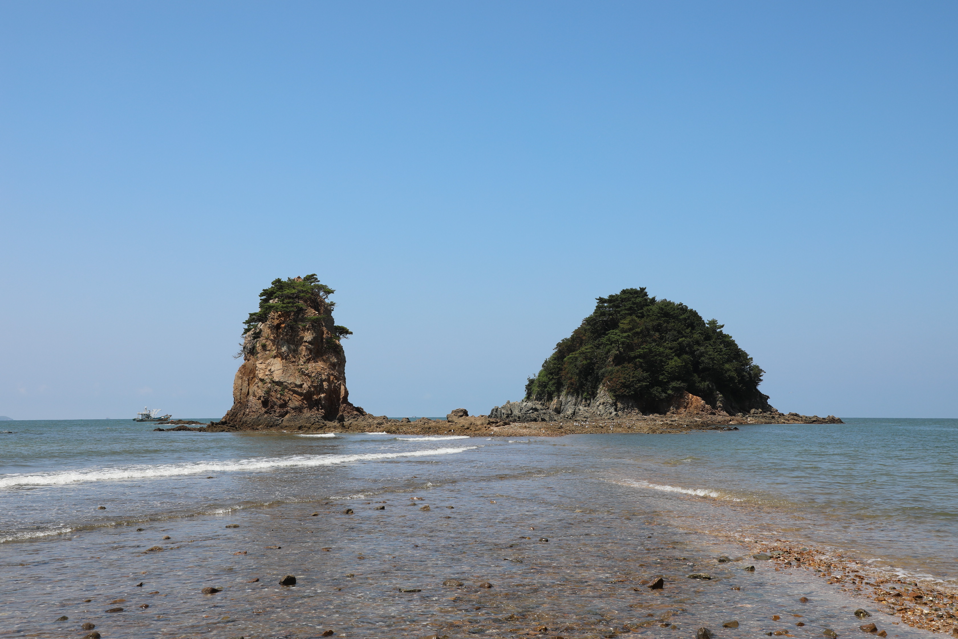 썰물 때면 두 바위가 마치 한 몸인 듯 모래톱으로 연결되는 모습을 볼 수 있다.