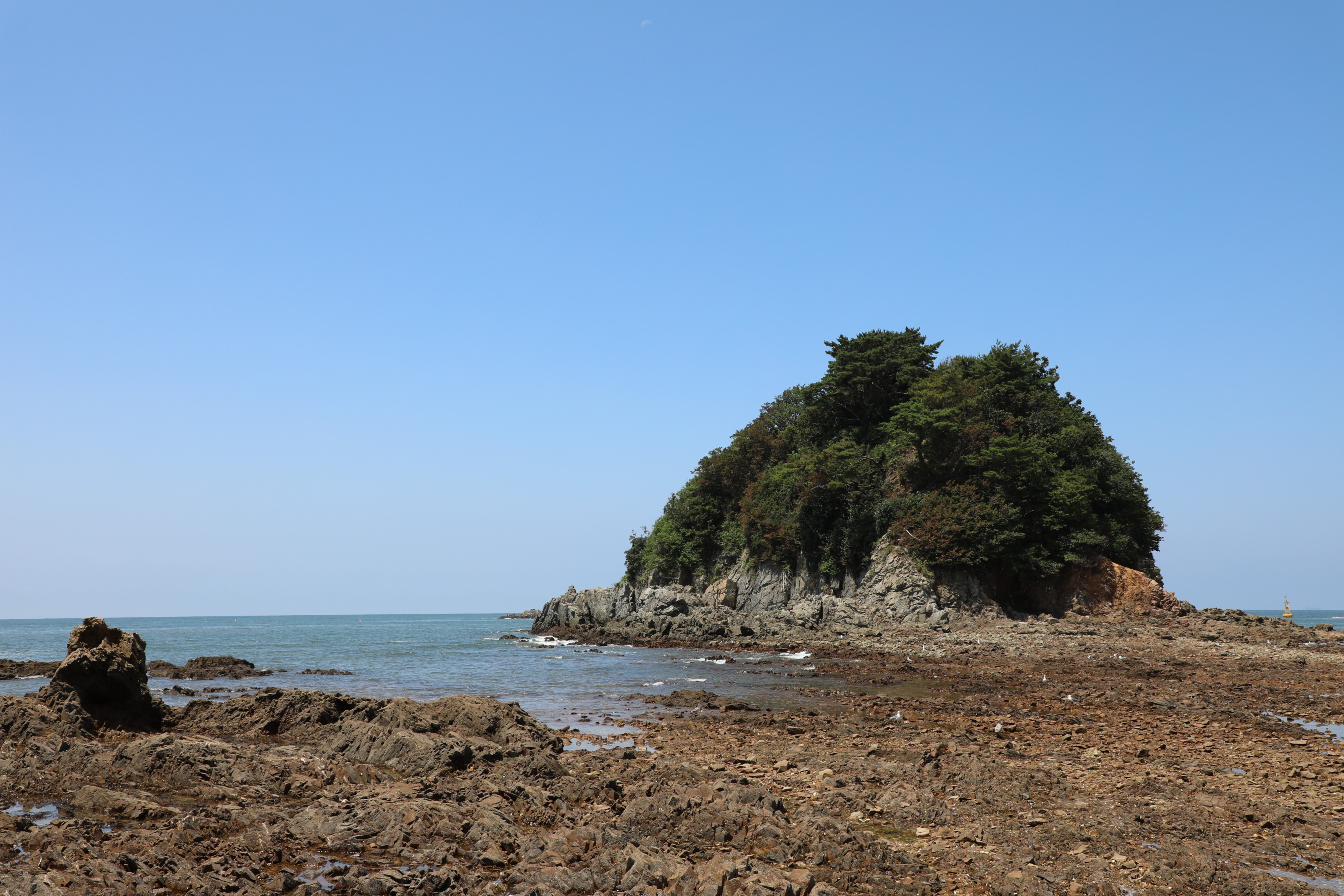 하루에 두번 밀물이 빠져나가며 이 바위로 들어가는 길이 생긴다.
