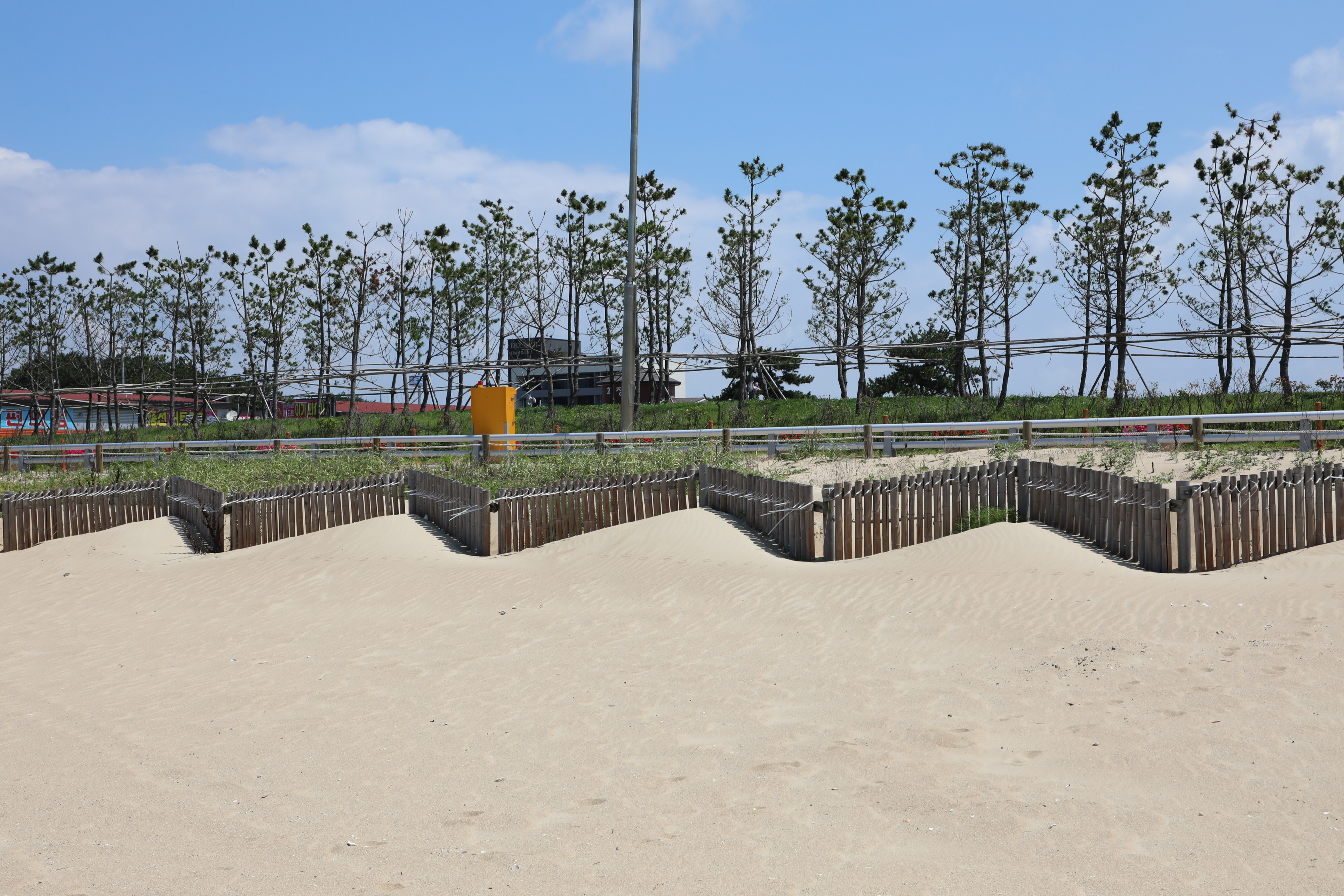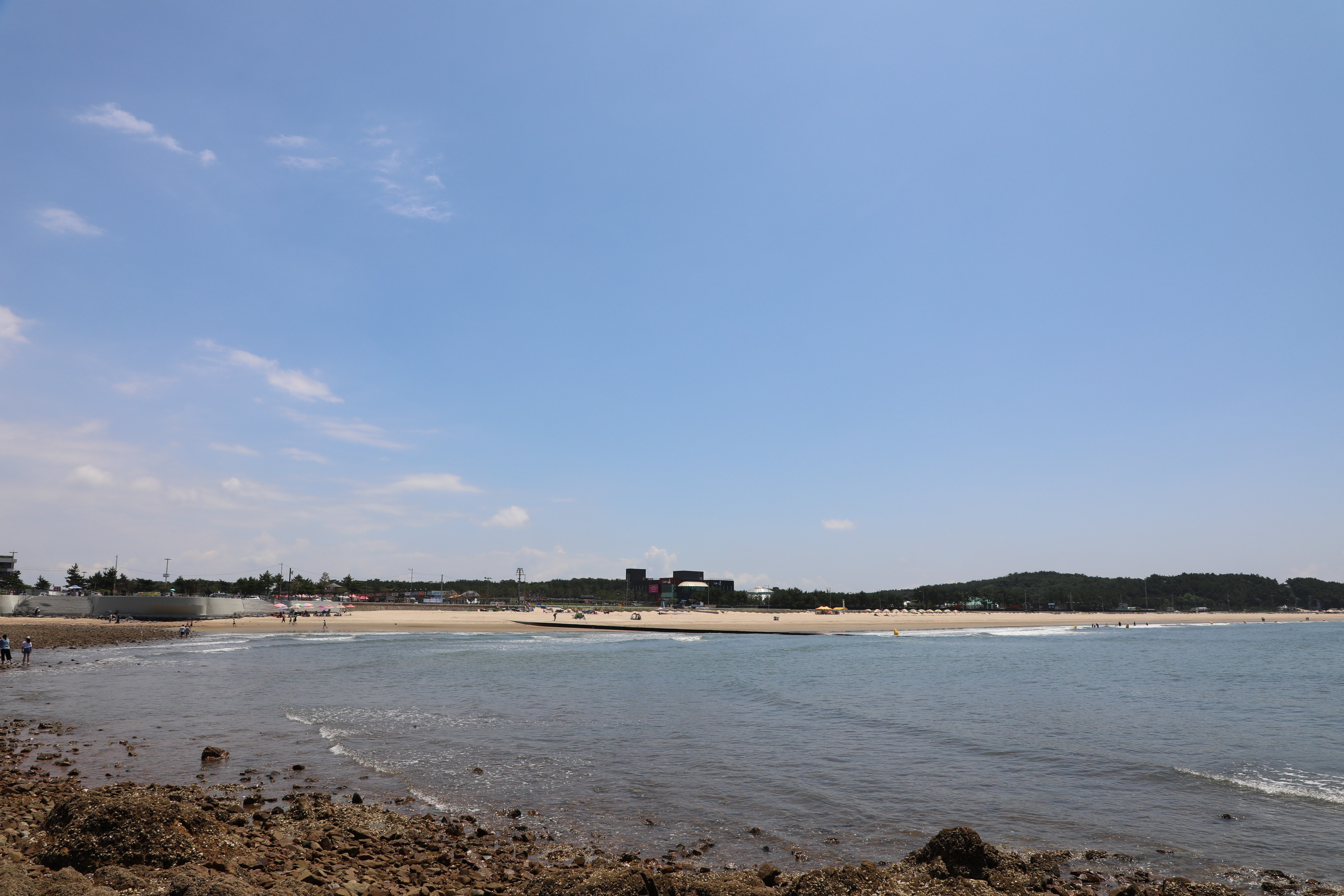 - 백사장 면적(㎡) : 128,000㎡, - 백사장 길이(m) : 3,200m, - 폭(m) : 40m, - 해변 형태 : 규사, - 경사도 : 3。