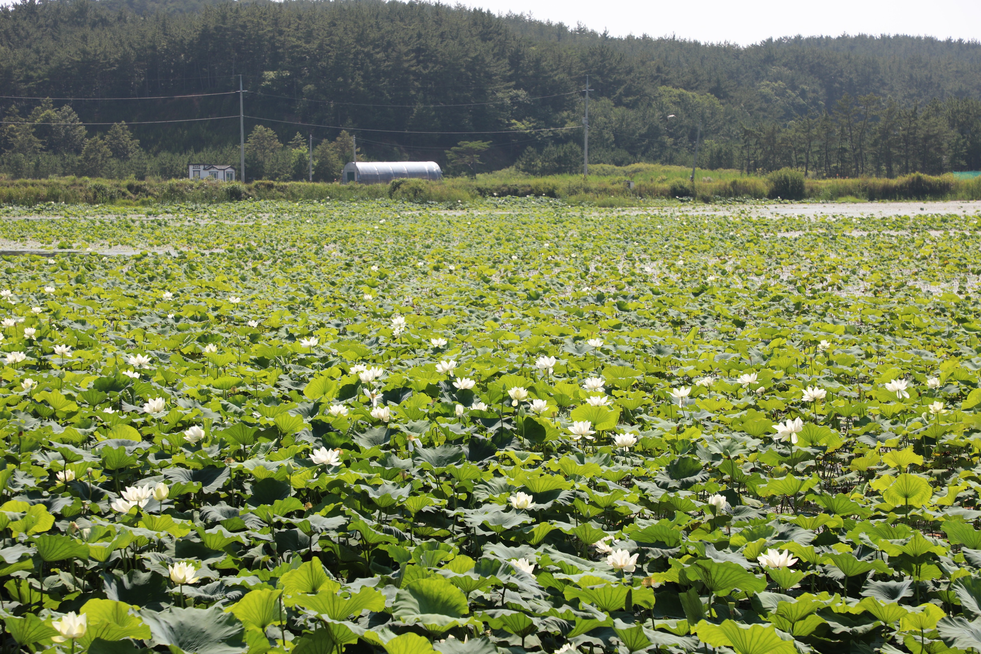 마검포해수욕장 가는 길의 저수지에 핀 흰 연꽃