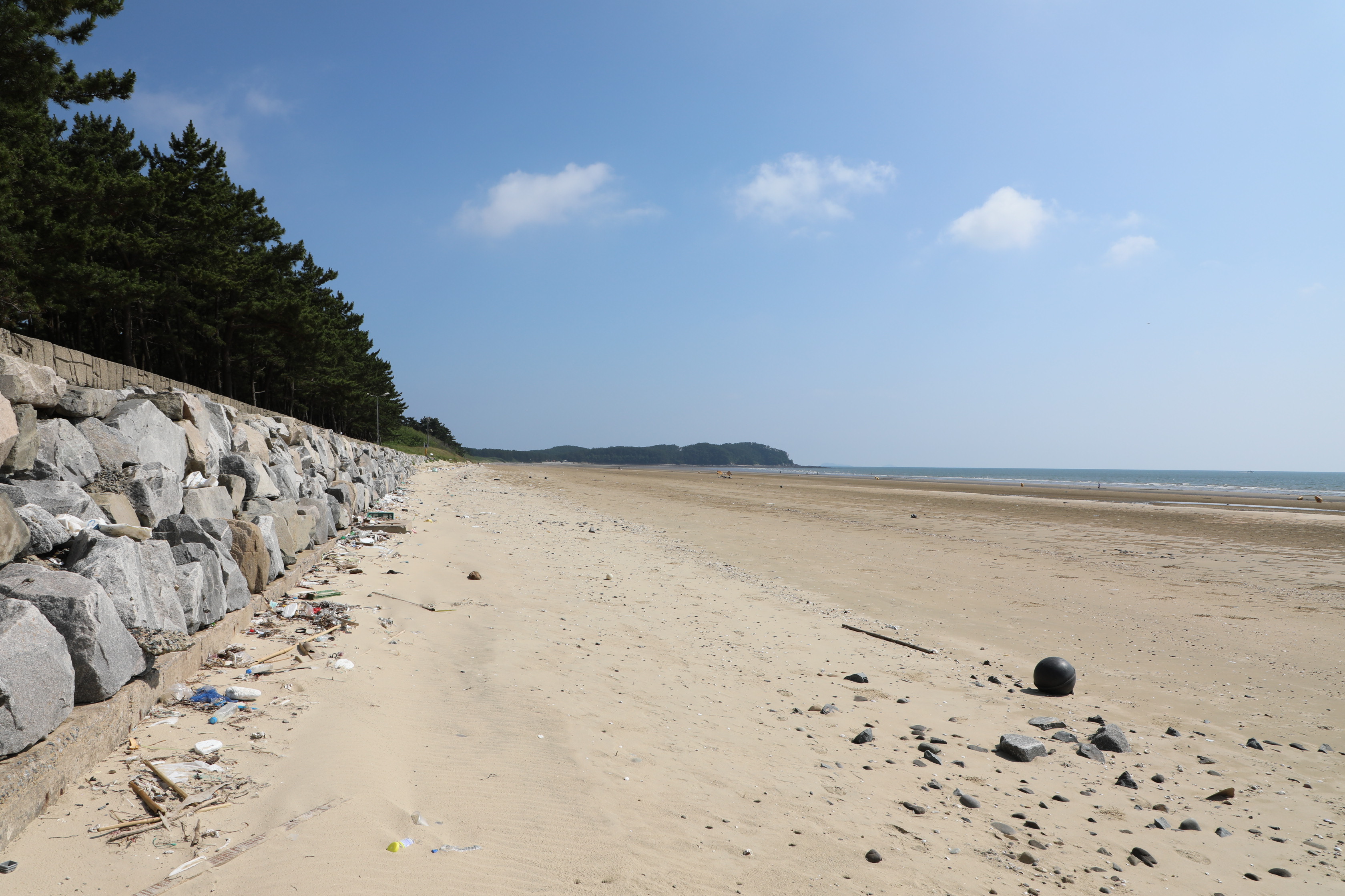 이곳 해변은 침식으로 해변의 소나무 군락이 유실될까 봐 둑을 쌓은 걸까?