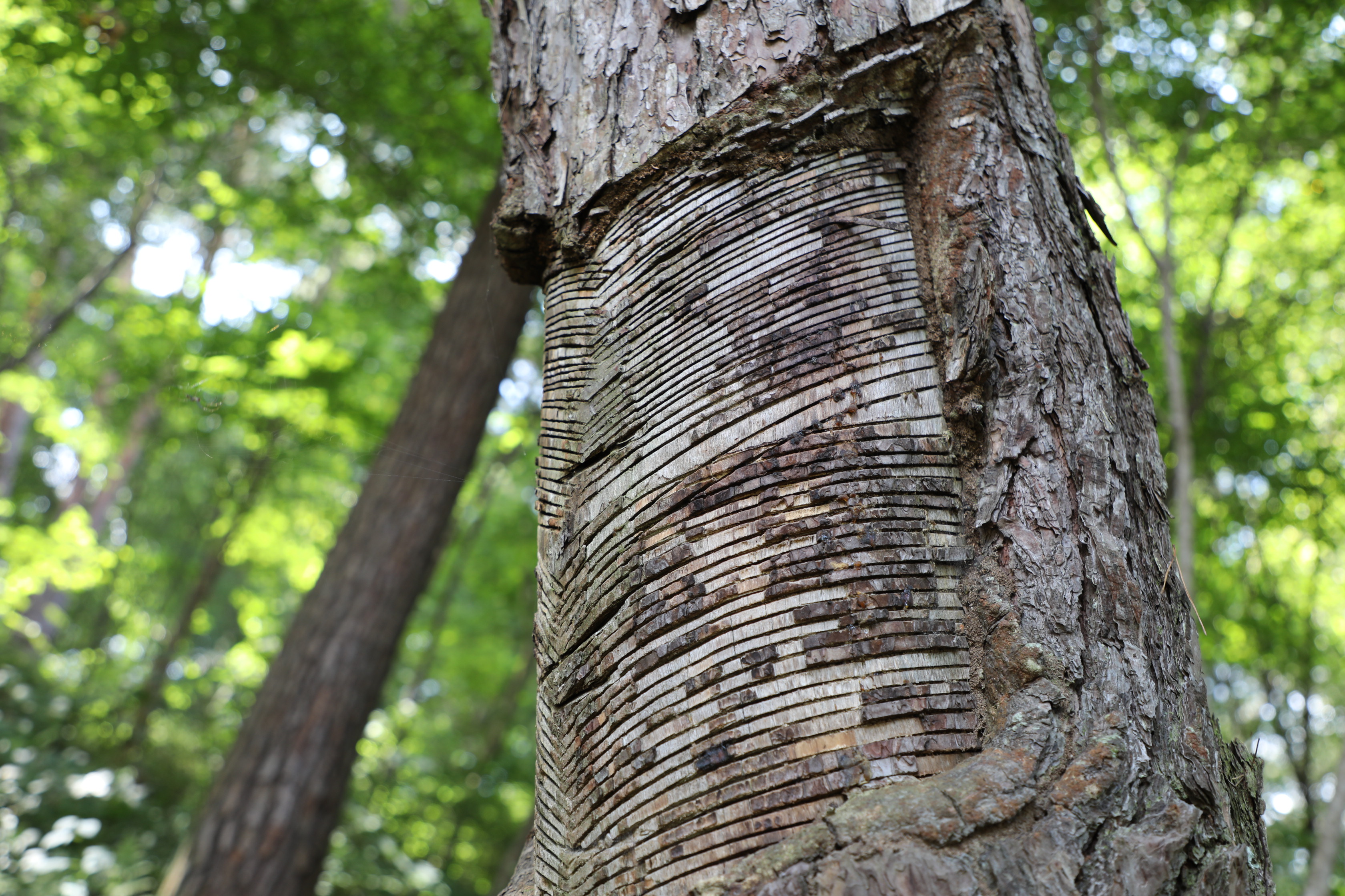 일제강점기 때 송진 채취를 한 흔적이 지금도 고스란히 남아 있다.