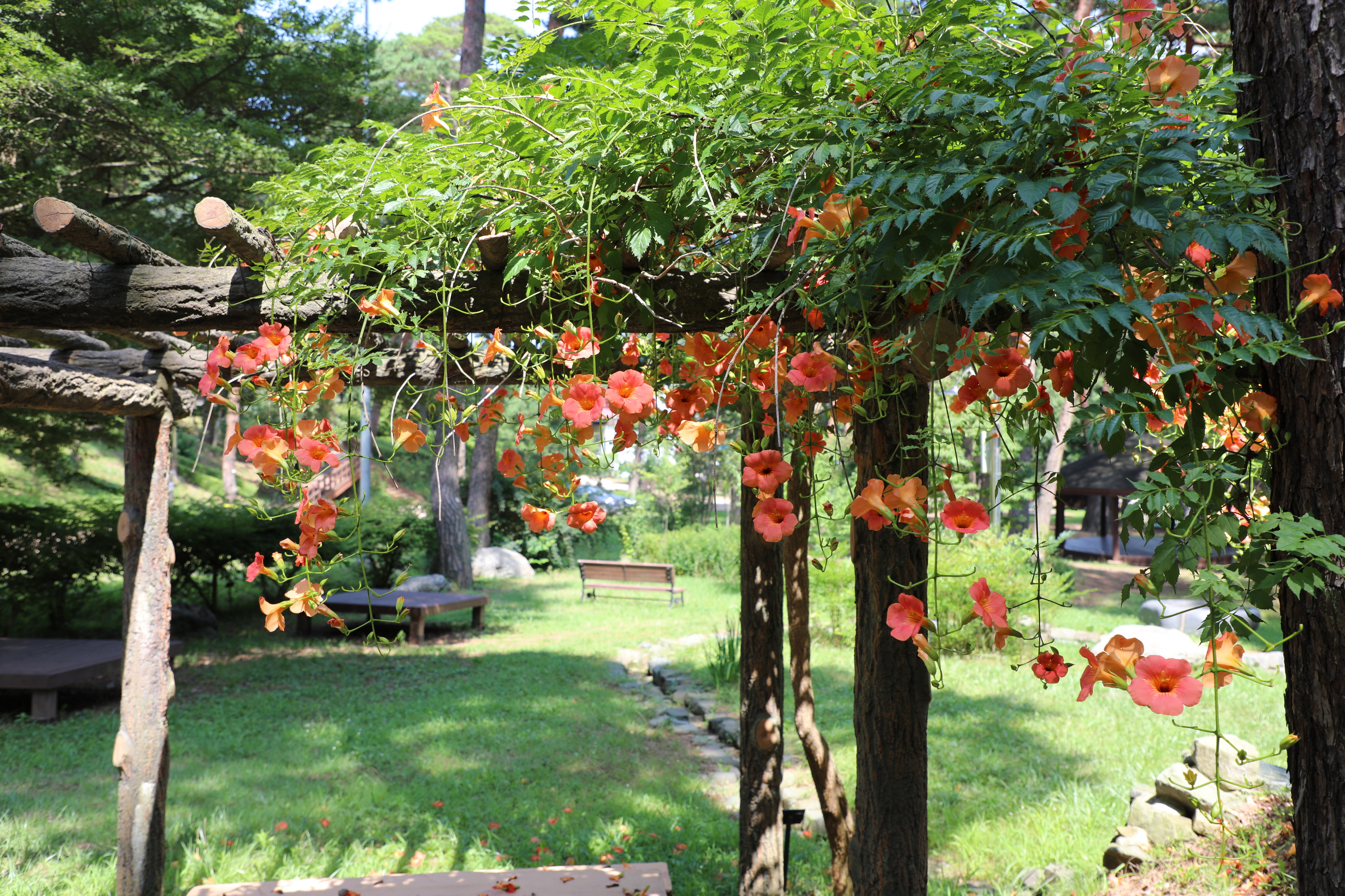 휴양림으로 들어서면 울창한 소나무에서 뿜어 나오는 솔향기에 정신이 맑아진다.