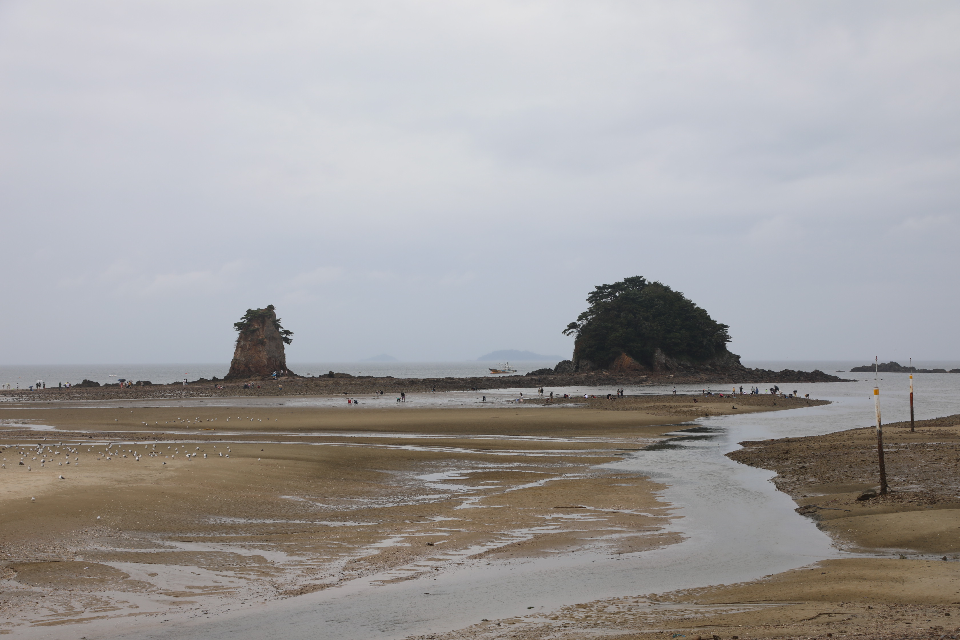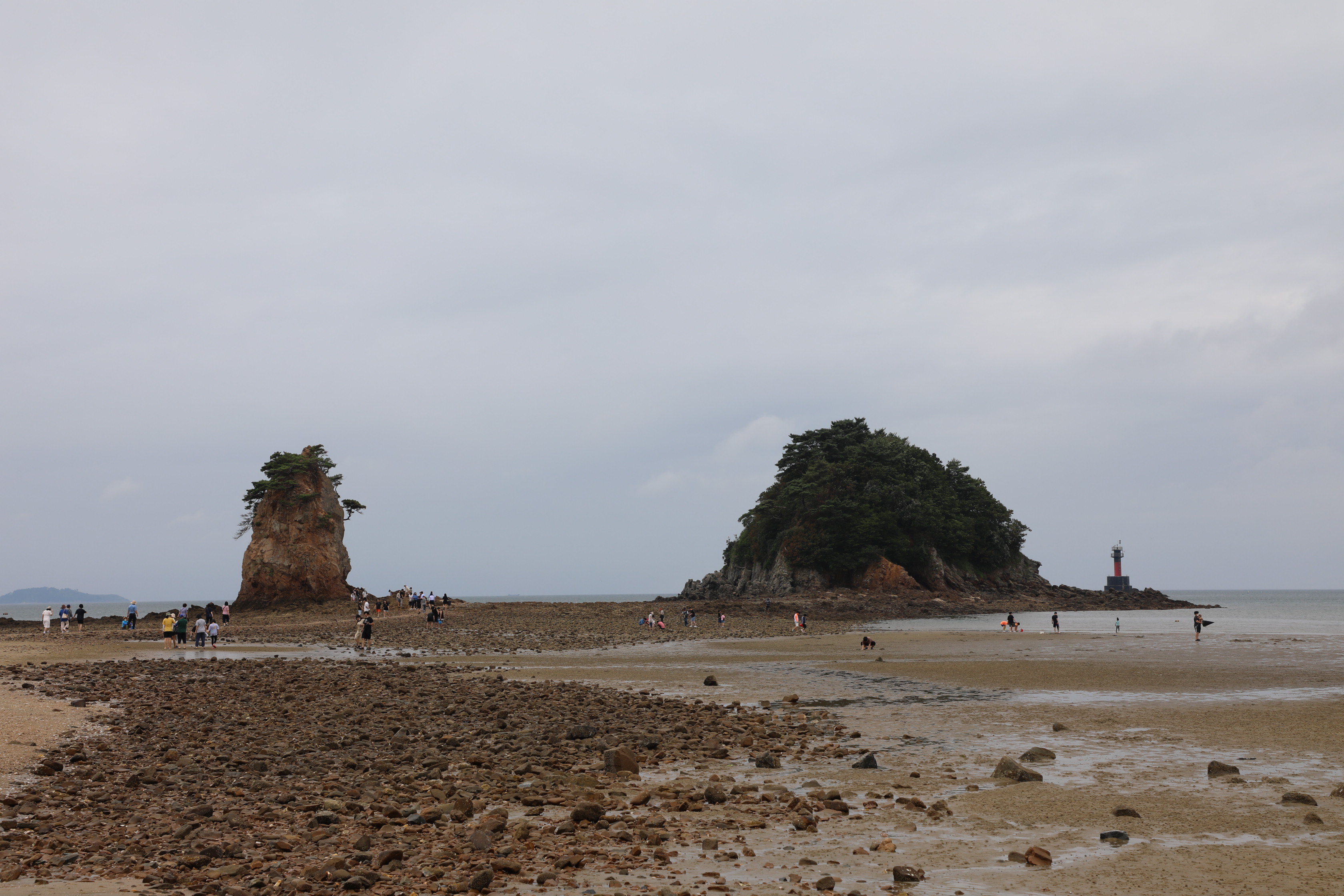 다행히 썰물이라 갯벌이 다 드러난 해변을 건너 잠시 탐방하는 기회를 가졌다.