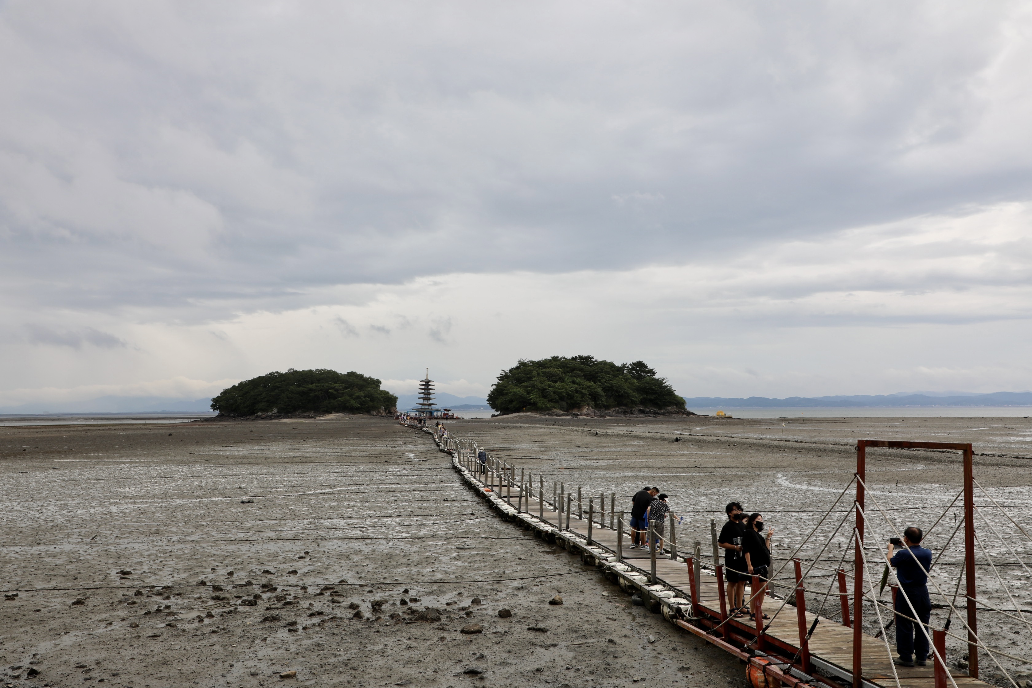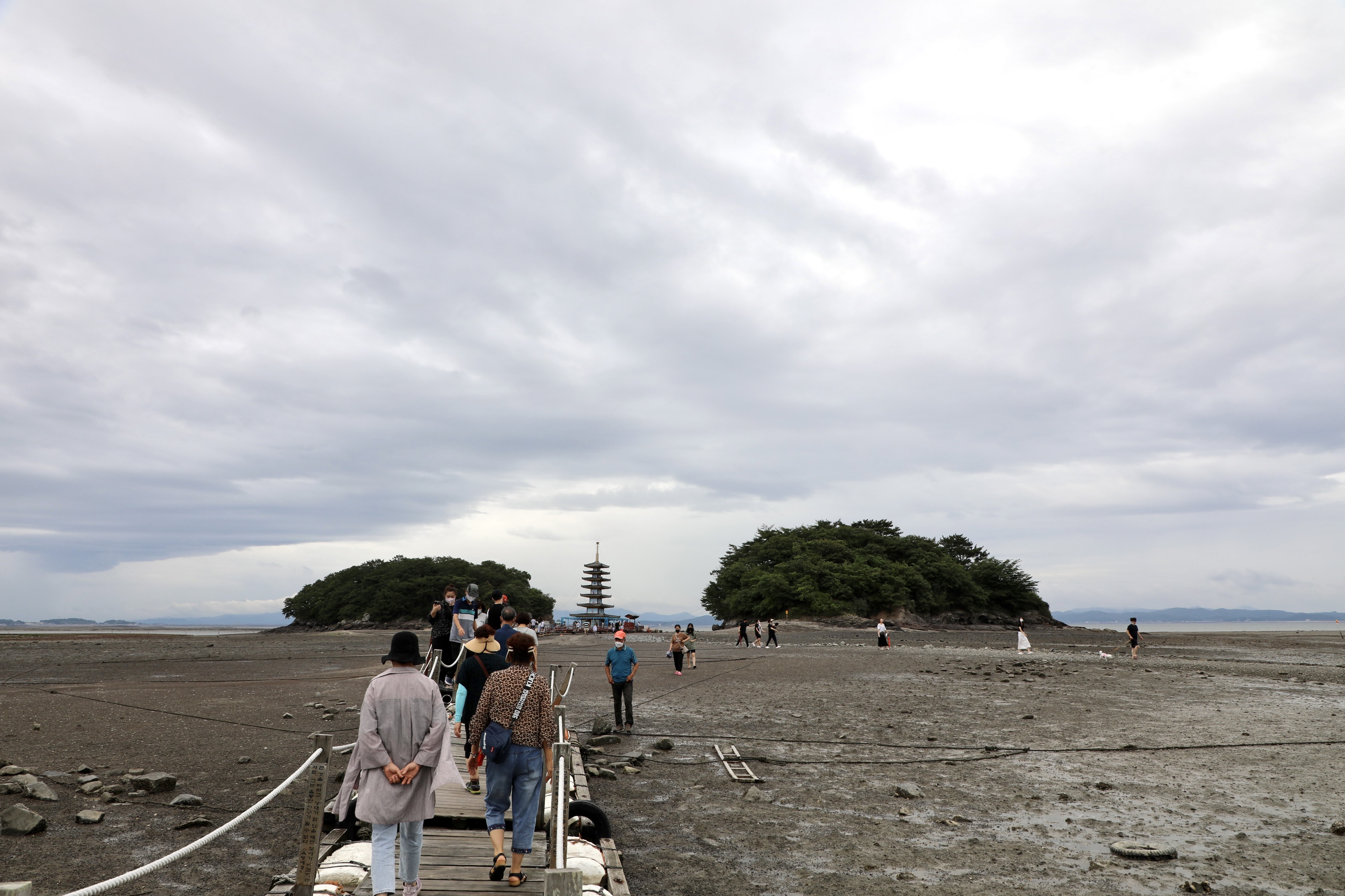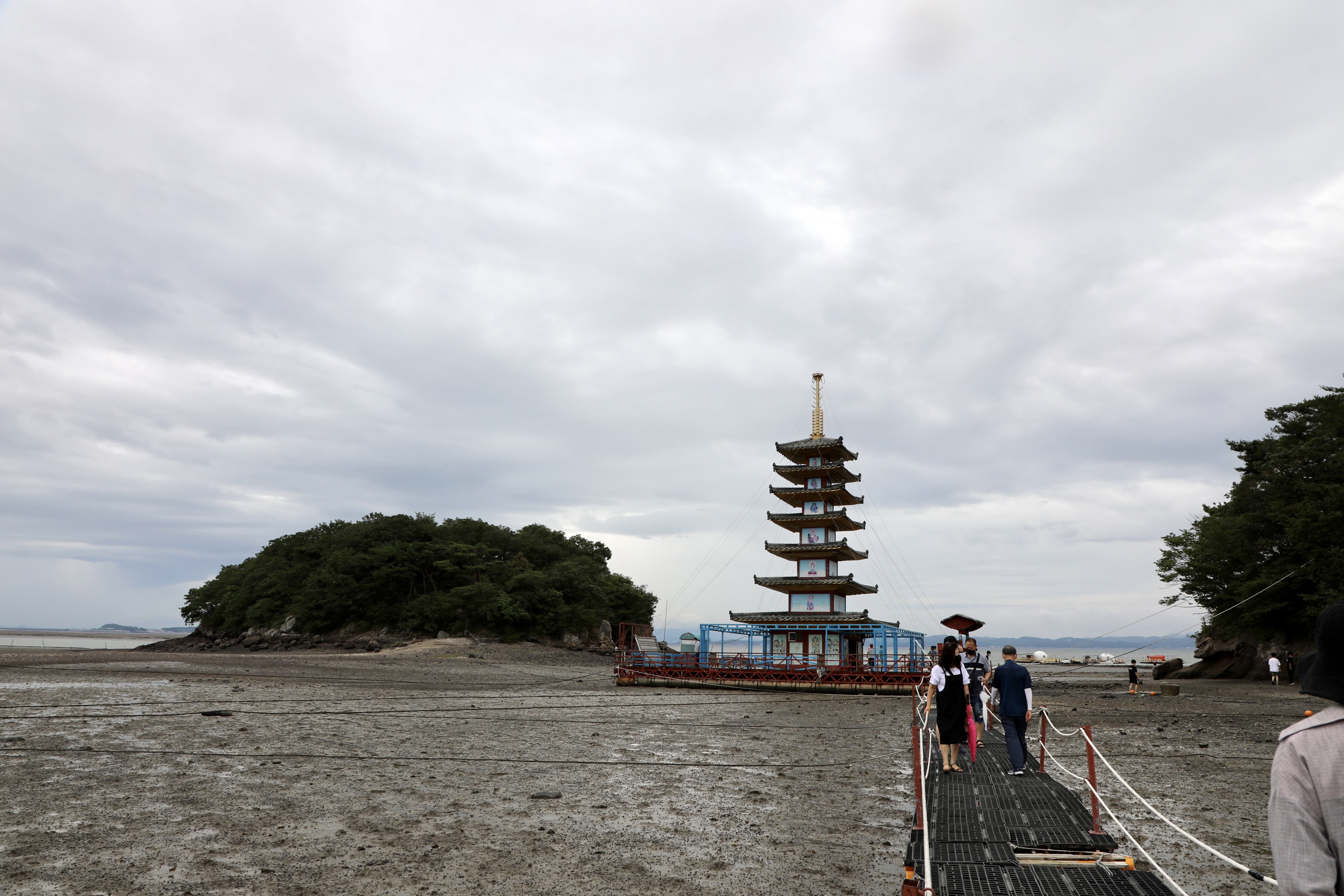 즐풍은 두 번째 안면암을 방문하기에 먼저 여우섬 앞에 있는 부상탑을 보여주기 위해 부교를 건넌다.
