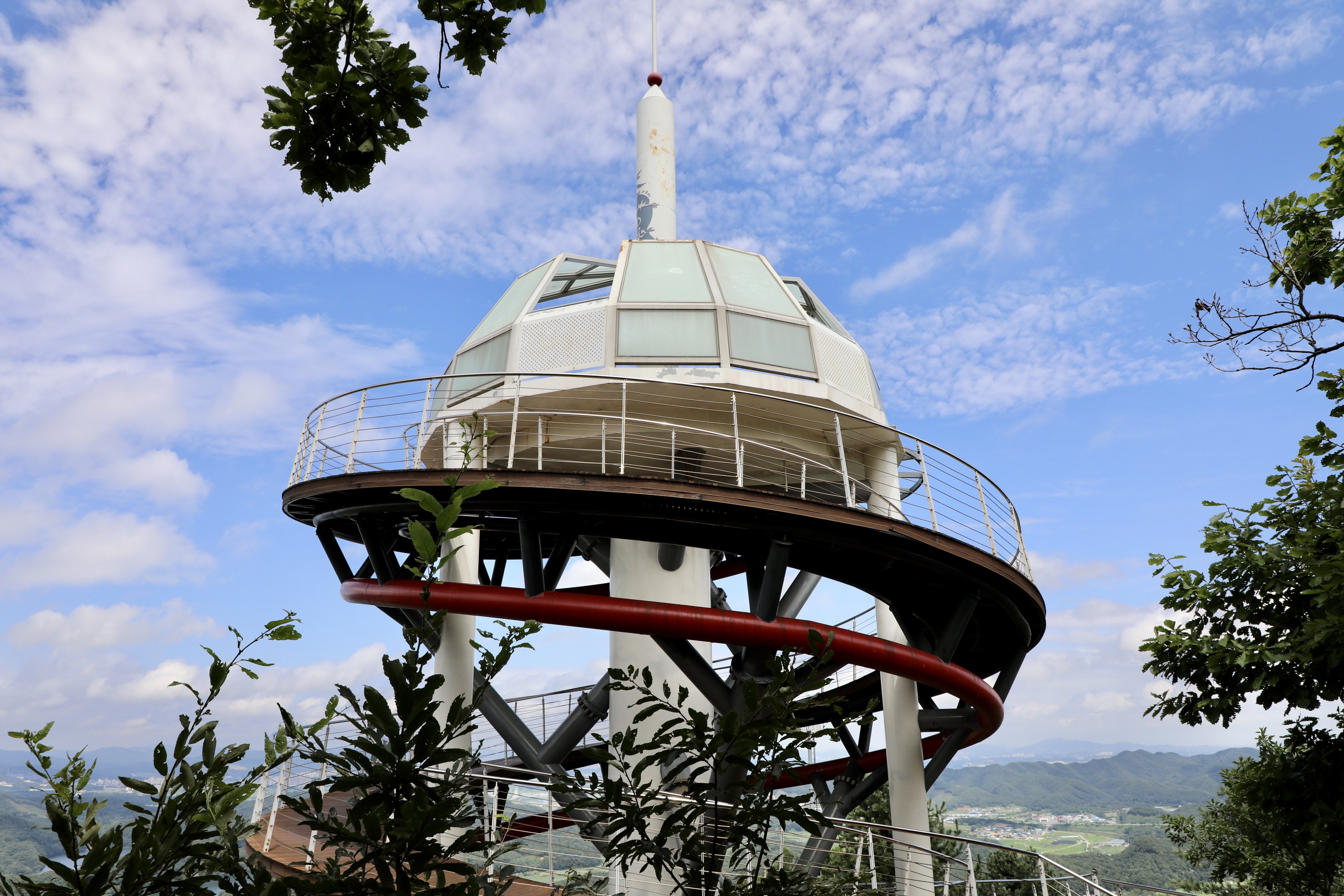 이 나선형 전망대 맨 위까지 올라가야 한반도 지형이 보인다.