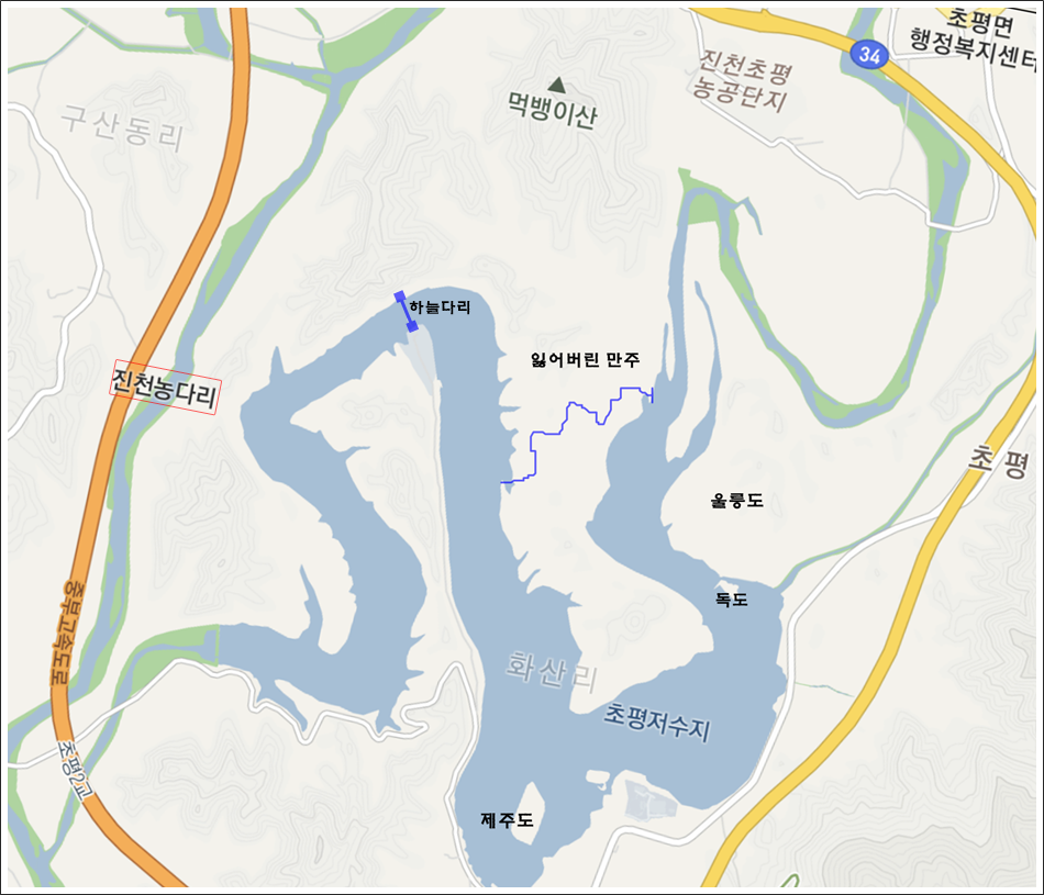 진천 초평호에 들어앉은 한반도 지형, 하늘다리, 농다리 그리고 귀로에 안성의 죽주산성이 오늘의 미션이다.