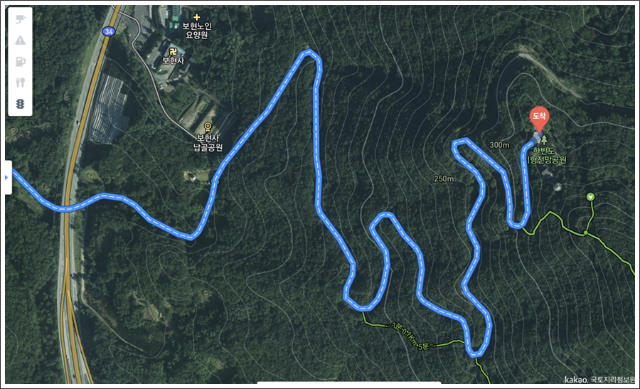 카카오 맵을 통해 평면적으로 본 한반도 지형이다.
