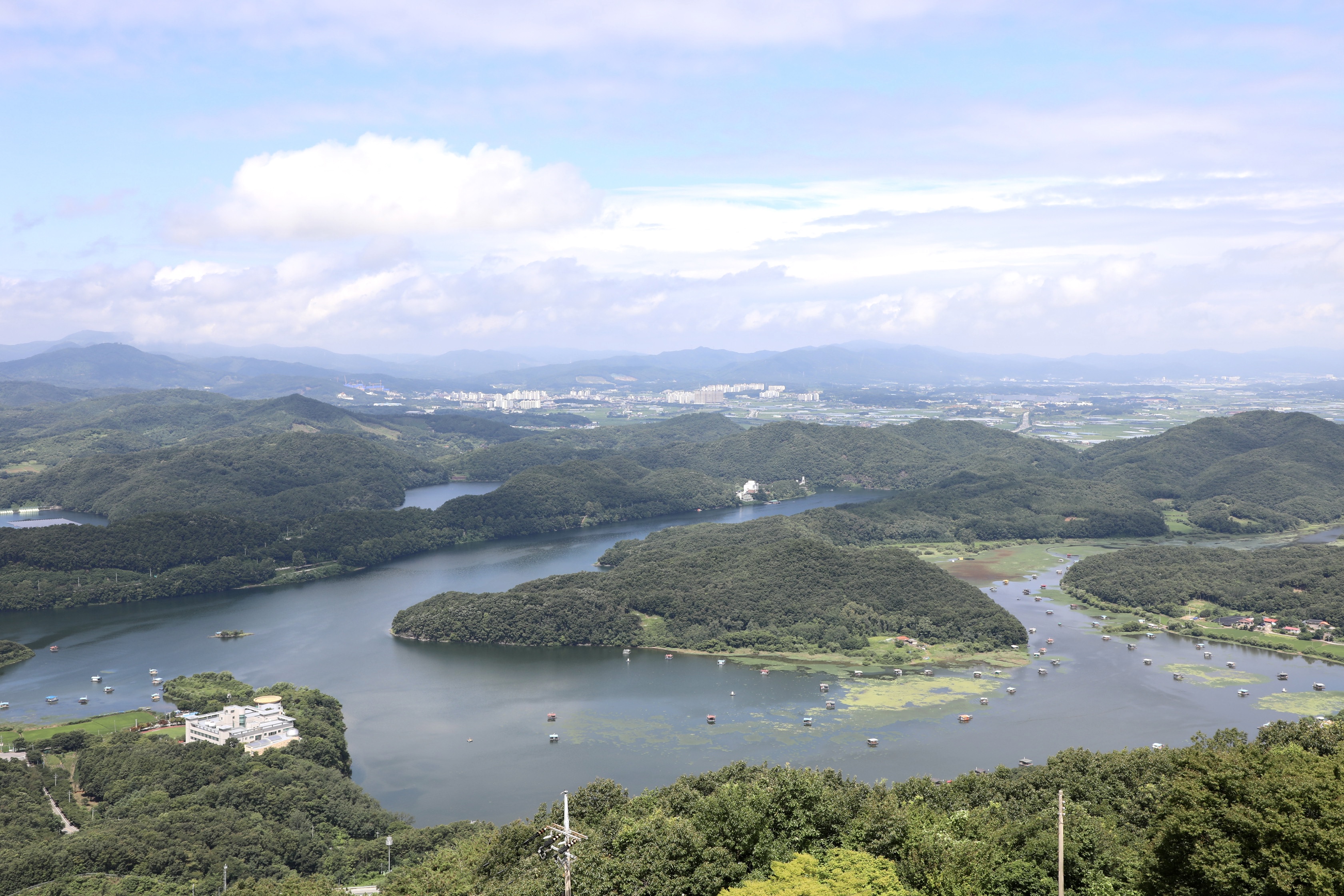 전망대에 오르기 전까지 한반도 지형은 제대로 보이지 않는다.