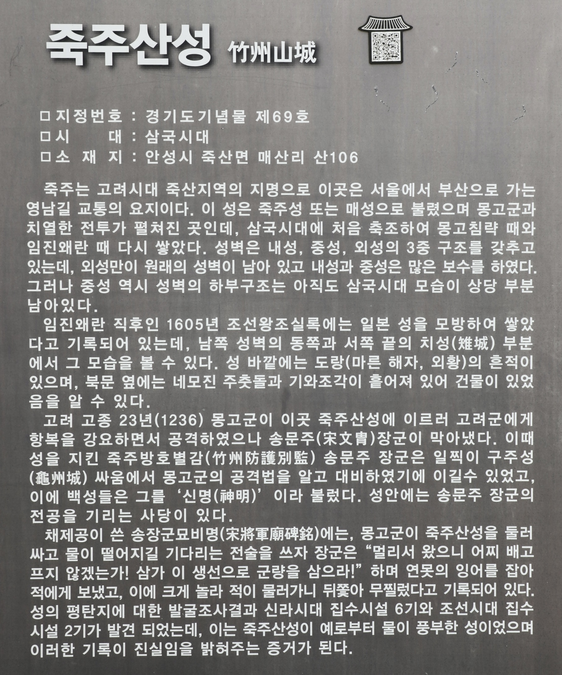 죽주산성은 삼국과의 전쟁을 위해 처음 만들었으나 임진왜란을 거치며 왜적과 대항할 산성으로 바뀌었다.