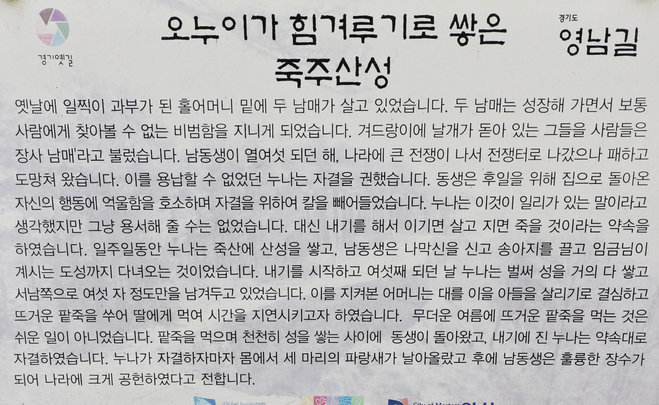 오누이가 쌓았다는 이 안내문은 일전에 예산 임존성의 묘순이 남매와 비슷한 전설을 갖고 있다.