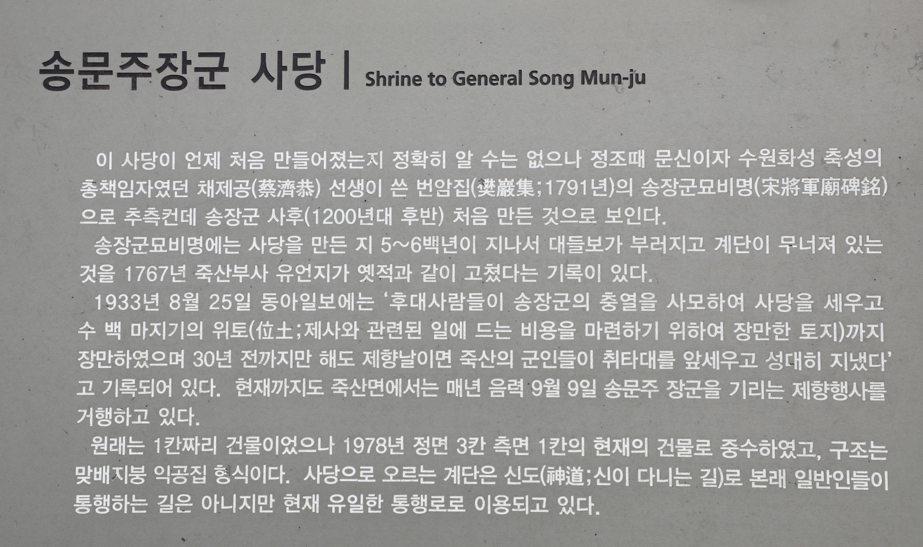 동문에 도착하면 산 언덕 쪽에 송문주 장군의 사당이 있다.