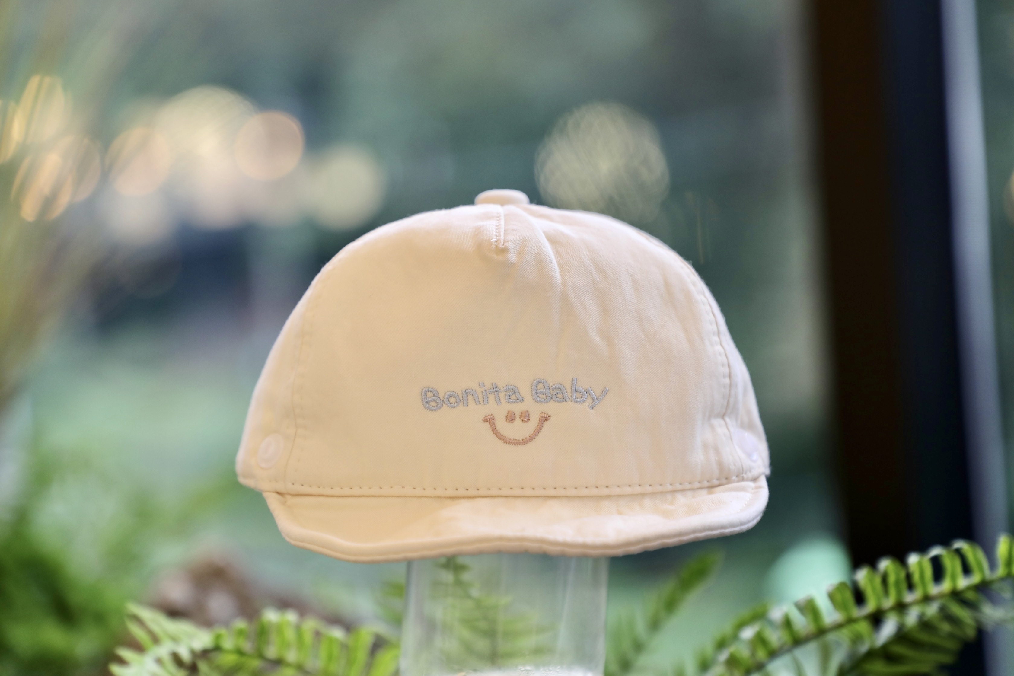 손주의 얼굴을 세상에 내놓지 말라고 하니 모자를 대신 내놓는다.