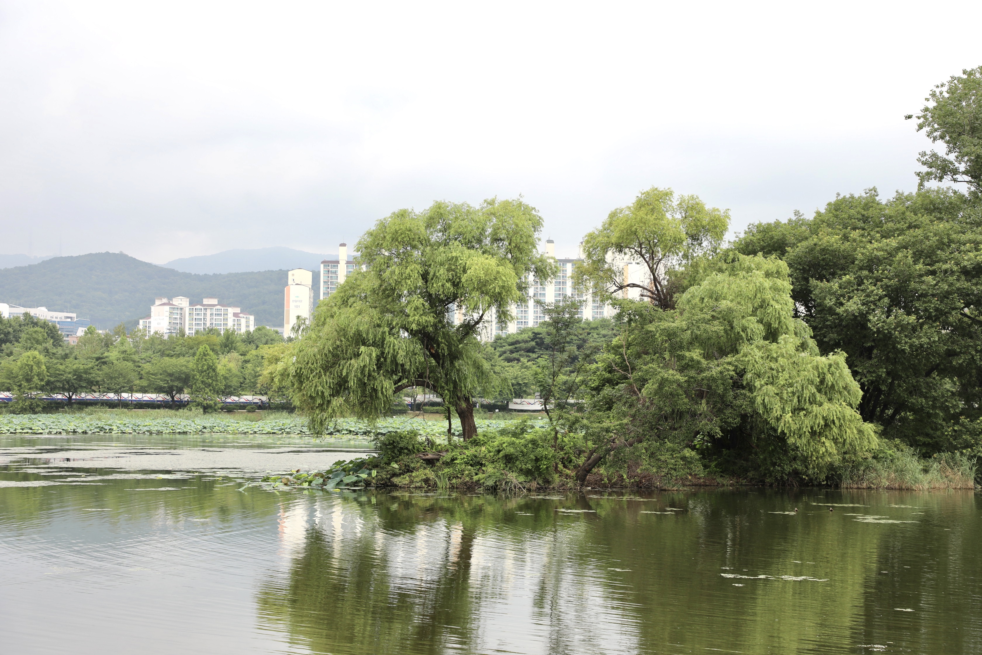 섬의 한쪽에 있는 버드나무가 보기 좋다.