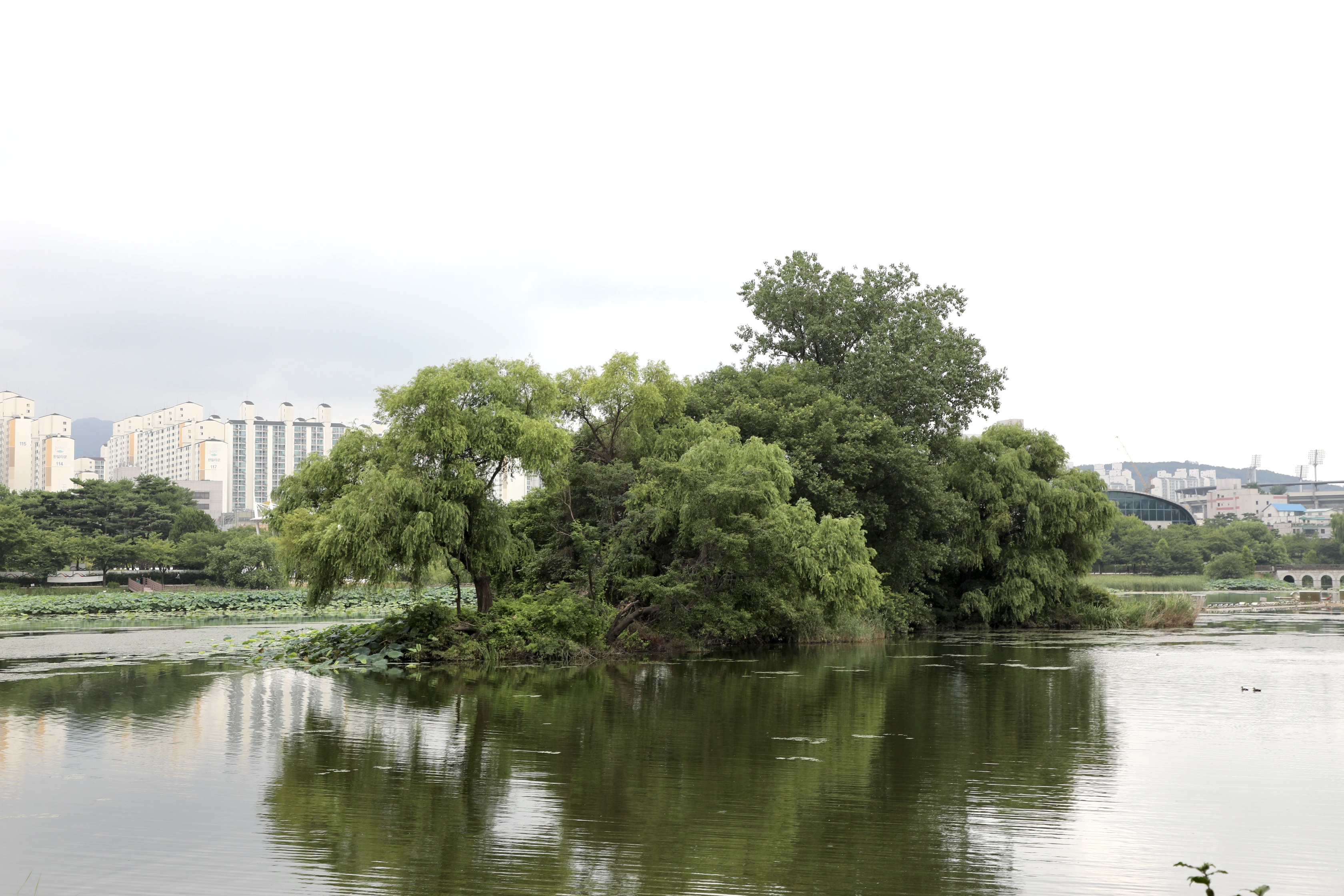 만석거란 저수지를 만들 때 조그만 섬을 만들어 풍광을 보기 좋게 했다.