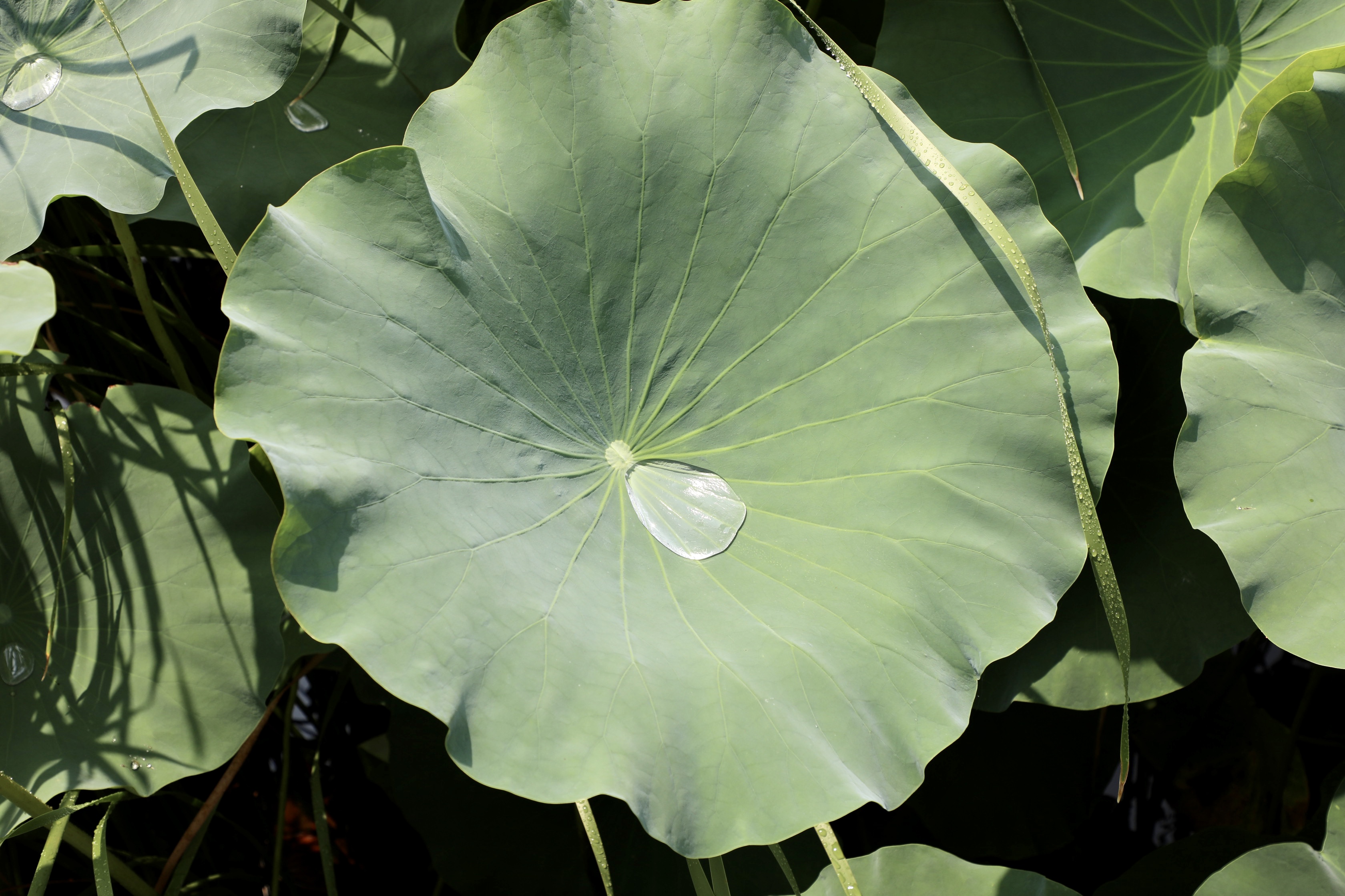 연잎이 이렇게 방수가 잘 되니 비 올 때 머리에 하나 두르면 머리는 온전히 비를 피할 수 있겠다.