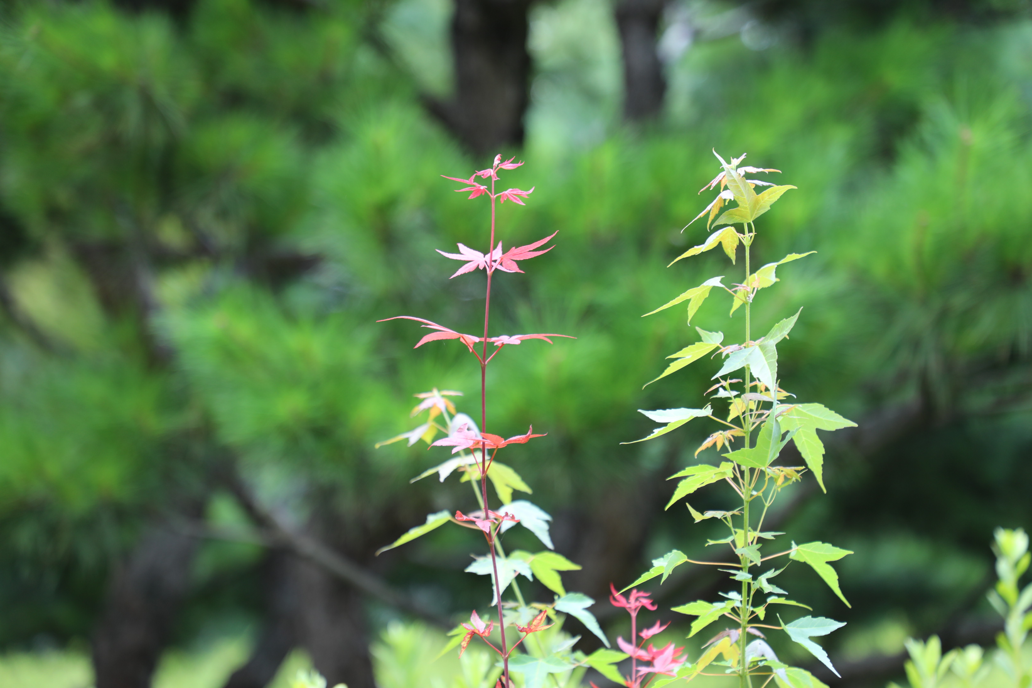 단풍나무 줄기가 쌍둥이처럼 올라가도 태생이 다르게 보인다.