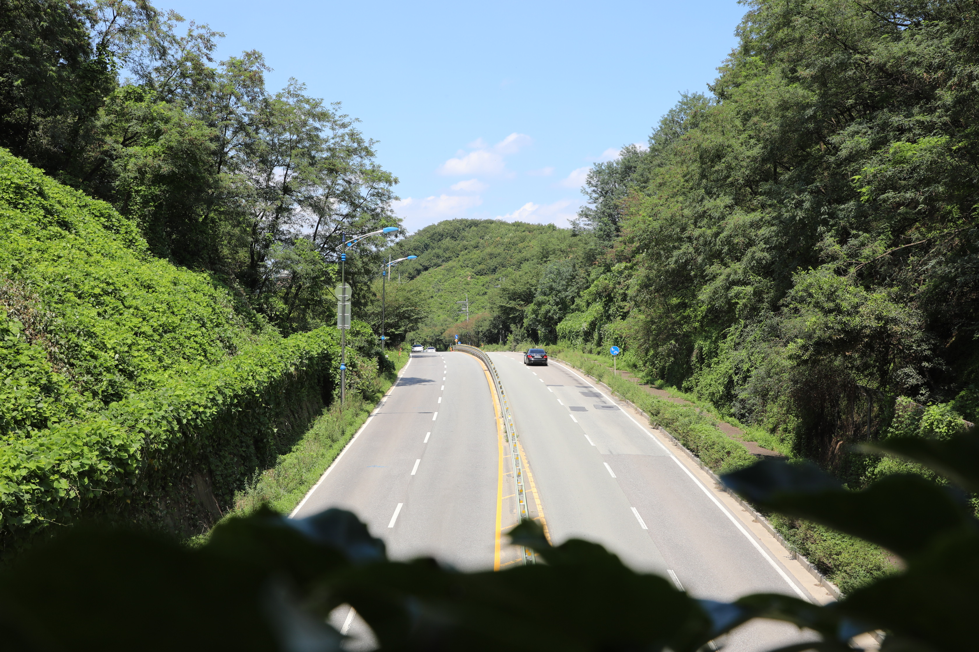 부락산과 덕암산을 연결하는 생태통로가 317번 지방도로 위를 지나간다.