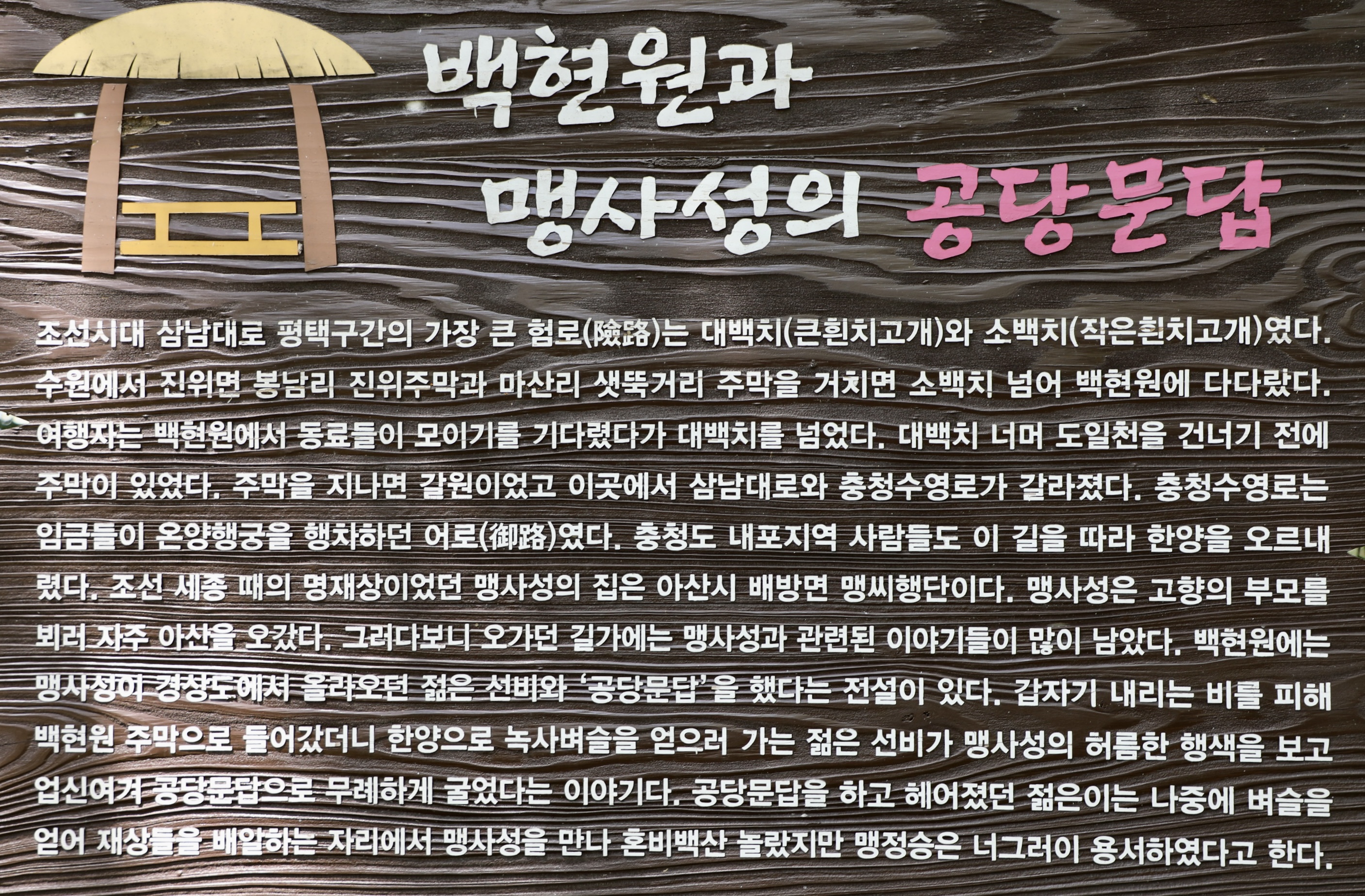 맹사성이 온양에 갔다가 돌아오는 길에 비를 만나 용인의 한 여관에 들렀다.