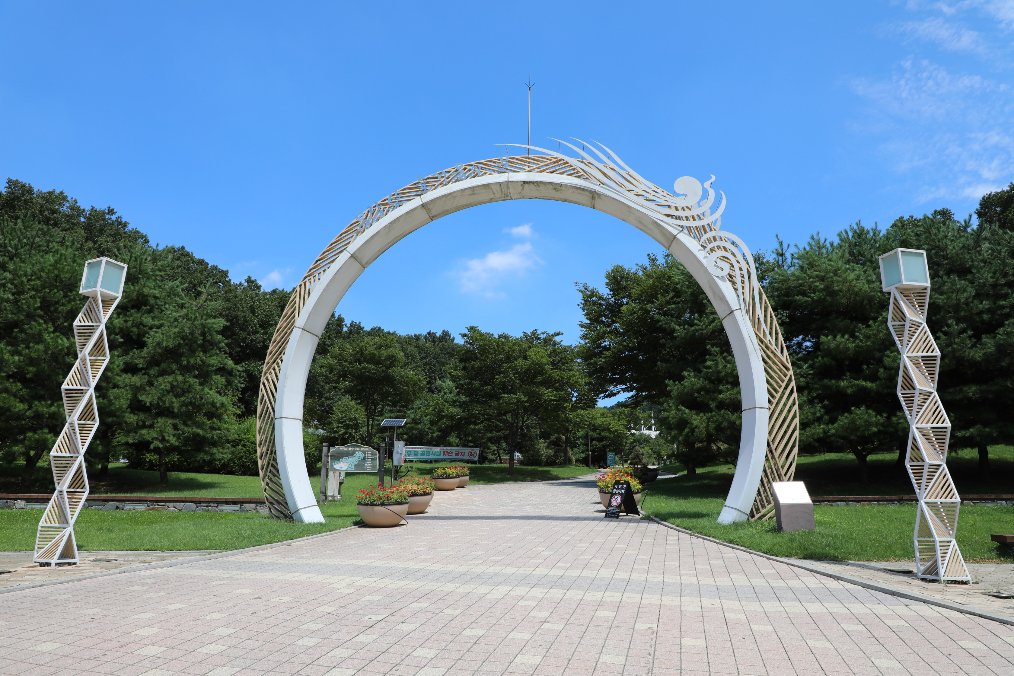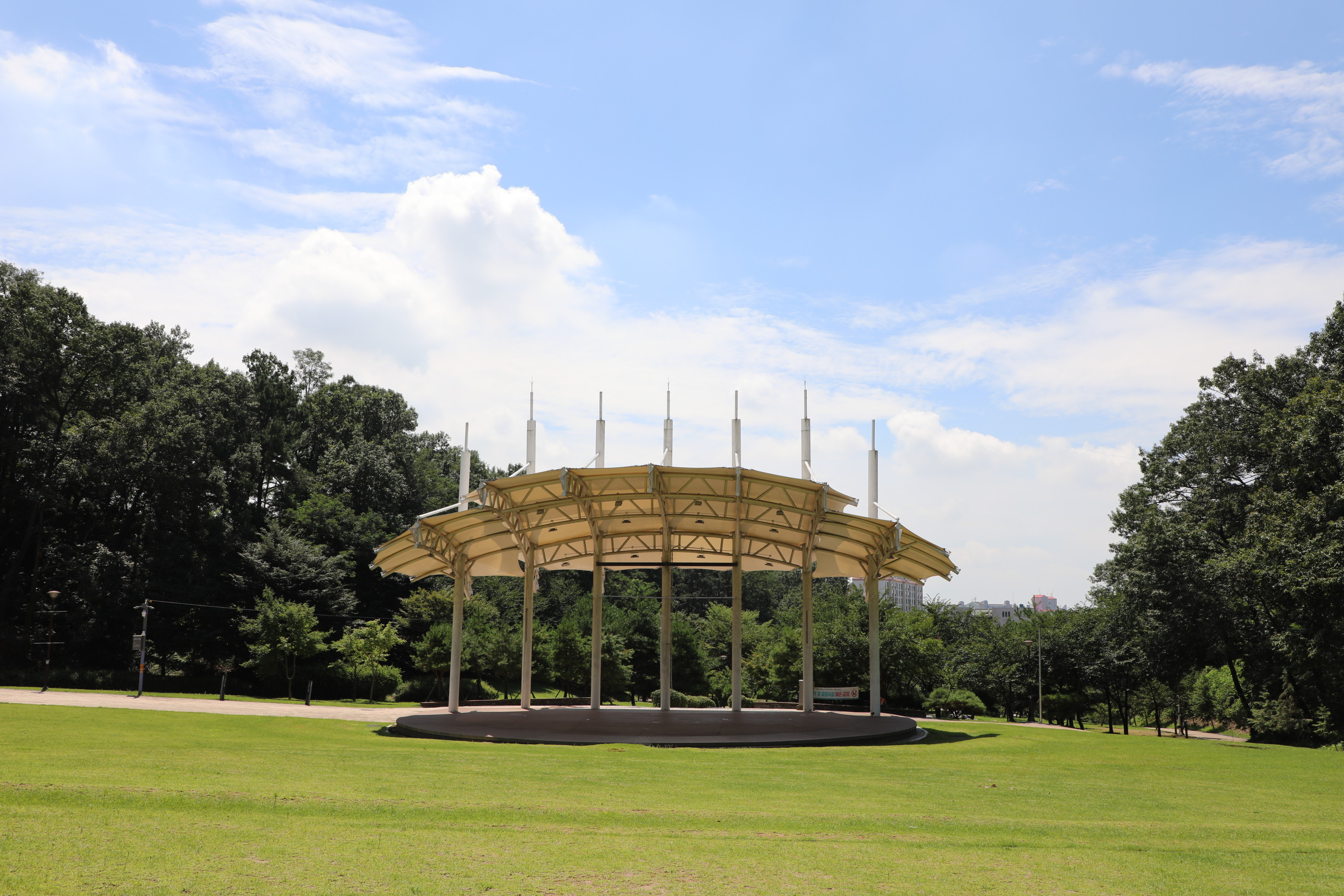 부락산으로 들어가는 입구는 넓은 잔디밭과 작은 공연장이 있다.