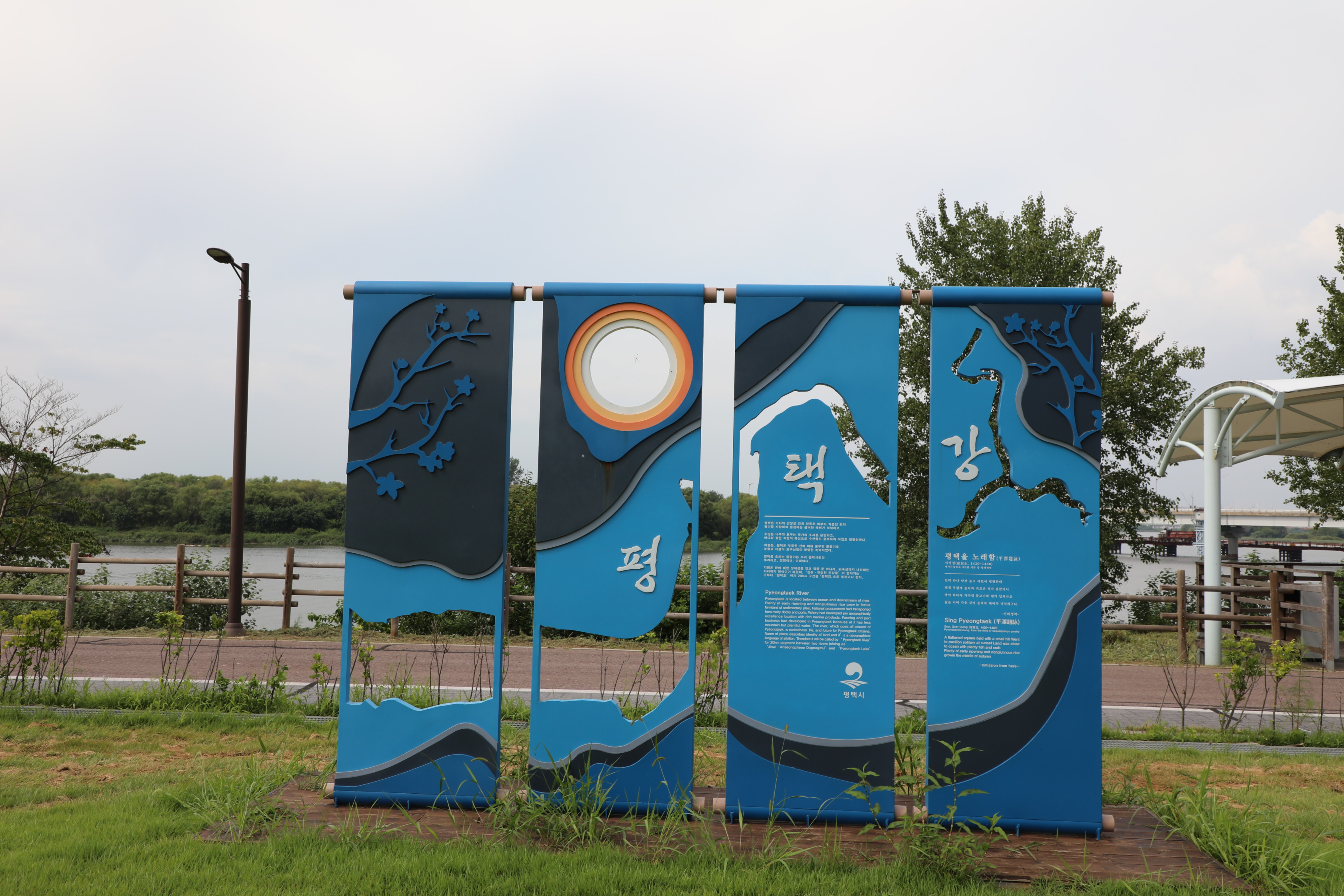 평택 시내를 거치는 동안 여러 지류가 합쳐지며 내리 문화공원 앞에서는 제법 규모가 크게 흐른다.