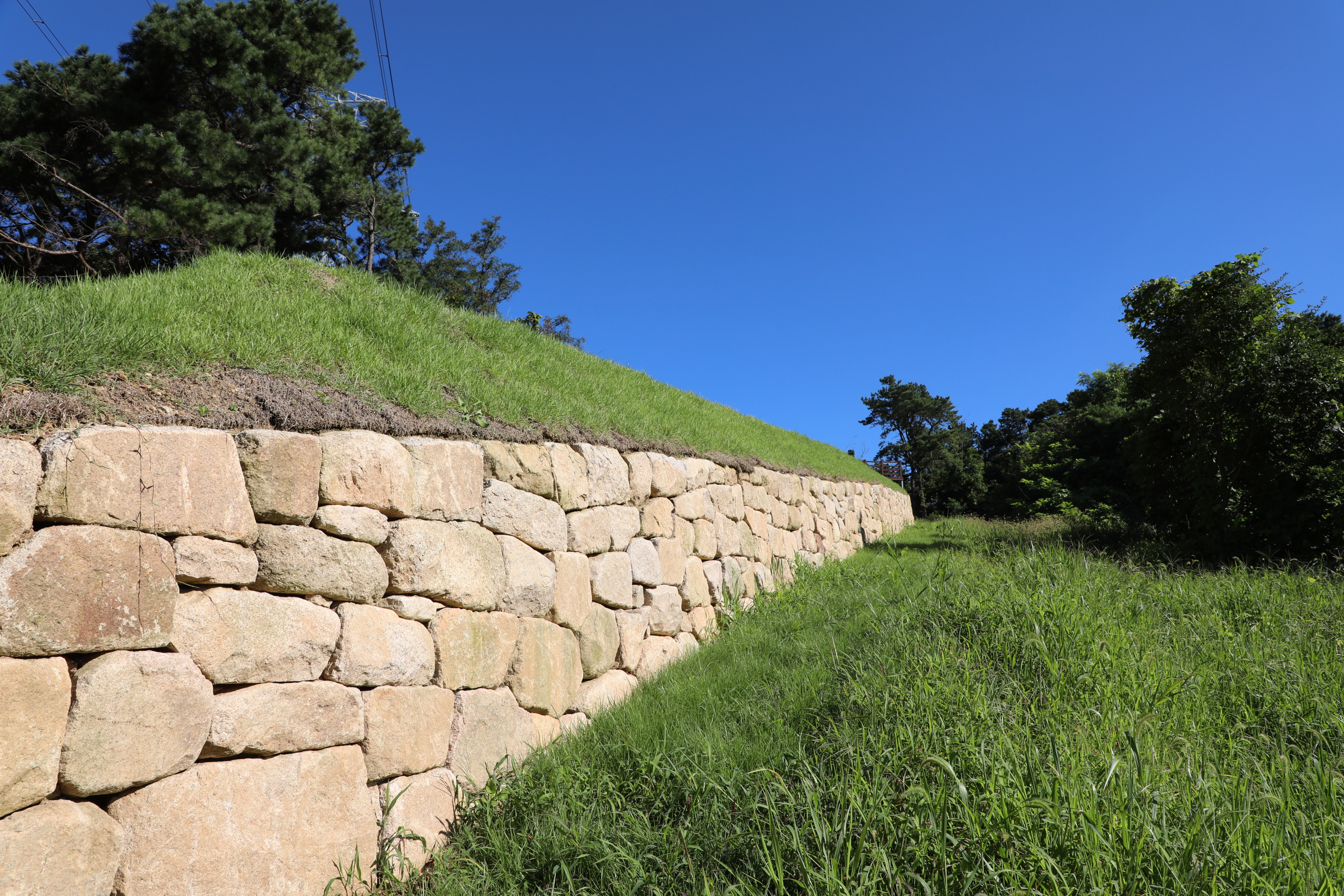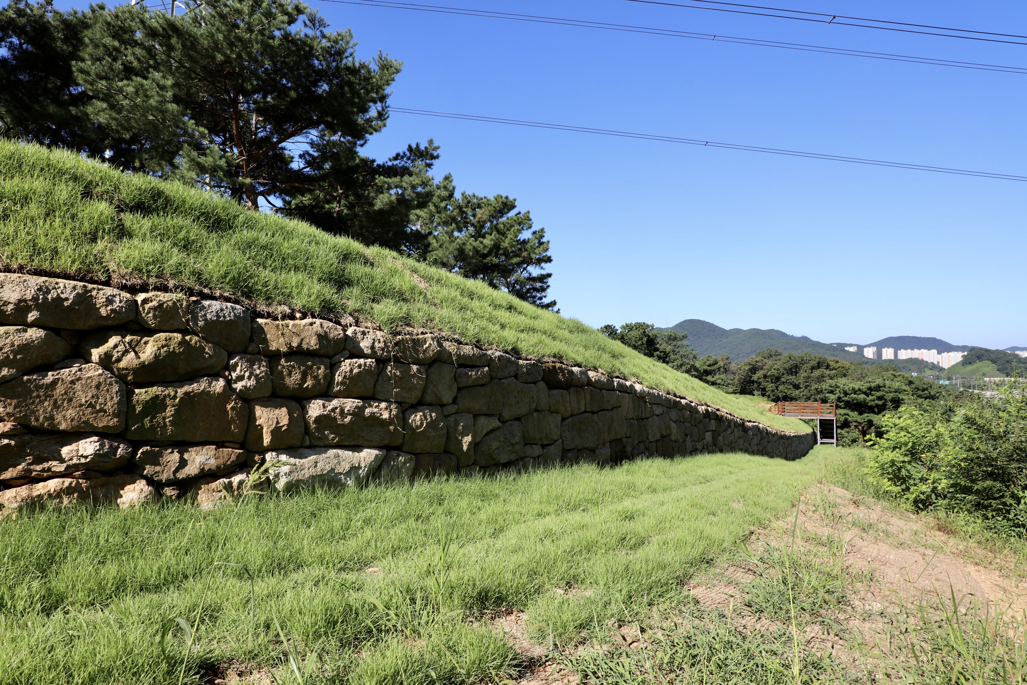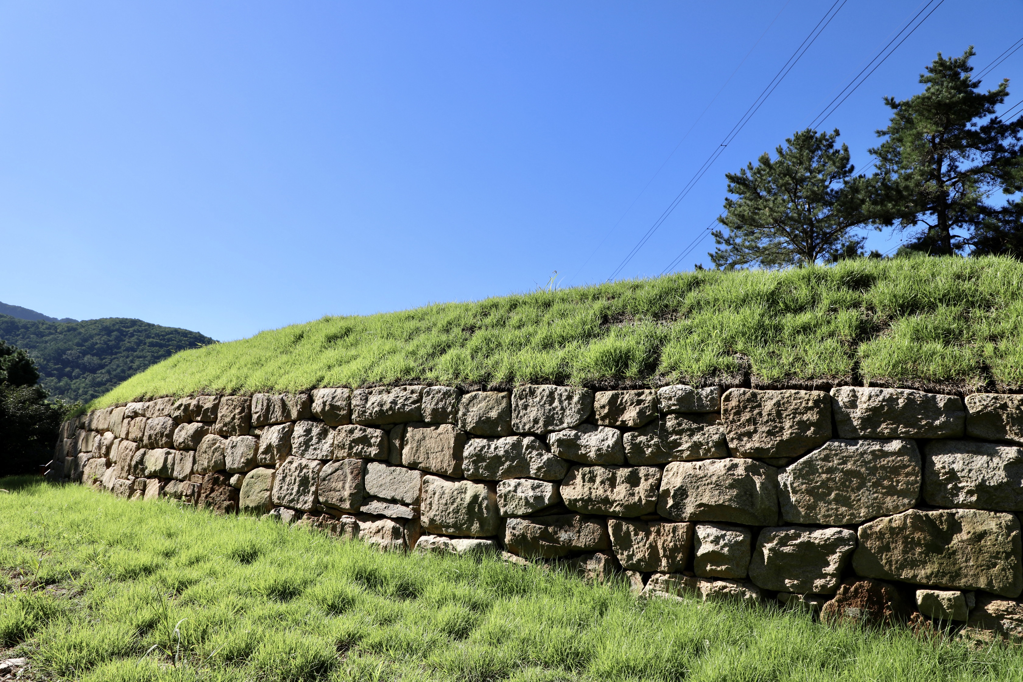 성을 쌓고 때를 한 장씩 얹은 것으로 그 사이사이에 지난 장마 때 빗물이 흐르며 몇몇 군데는 깊게 파인 곳이 있다.
