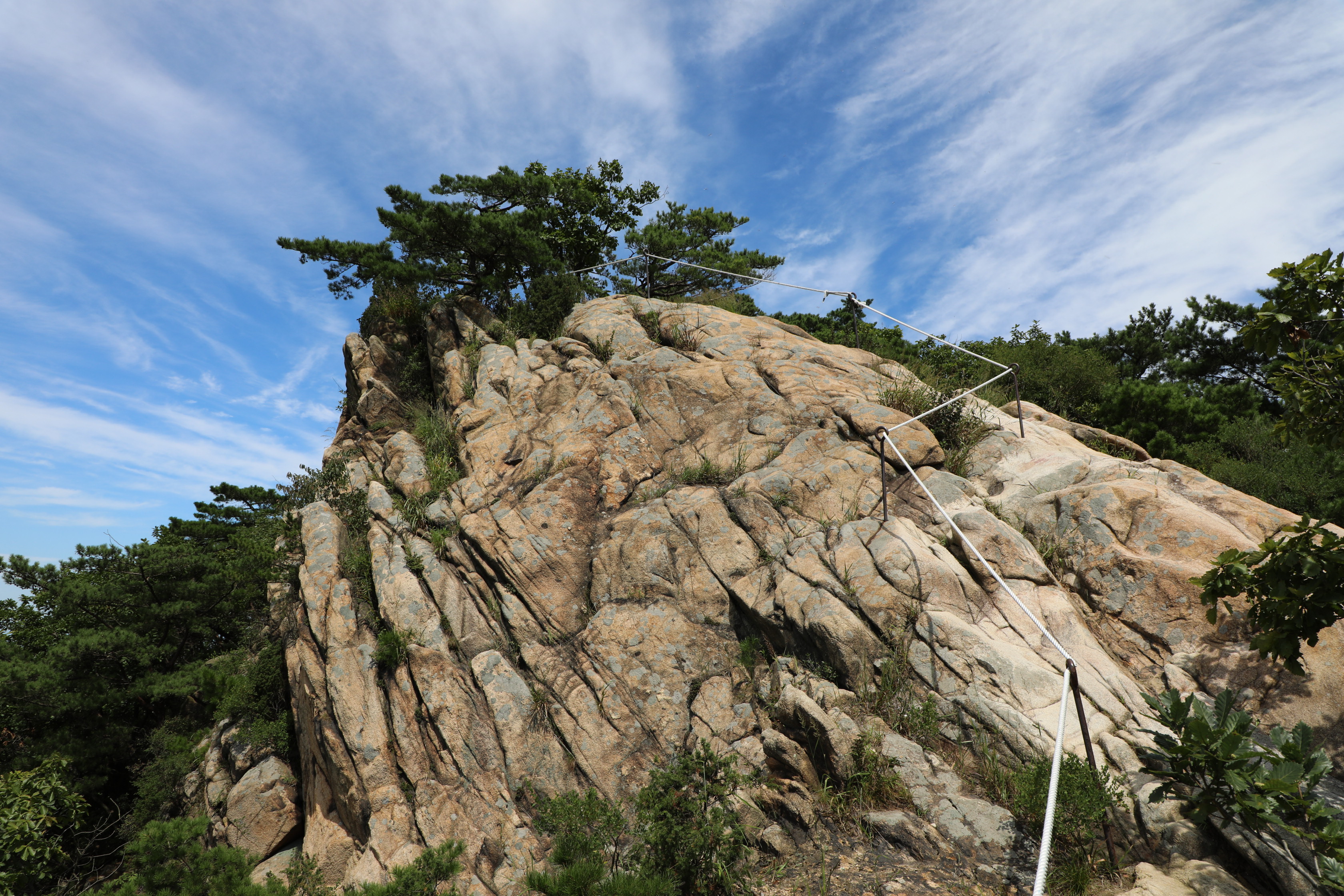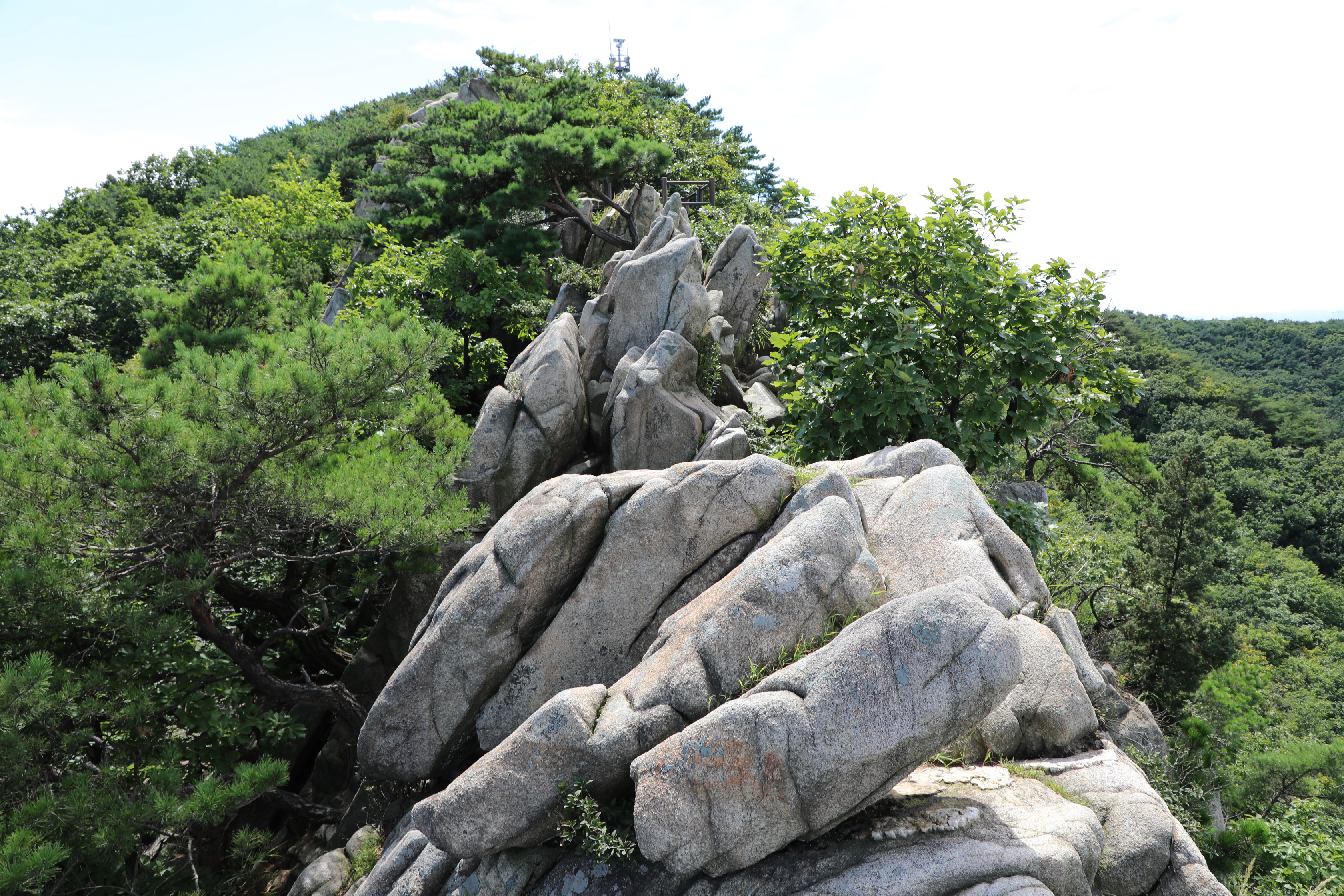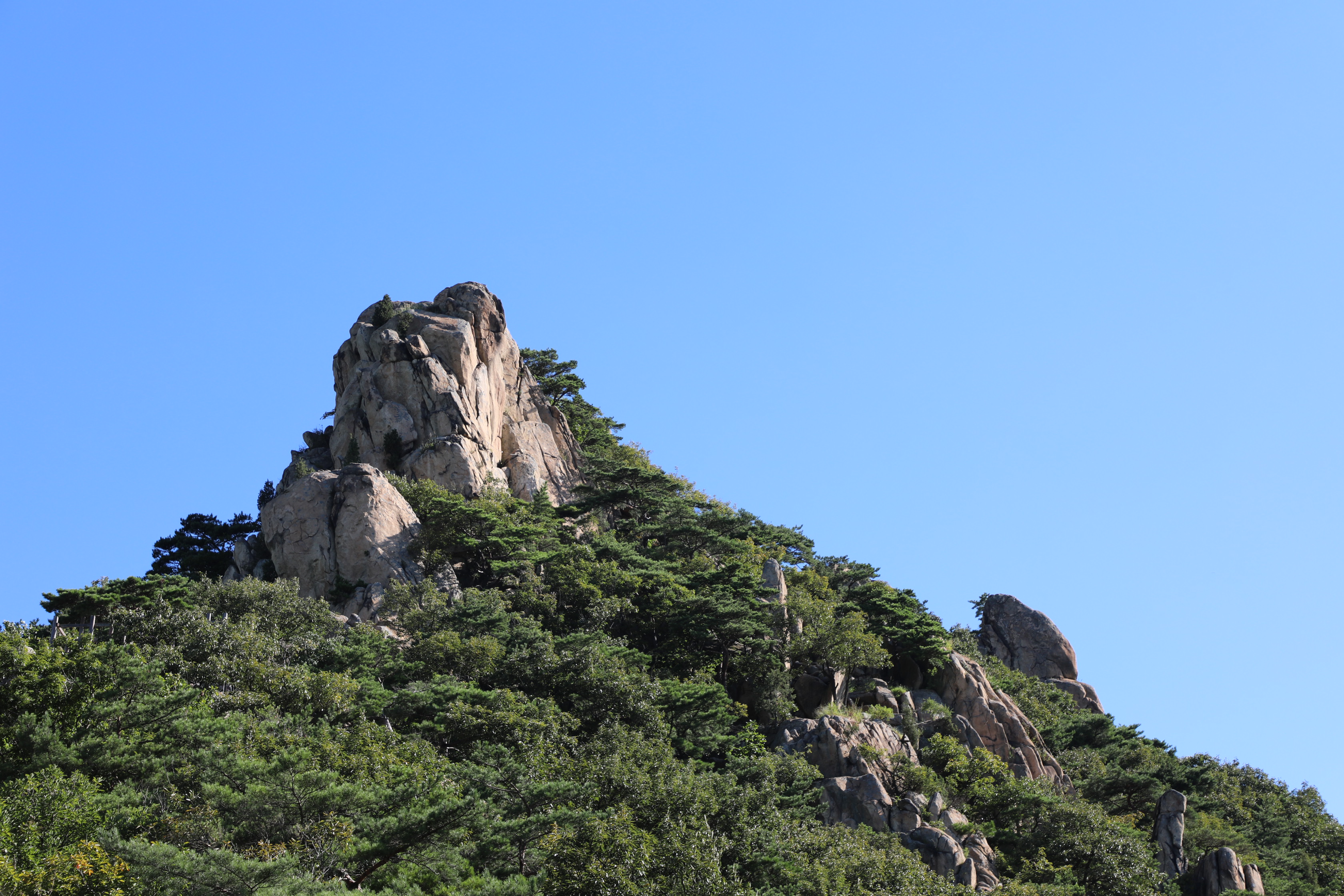 푸른 산에 불꽃처럼 일어선 바위가 멋지다.