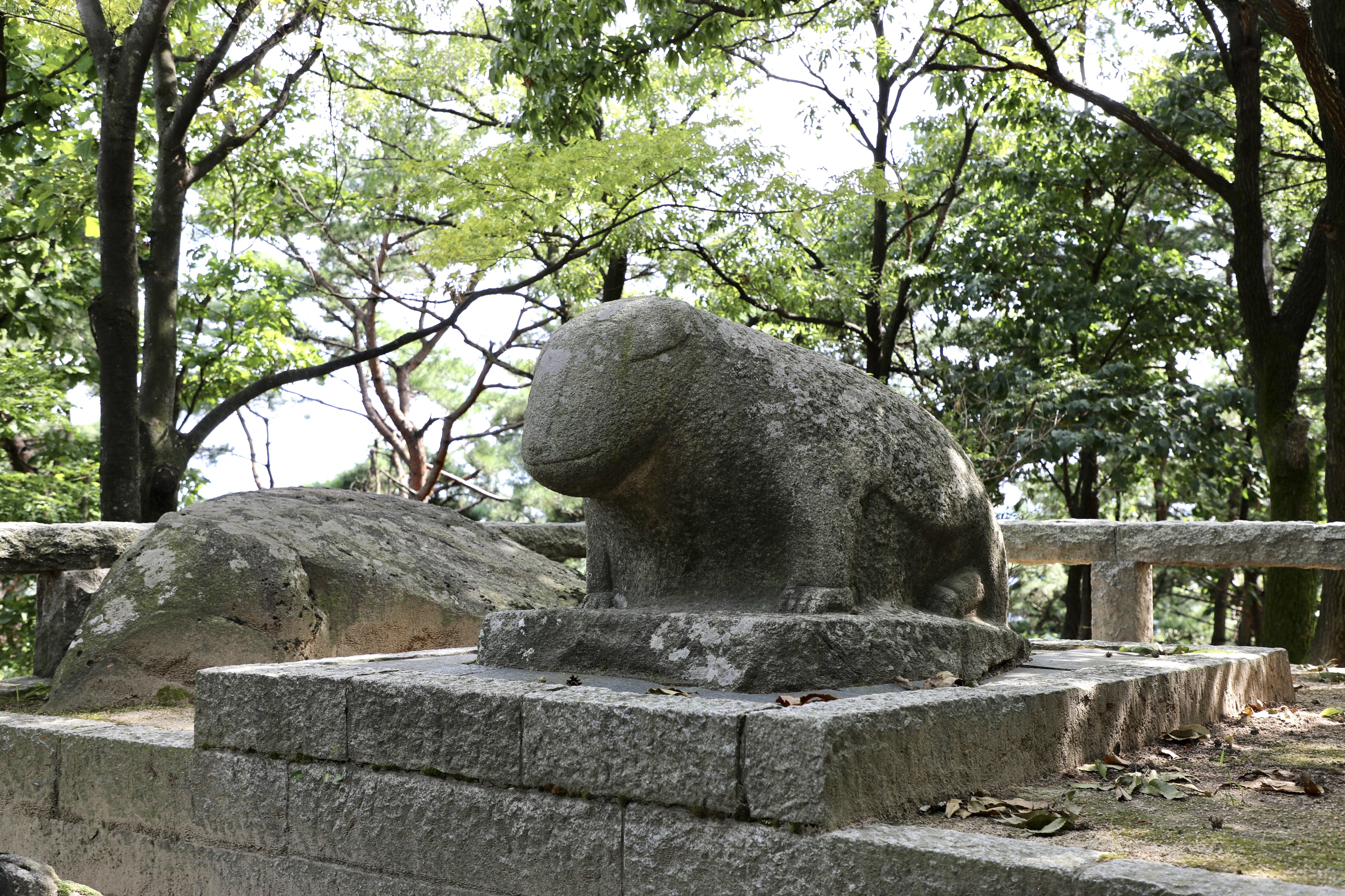 한때 해태로 알려졌다는 이 석구는 눈을 감은 게 온순해 보인다.