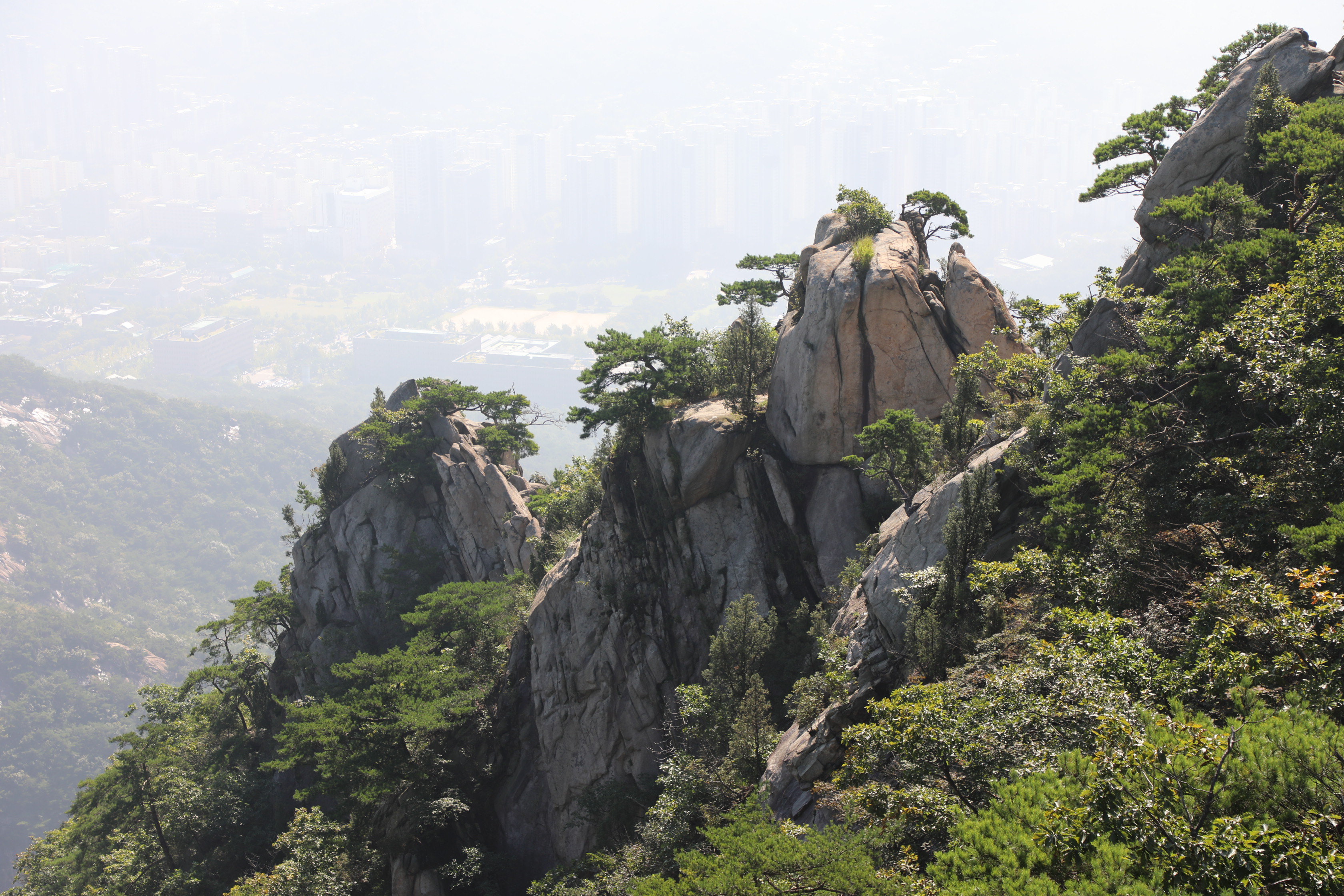 빼어난 기암절벽과 울창한 산림이 어우러진 해발 629m의 관악산은 갓 모양을 닮은 아름다운 바위산이다.