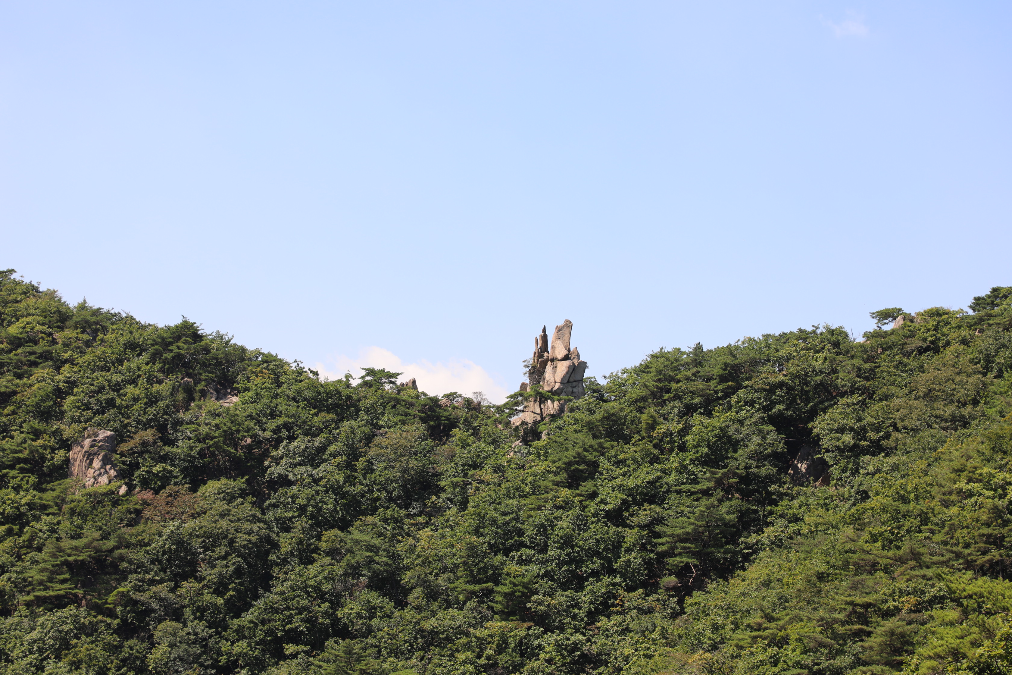 미소능선 하단에서 볼 때 거대한 바위가 맞은편 비탈을 타고 능선으로 연결되는 암봉이다.