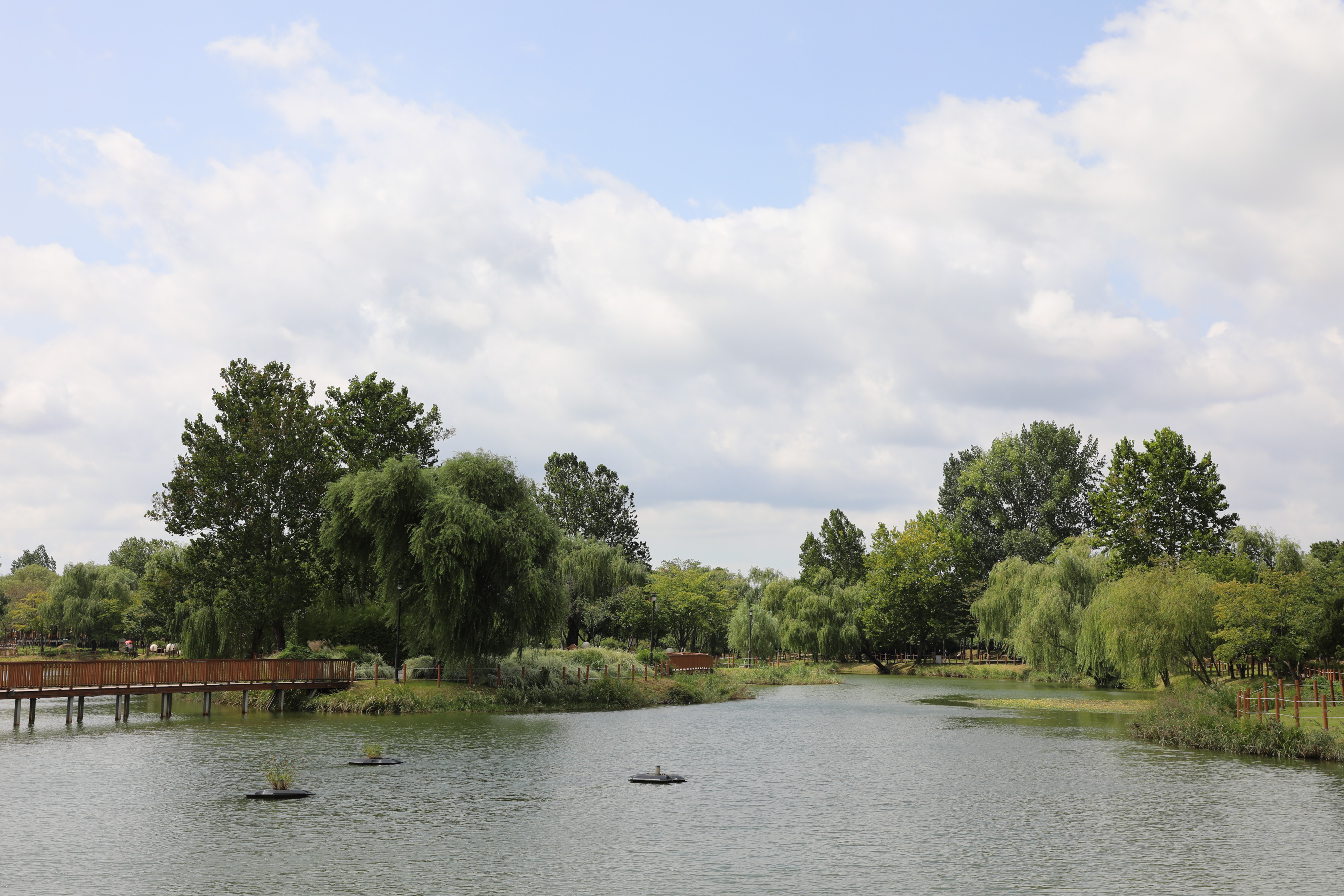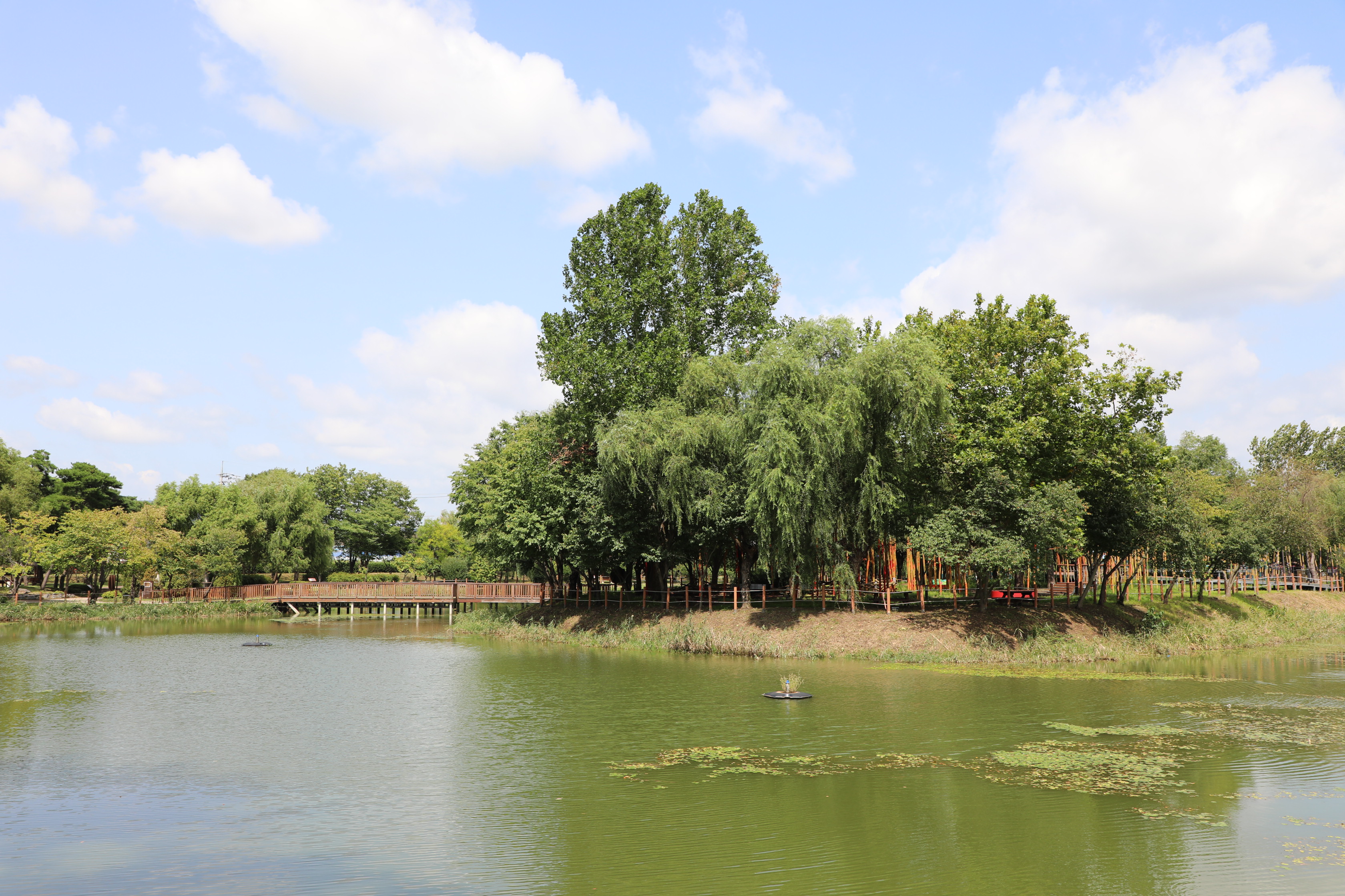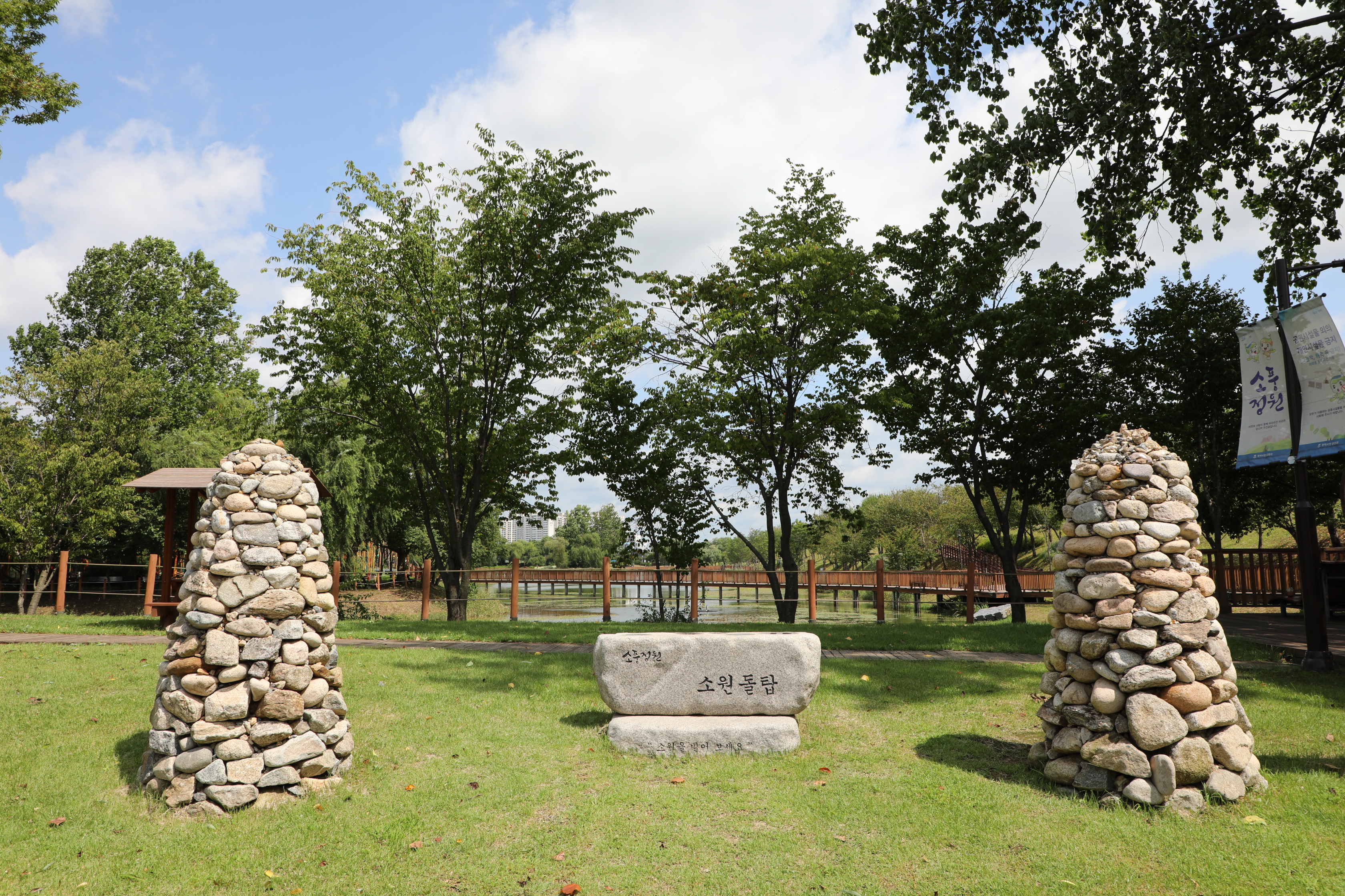 수변데크와 산책로를 따라 곳곳에 설치된 솟대, 바람개비를 보는 재미와, 놀이터, 다양한 휴게공간에서