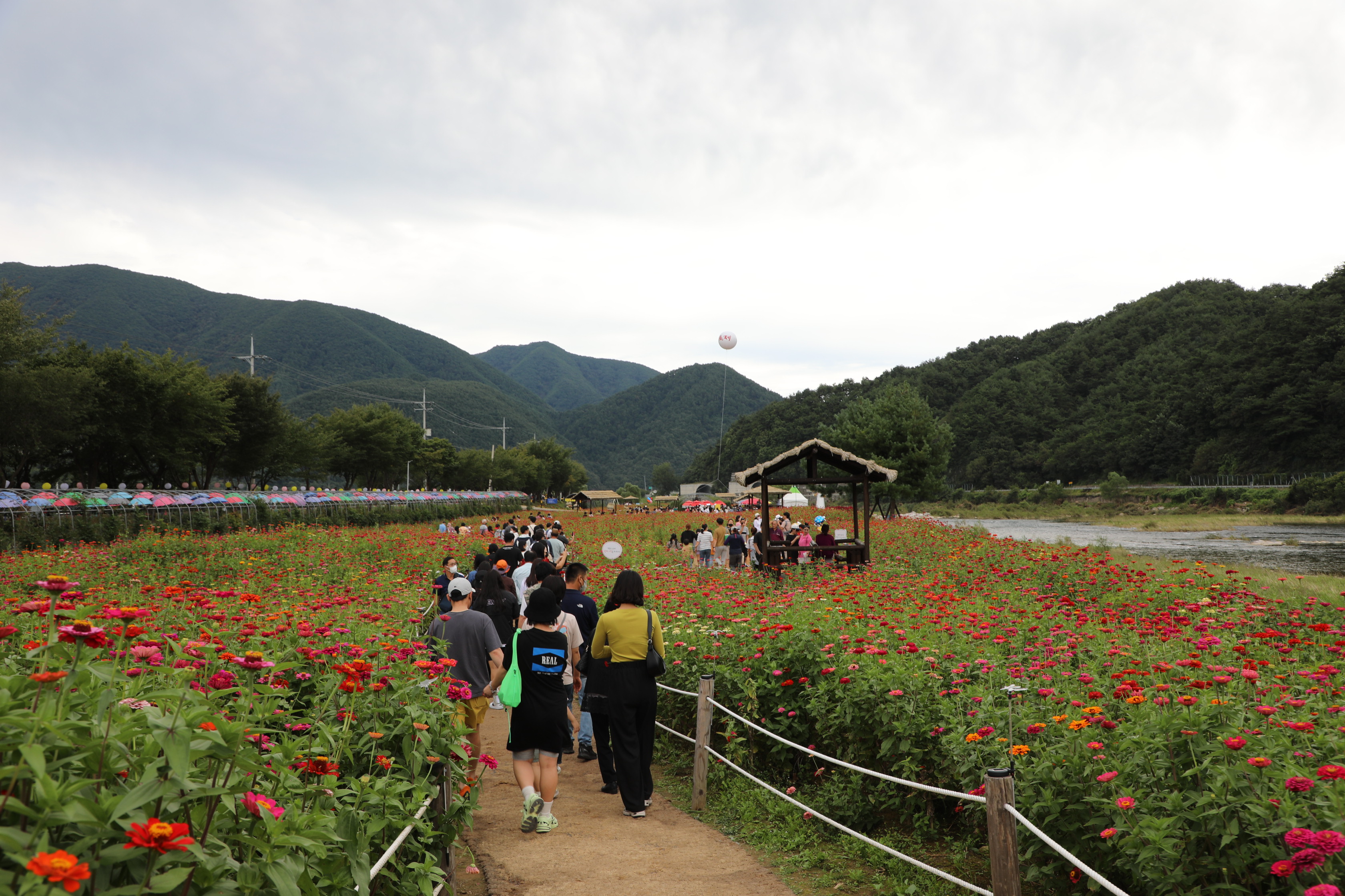 이어서 형님이 생각한 대로 평창읍의 평창강 고수부지에서 진행하는 백일홍 축제를 보기 위해 발길을 돌린다.