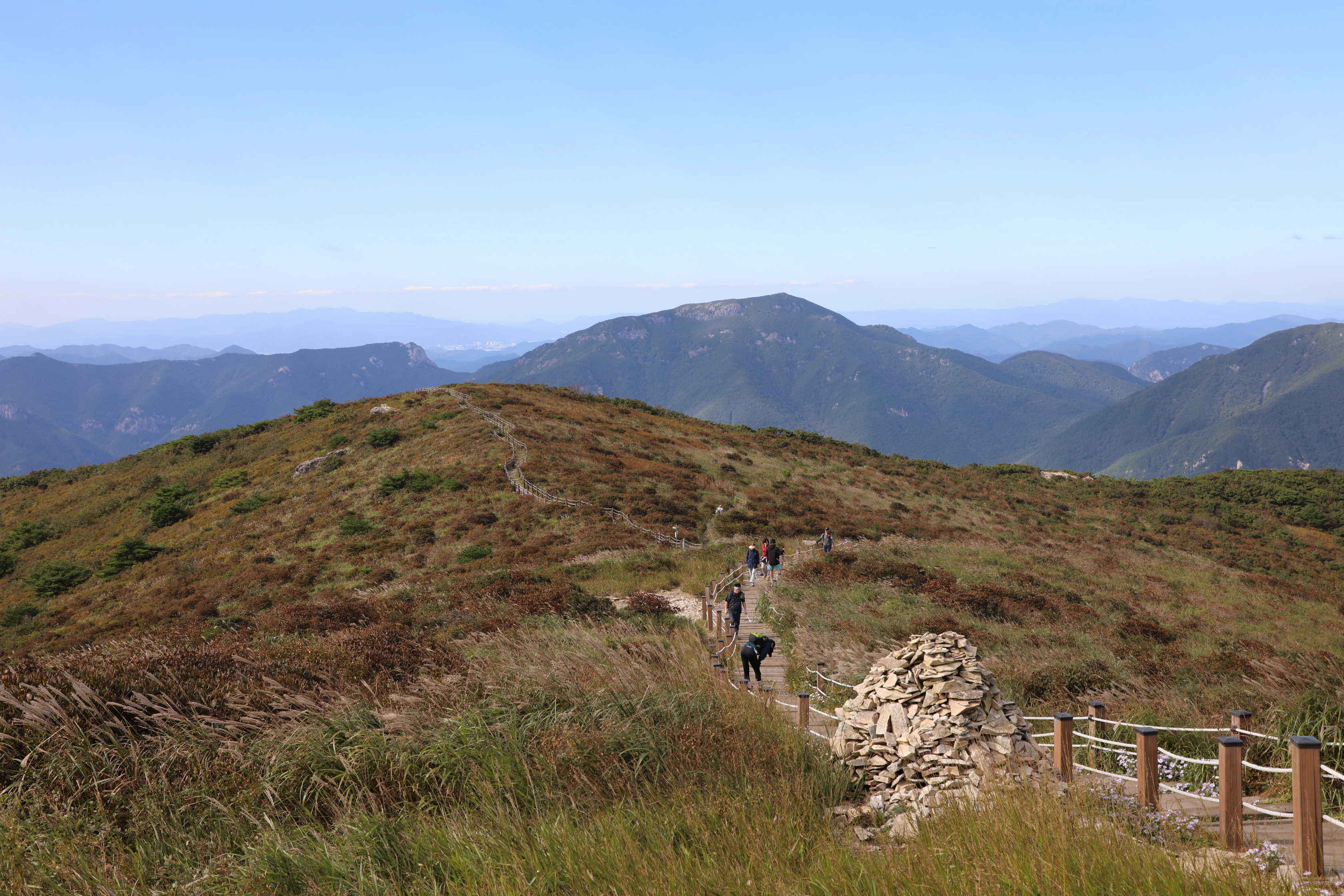천황산 정상까지 오는 길은 평원을 지나듯 유순하게 보인다.
