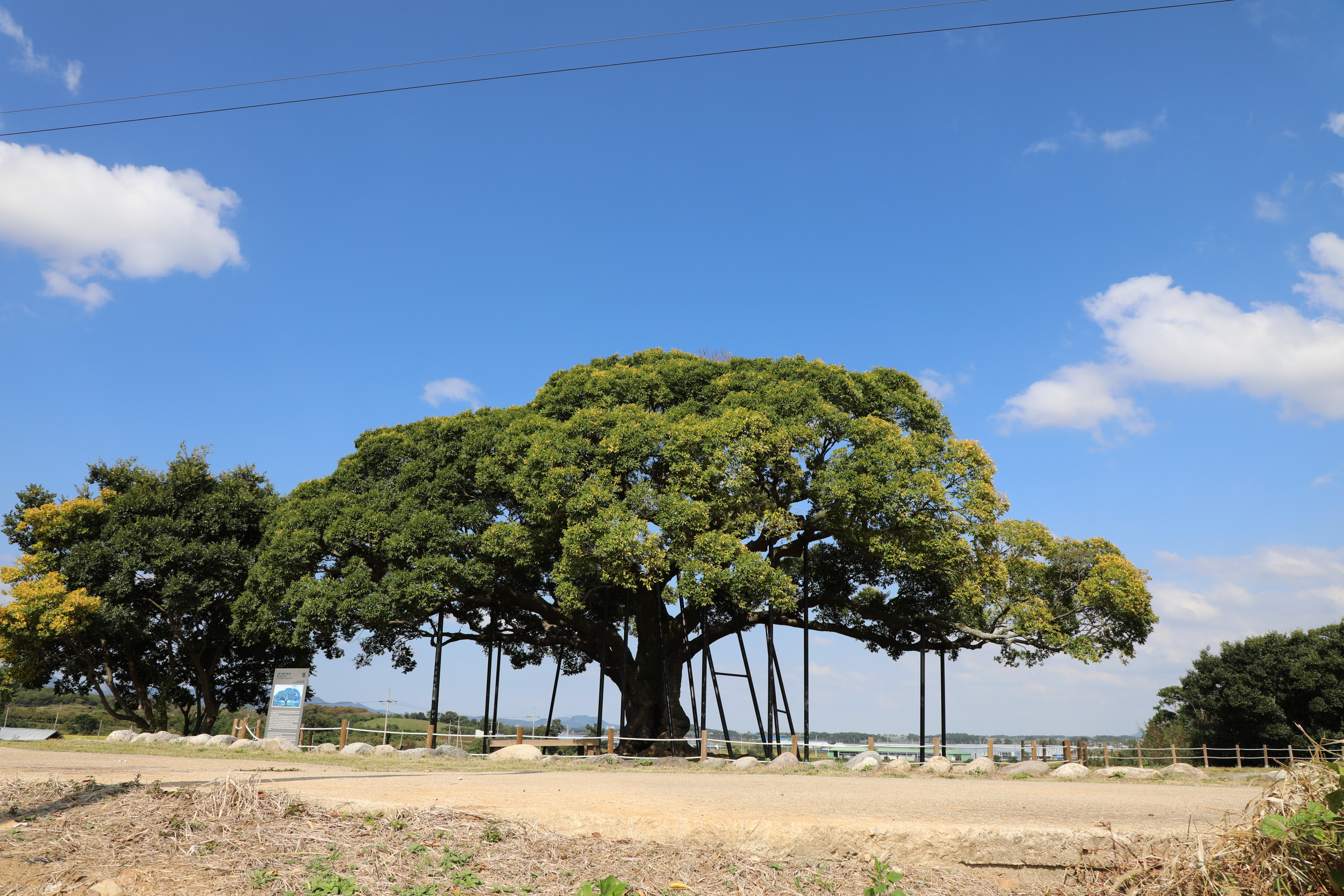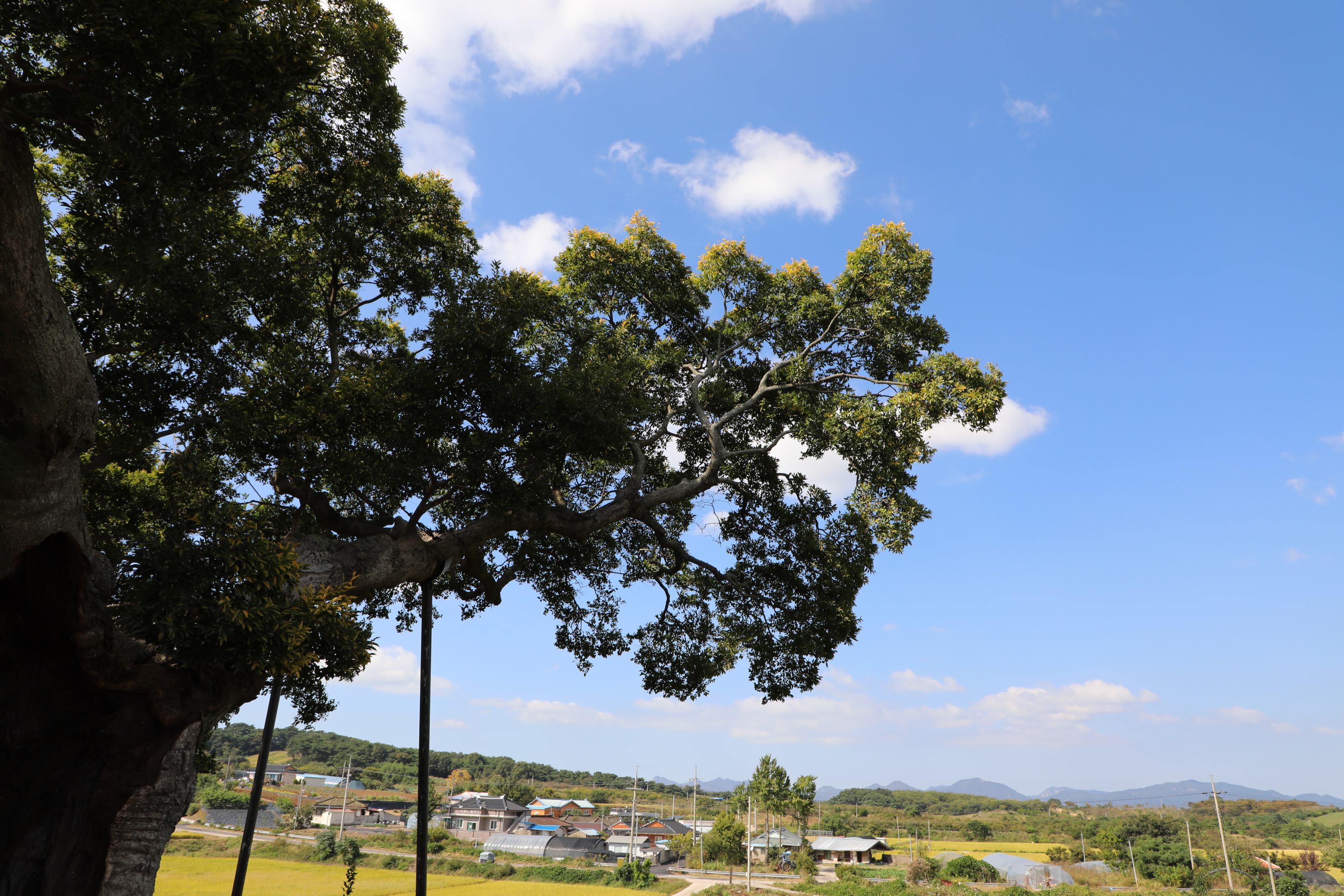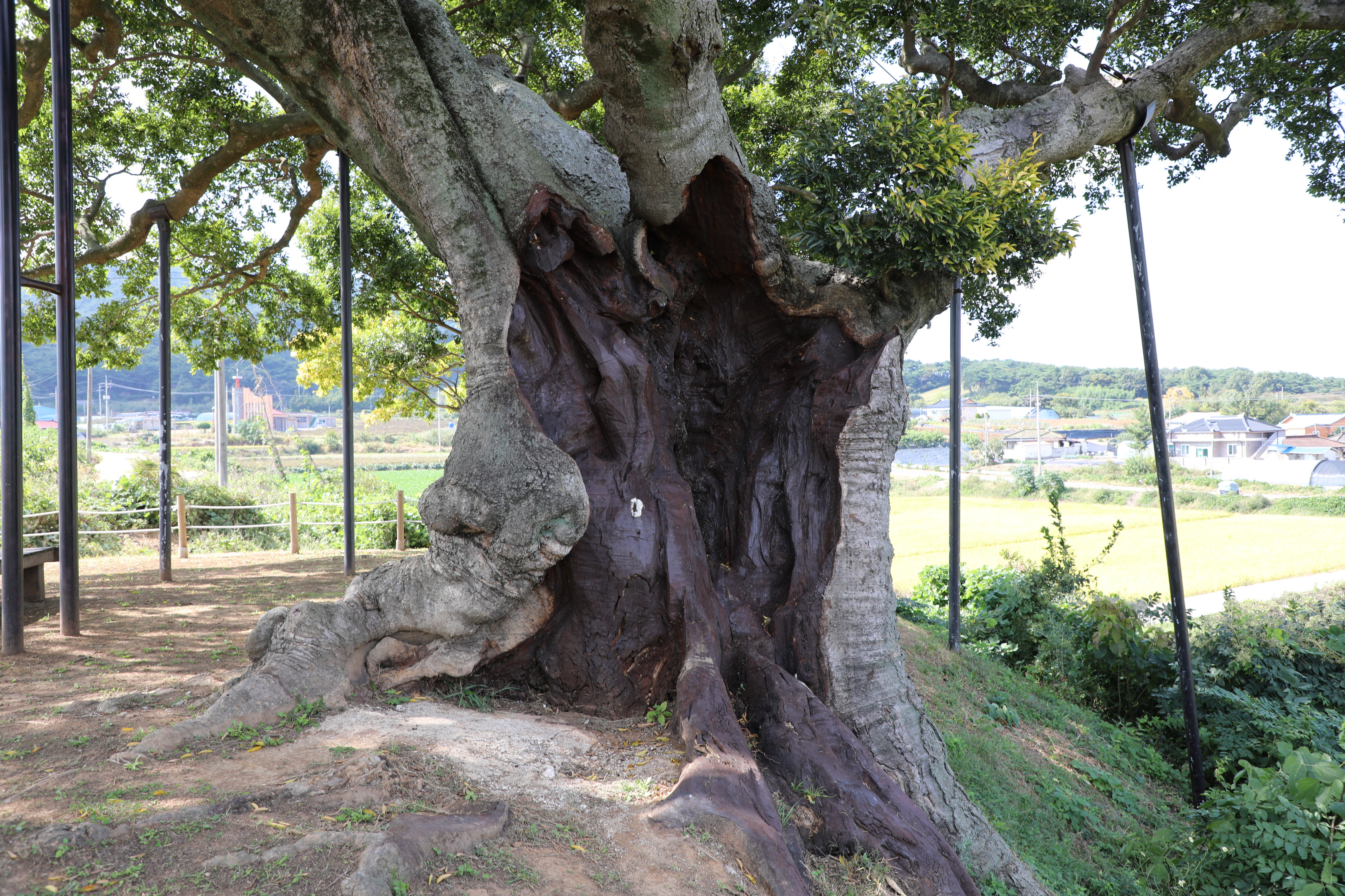 왼쪽에도 작은 팽나무가 있지만 천연기념물로 지정된 노거수에 비할 바가 아니다.