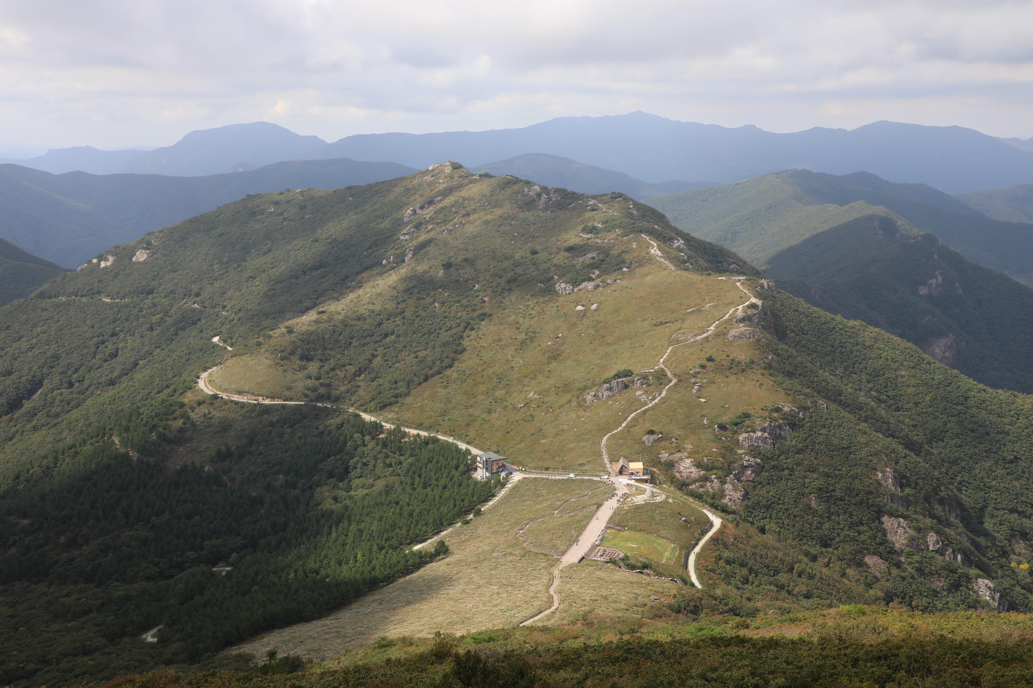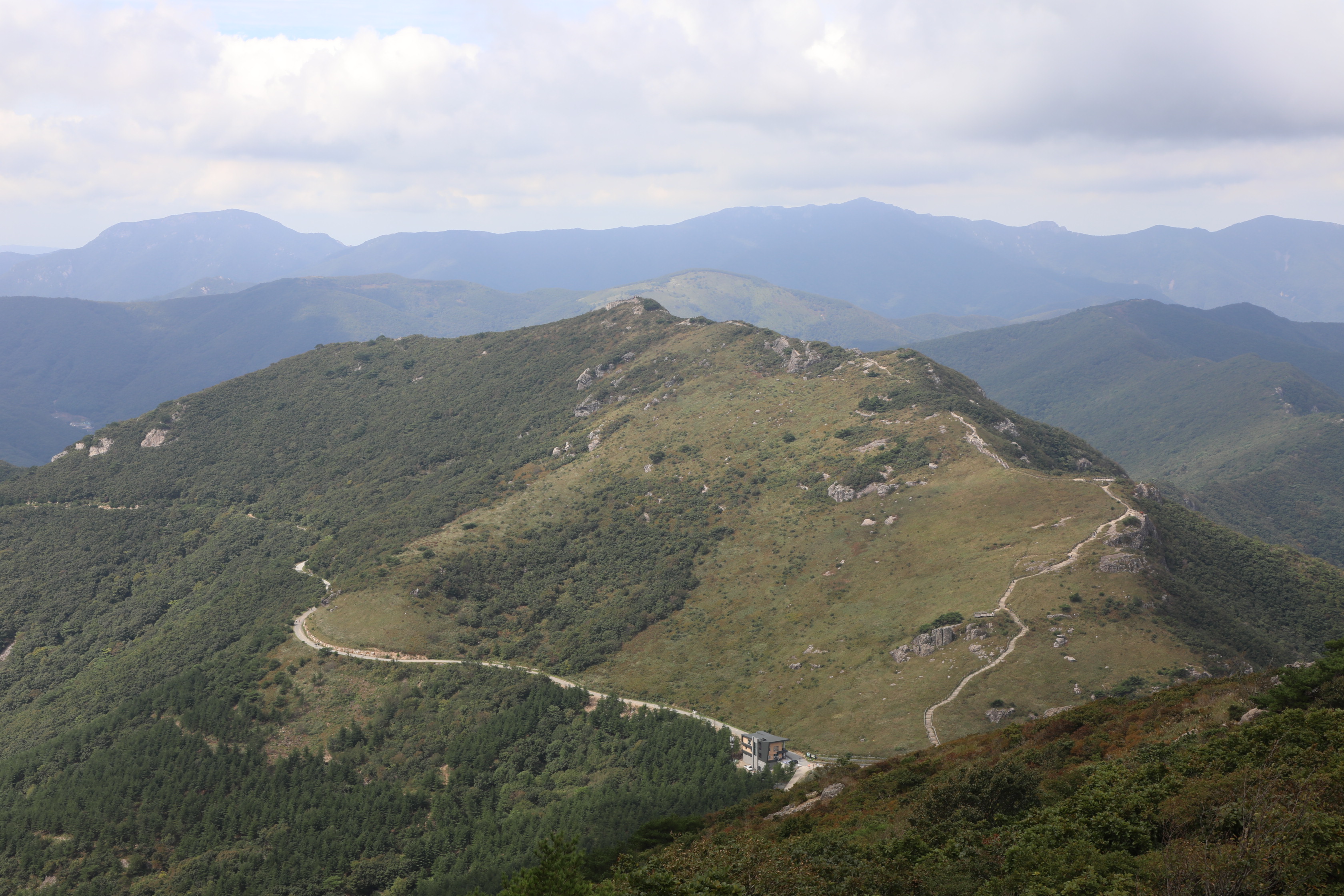 산길은 만리장성처럼 선명하게 디를 이루고 마지막 정상은 바위를 올라가야 한다.