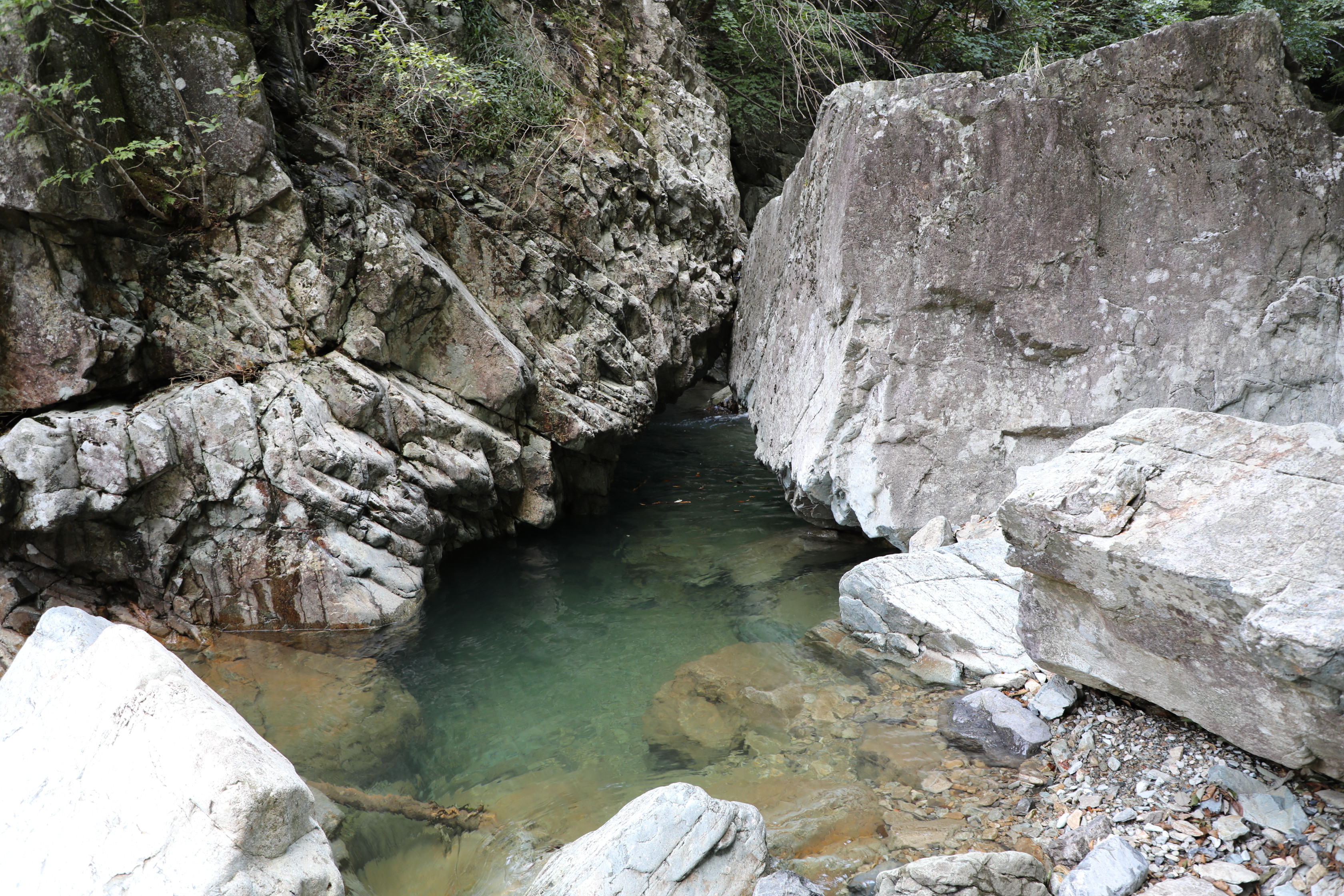 물은 약간 뜬 바위 사이로 빠져나온다.
