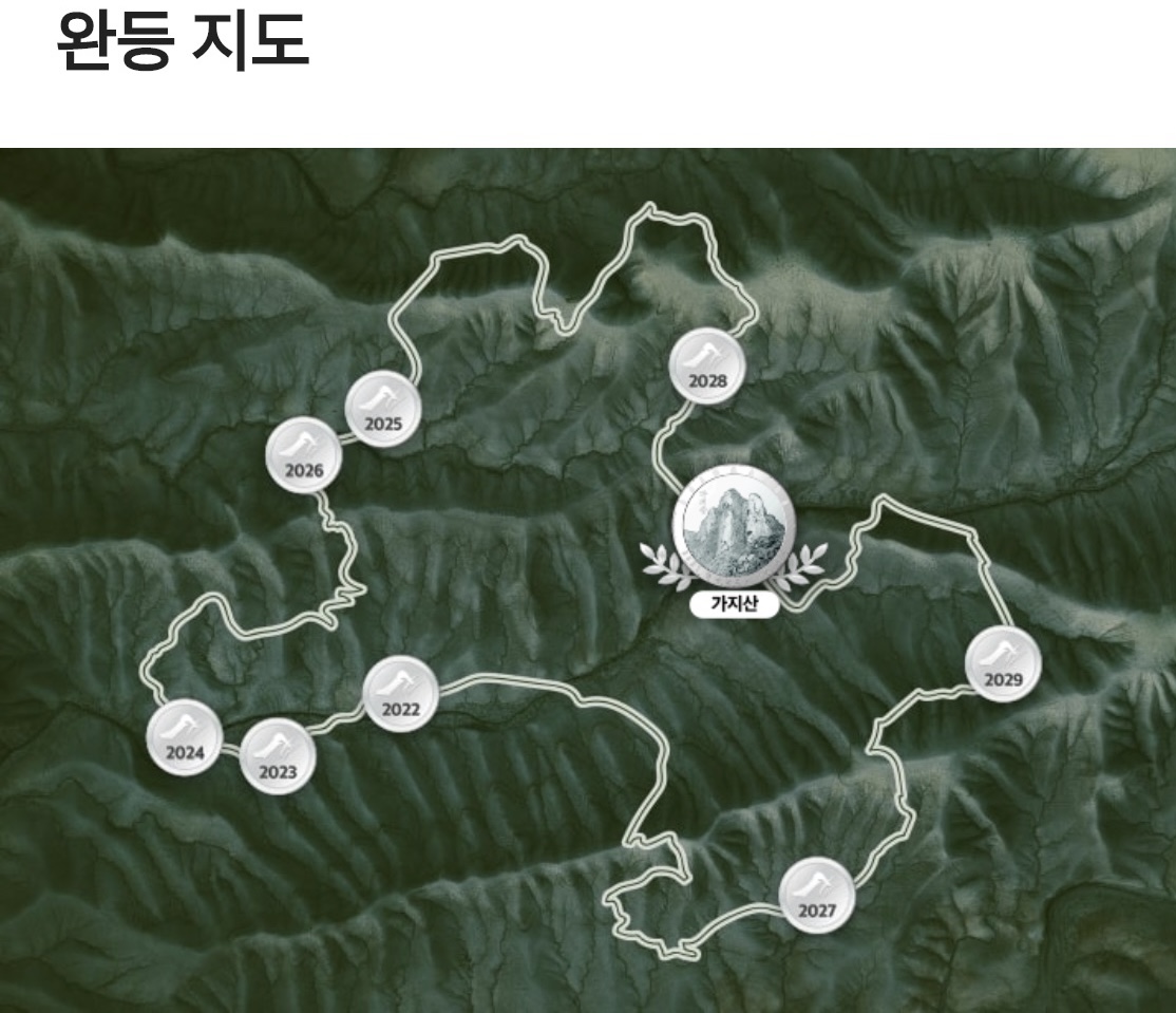 2021년 완등 메달은 가지산을 모델로 만들었지만, 올해는 다음 순서인 간월산이 모델이다.