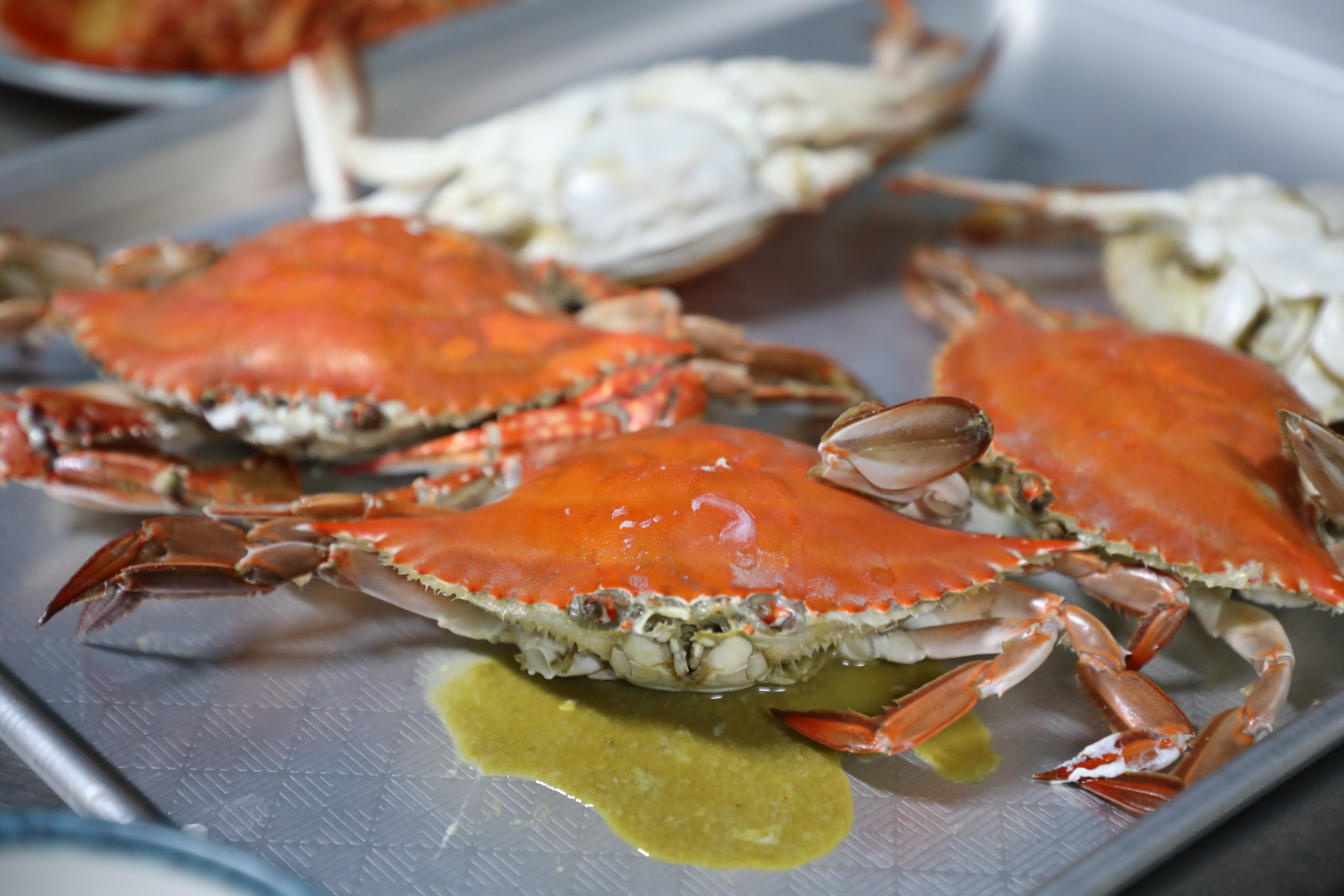 발갛게 익은 꽃게의 배를 갈라내고 나온 싱싱한 게살을 뜯을 때의 통통 튀는 느낌은 살아있다.