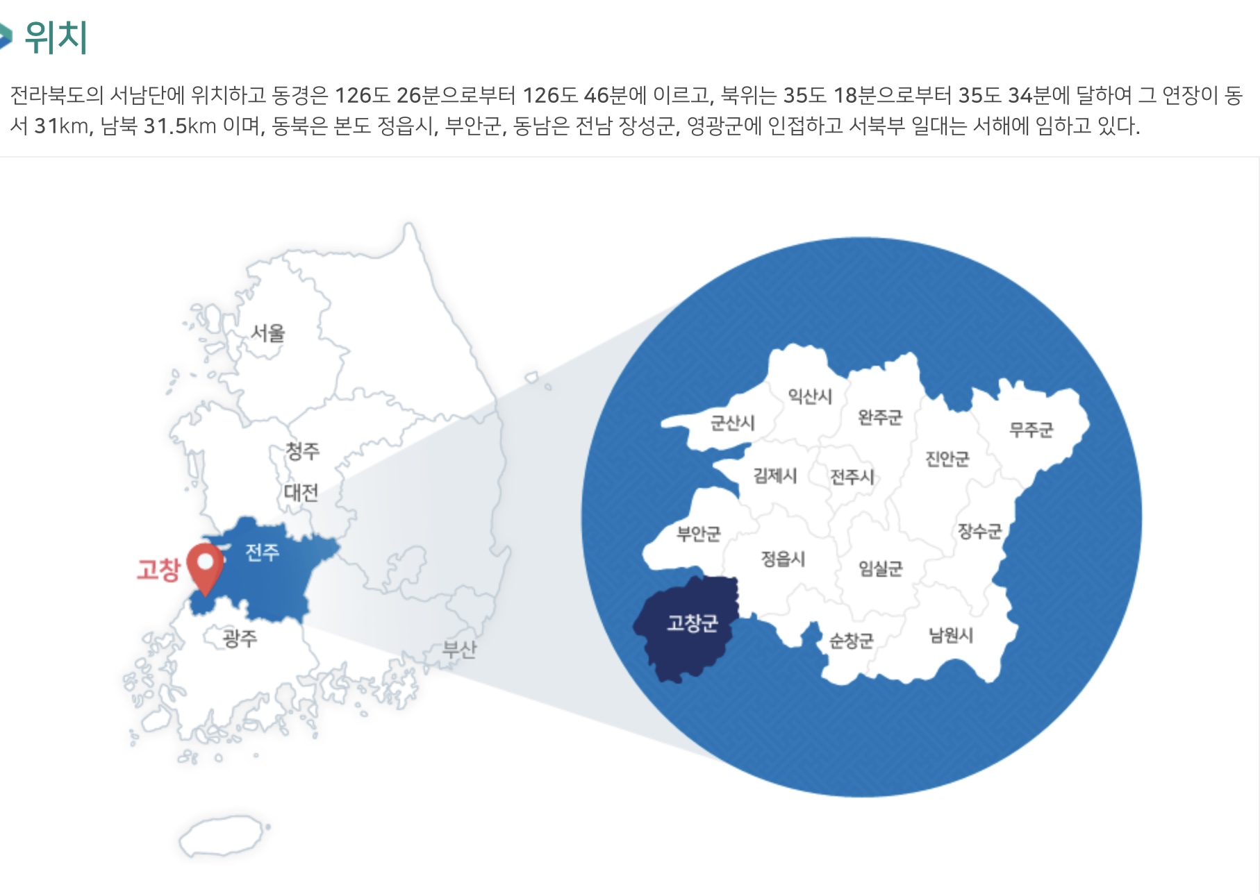 고창군은 위 지도로 알 수 있듯 삼면이 바다와 닿은 곳이다.
