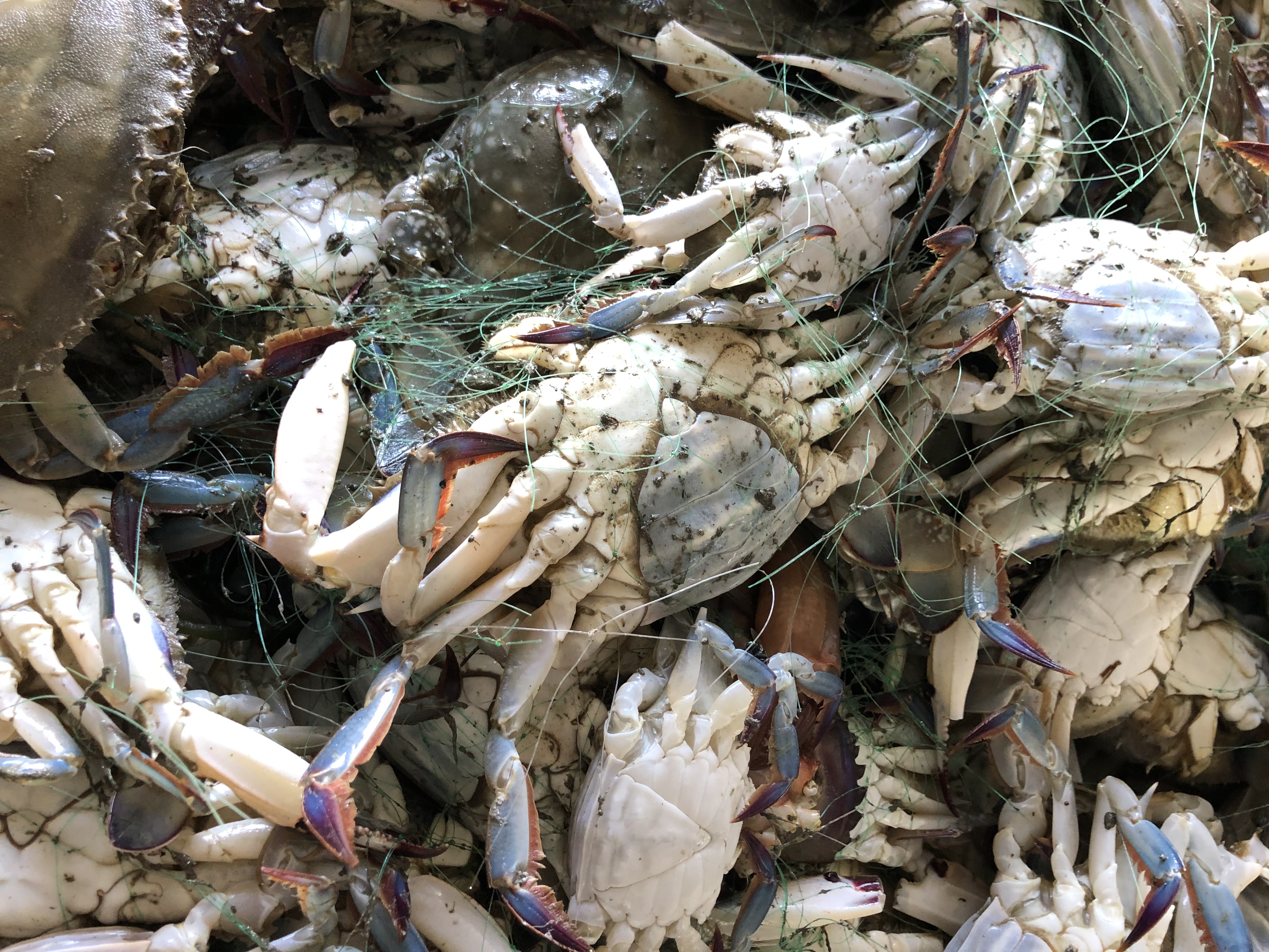 그물망에서 꽃게를 뗄 때는 큰 집게 발가락의 집게 하나를 잘라내 다음 작업할 때 물지 못하게 한다.