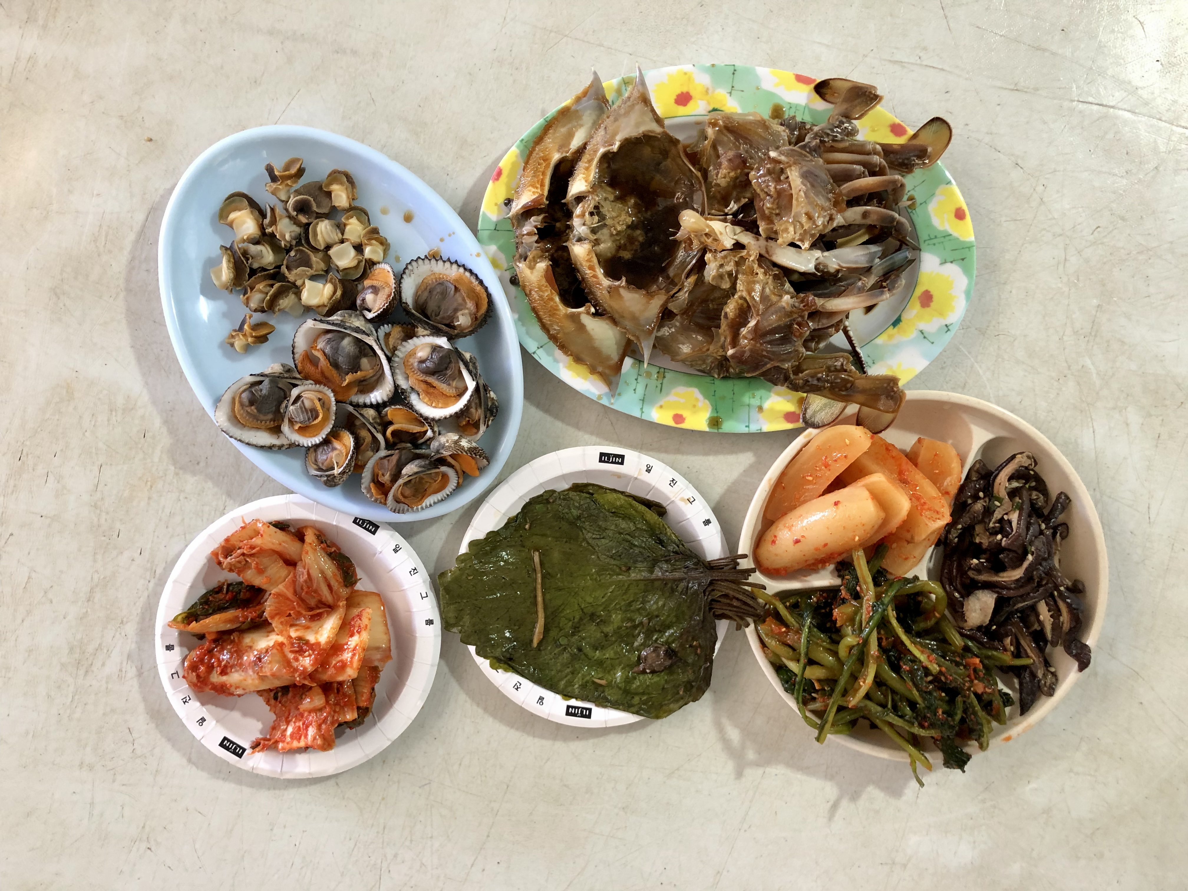 점심시간이 되자 주인아주머니는 꽃게를 삶는 건 물론이고 기왕에 만든 간장게장에 꼬막, 동죽조개 등