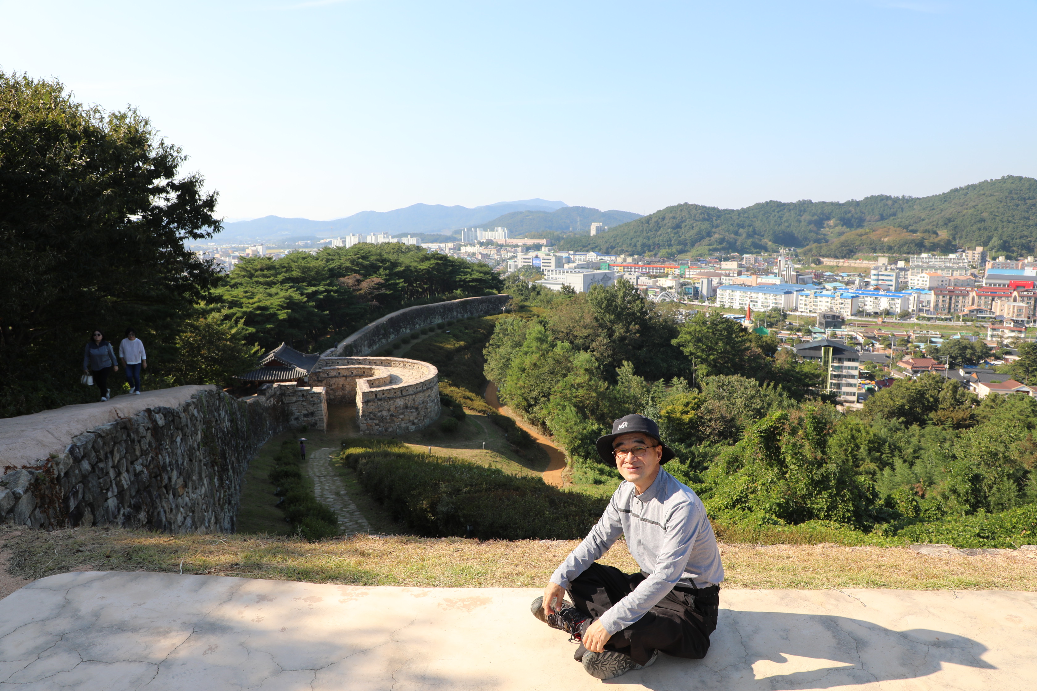 등양문 옹성으로 들어오는 적을 감시하거나 화살이나 총으로 섬멸할 목적으로 만든 치성에 앉아 봤다.