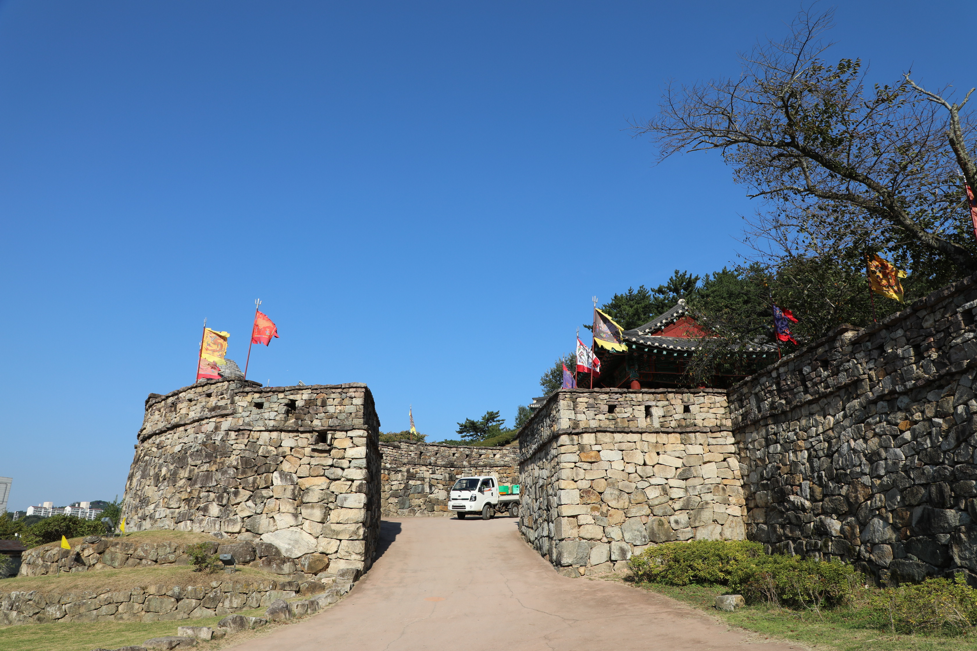 이 트럭에 견주어 대충 높이가 가늠되니 정문은 대략 4~5m 정도로 추정된다.