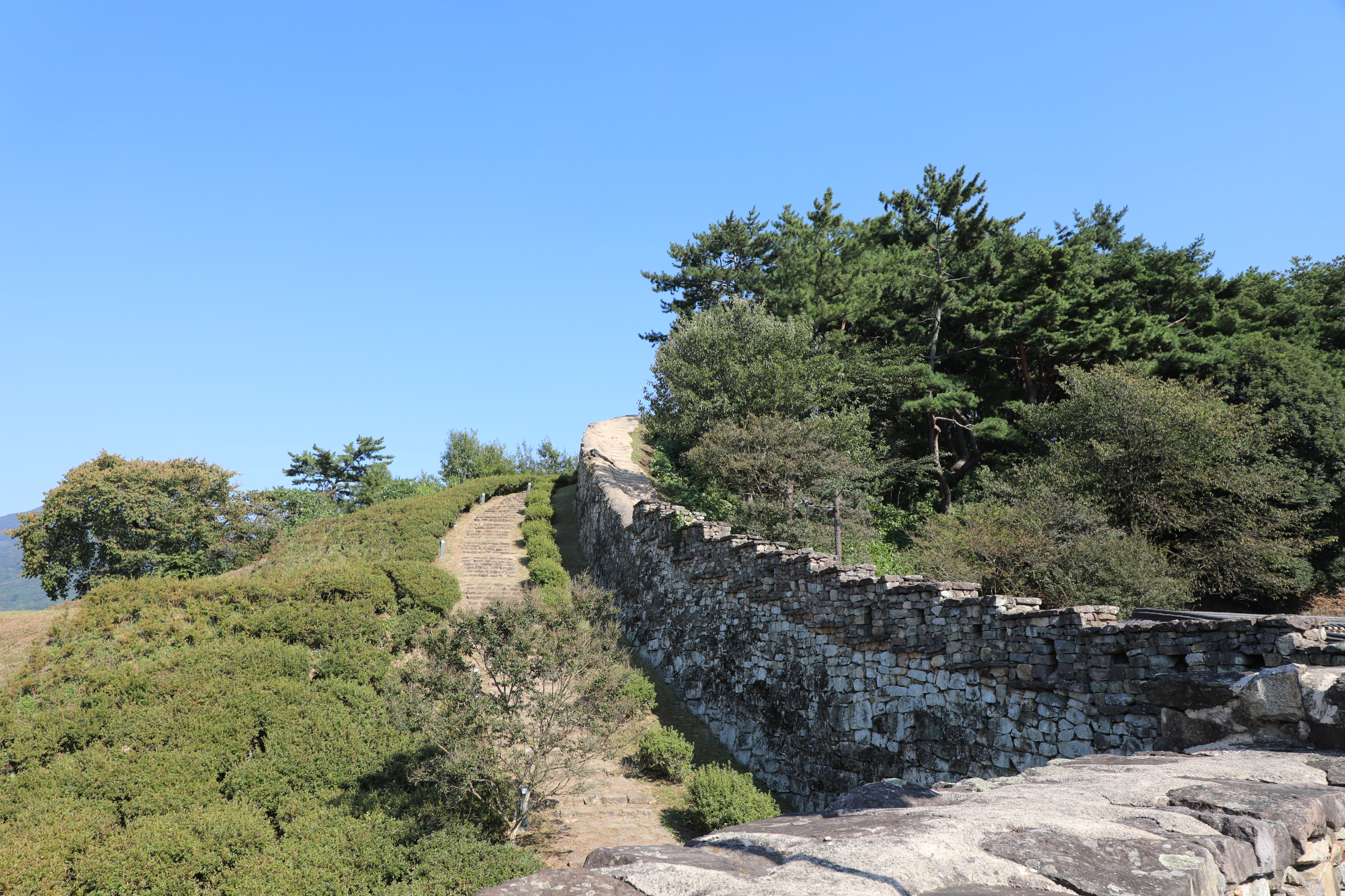 이 성벽은 비교적 넓게 만들었는데, 이동 편의를 위해 시멘트 계단을 설치했다.